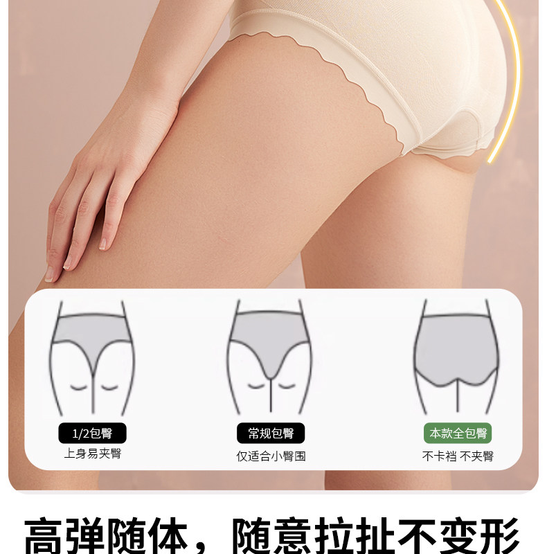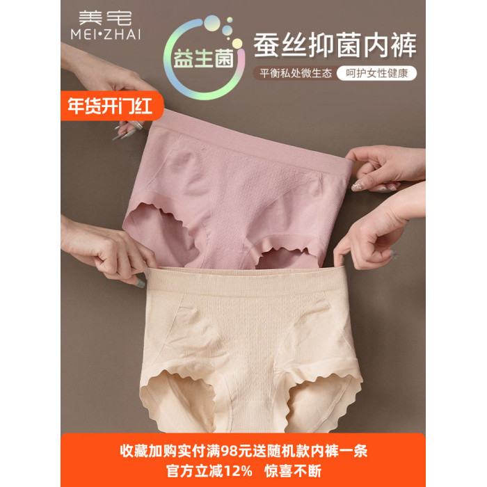 美宅無縫內褲女純棉襠抗菌中腰莫代爾大碼蠶絲襠秋季新款2024爆款