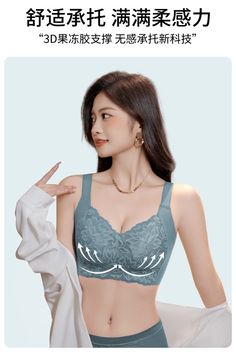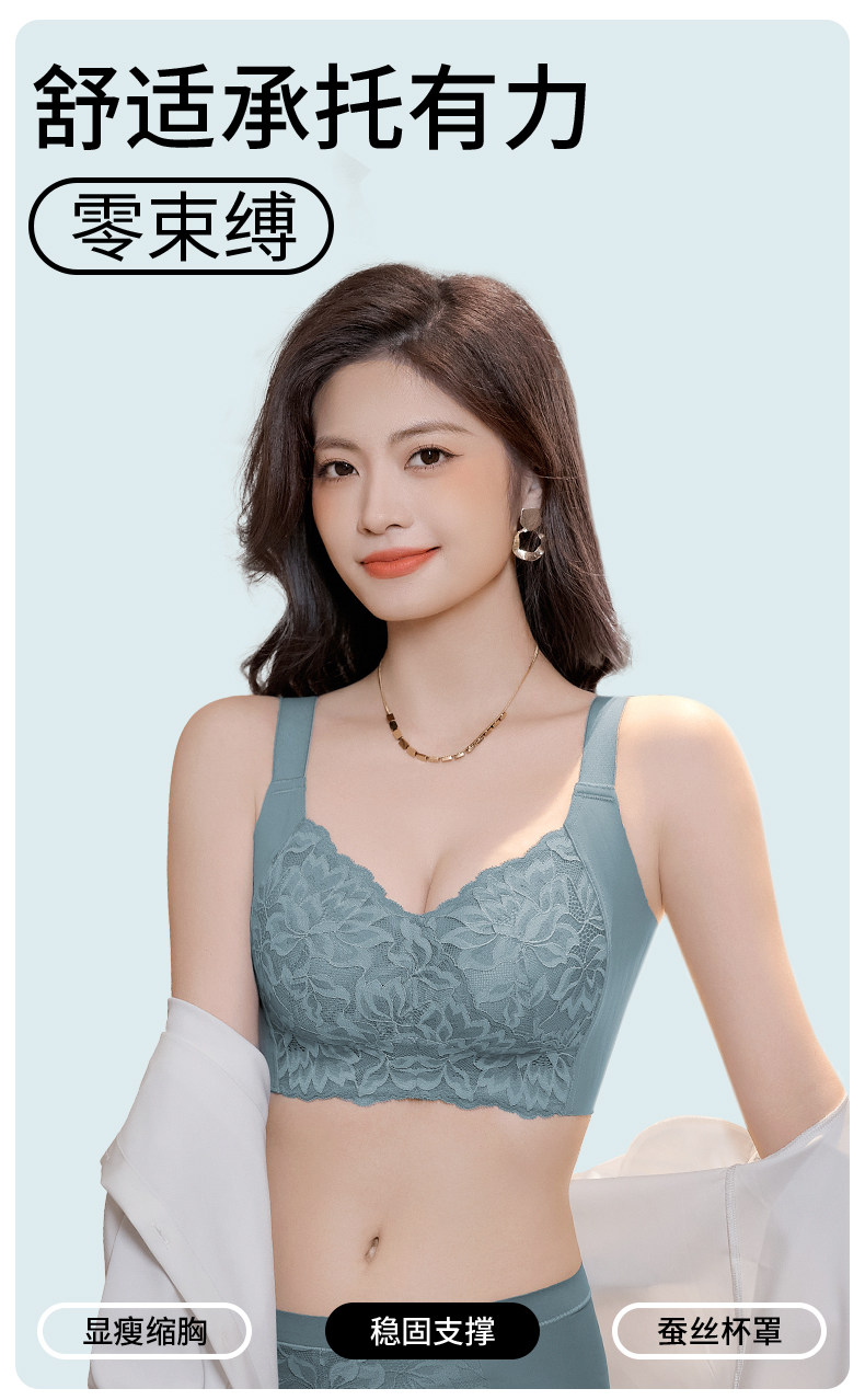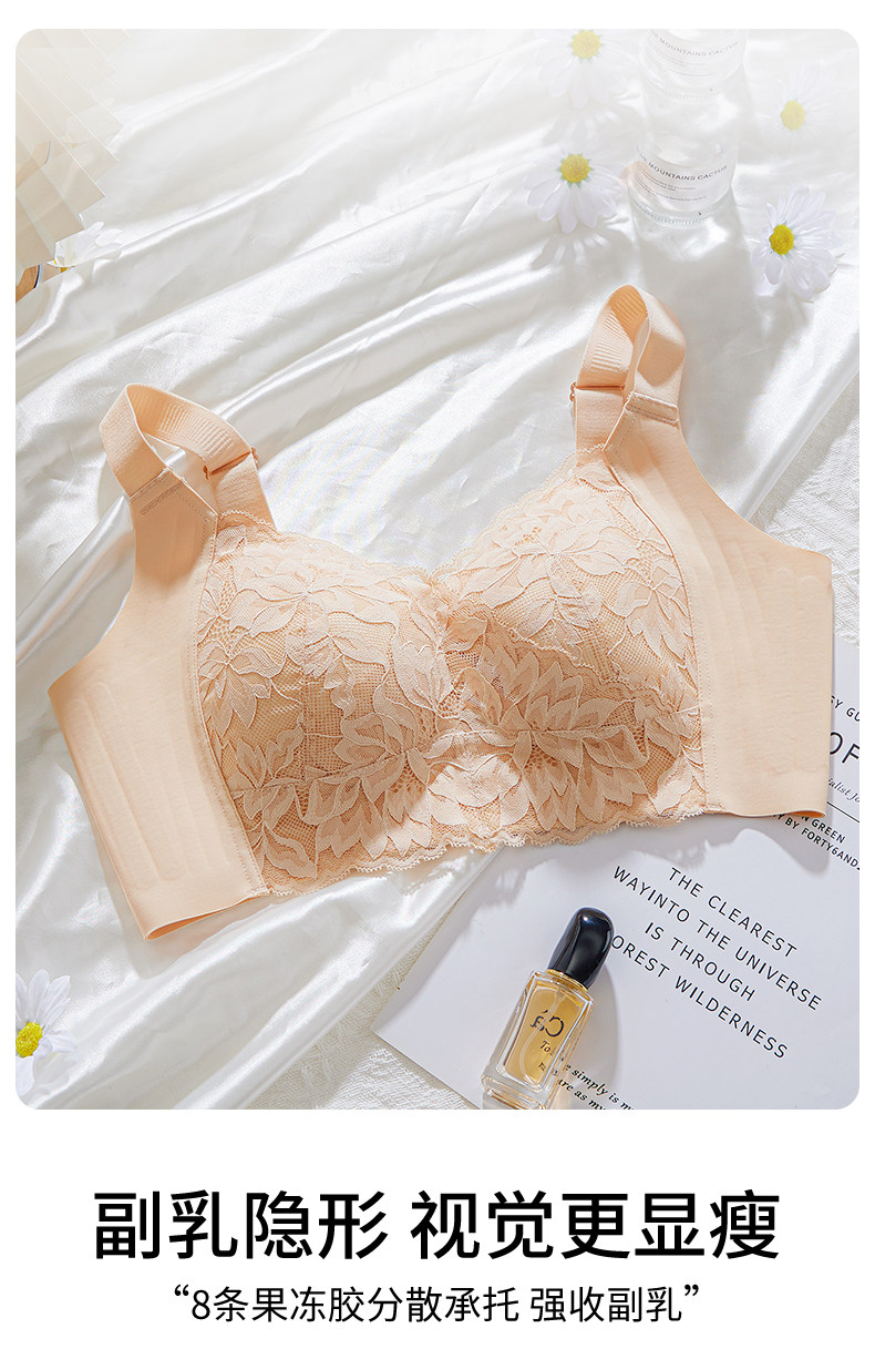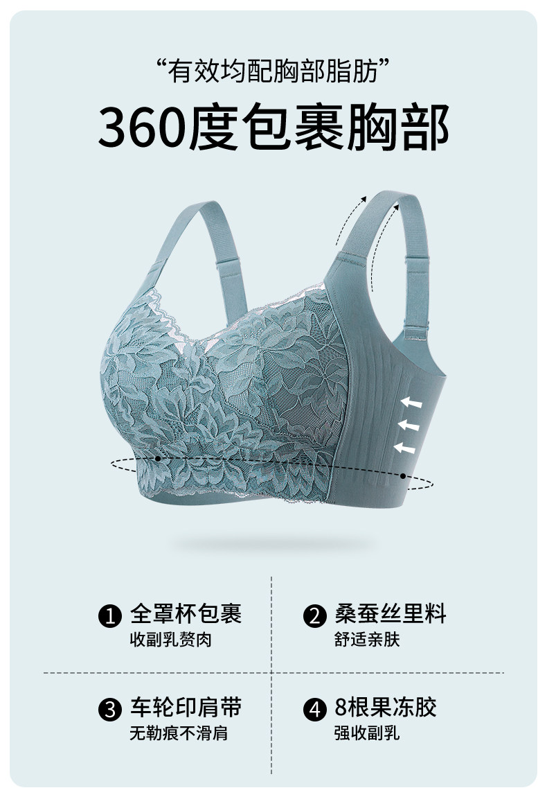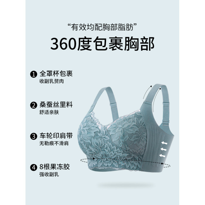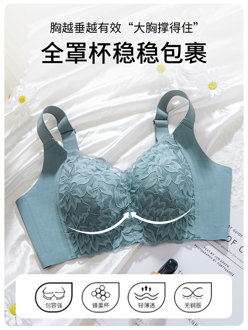 婷美內衣女大胸顯小聚攏全罩杯防下垂收副乳無鋼圈蕾絲承托文胸罩