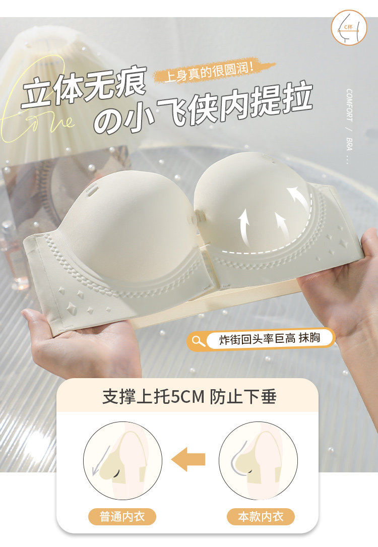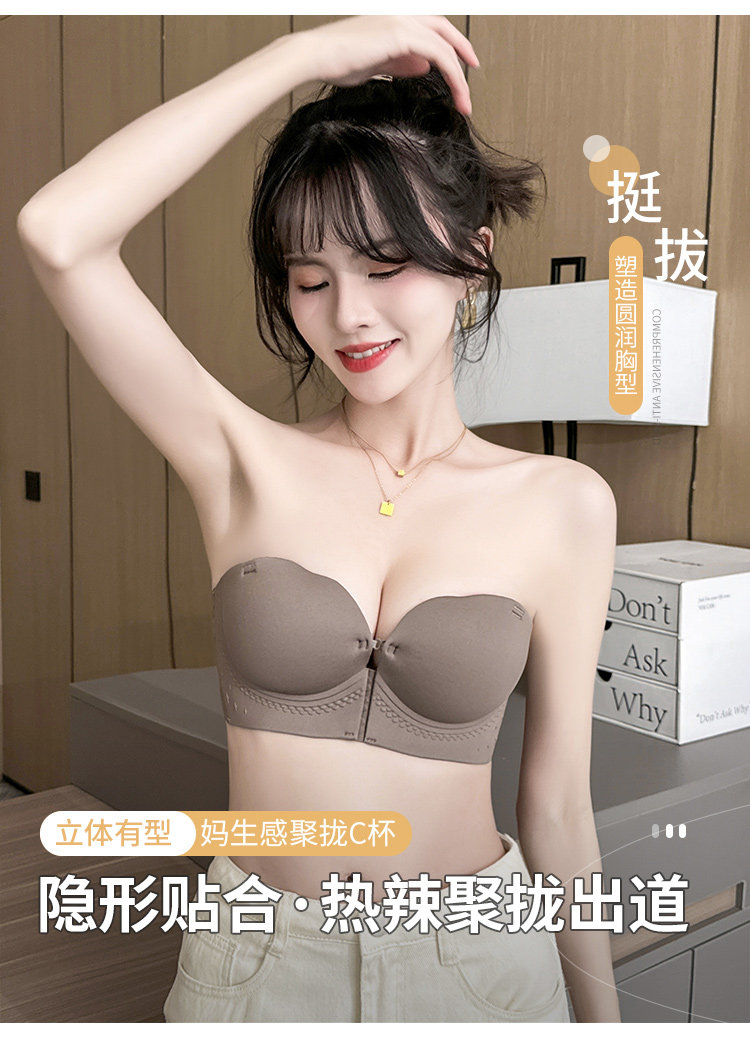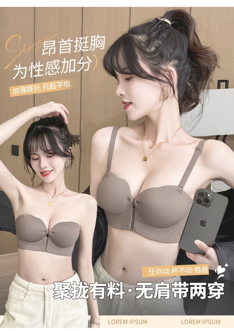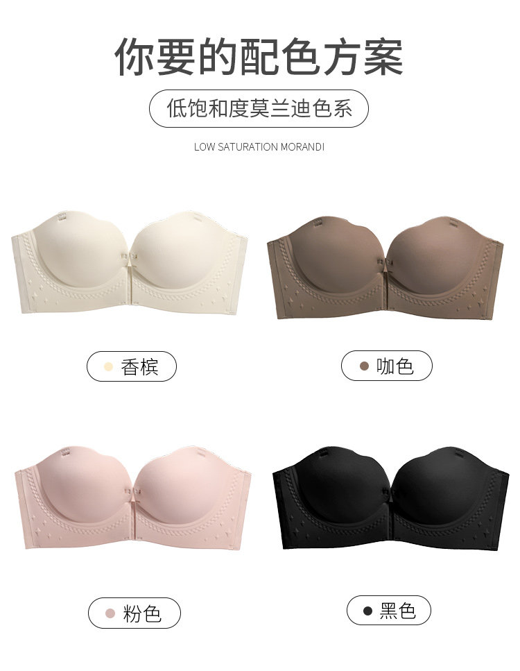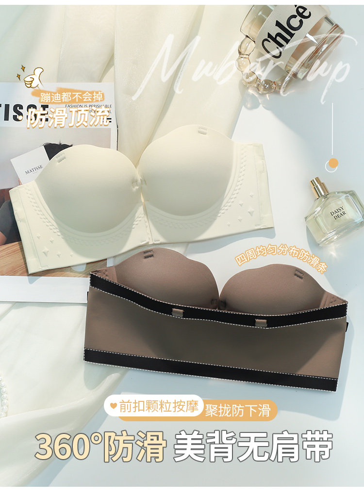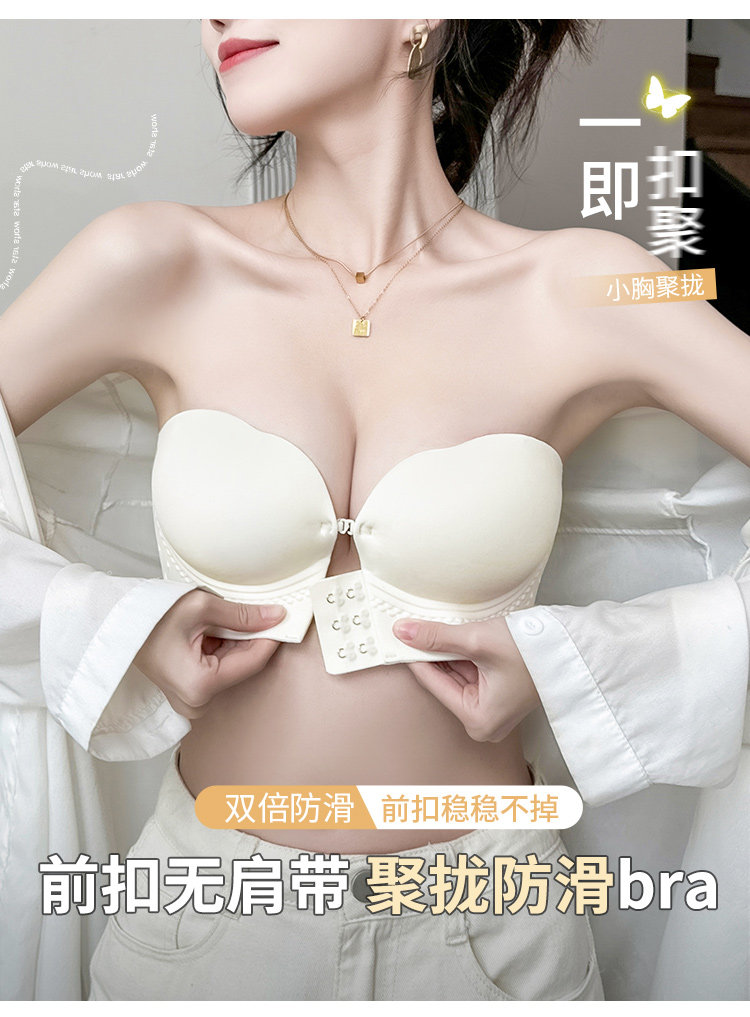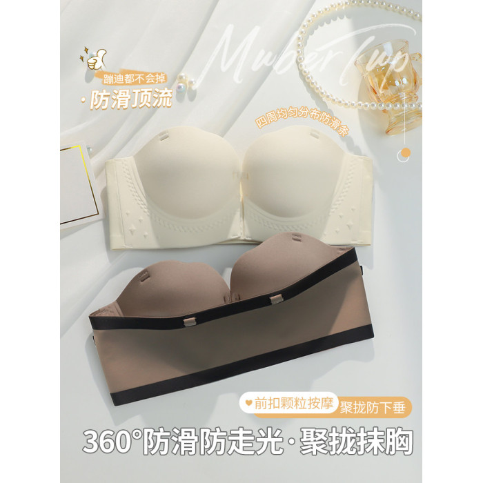 2024新款前釦無肩帶內衣女防滑聚攏小胸顯大抹胸胸罩裹胸美背文胸