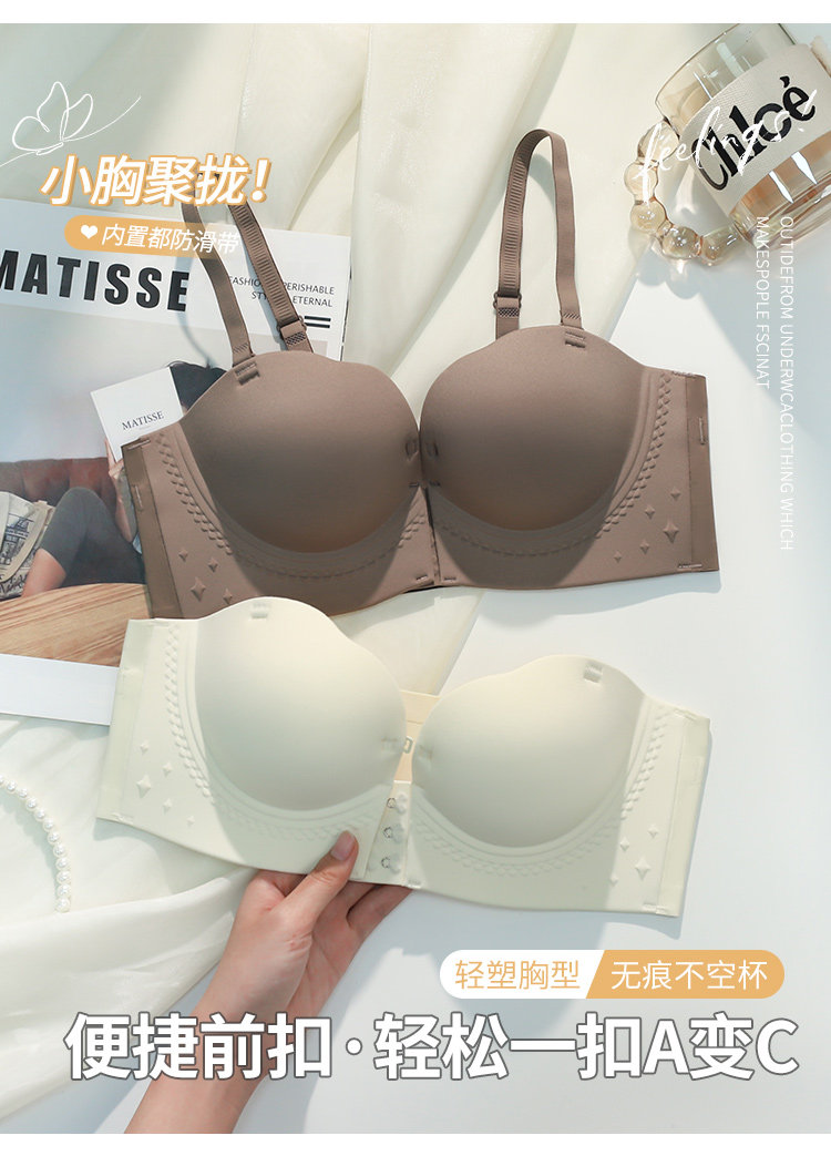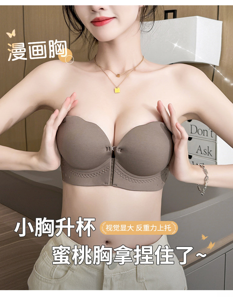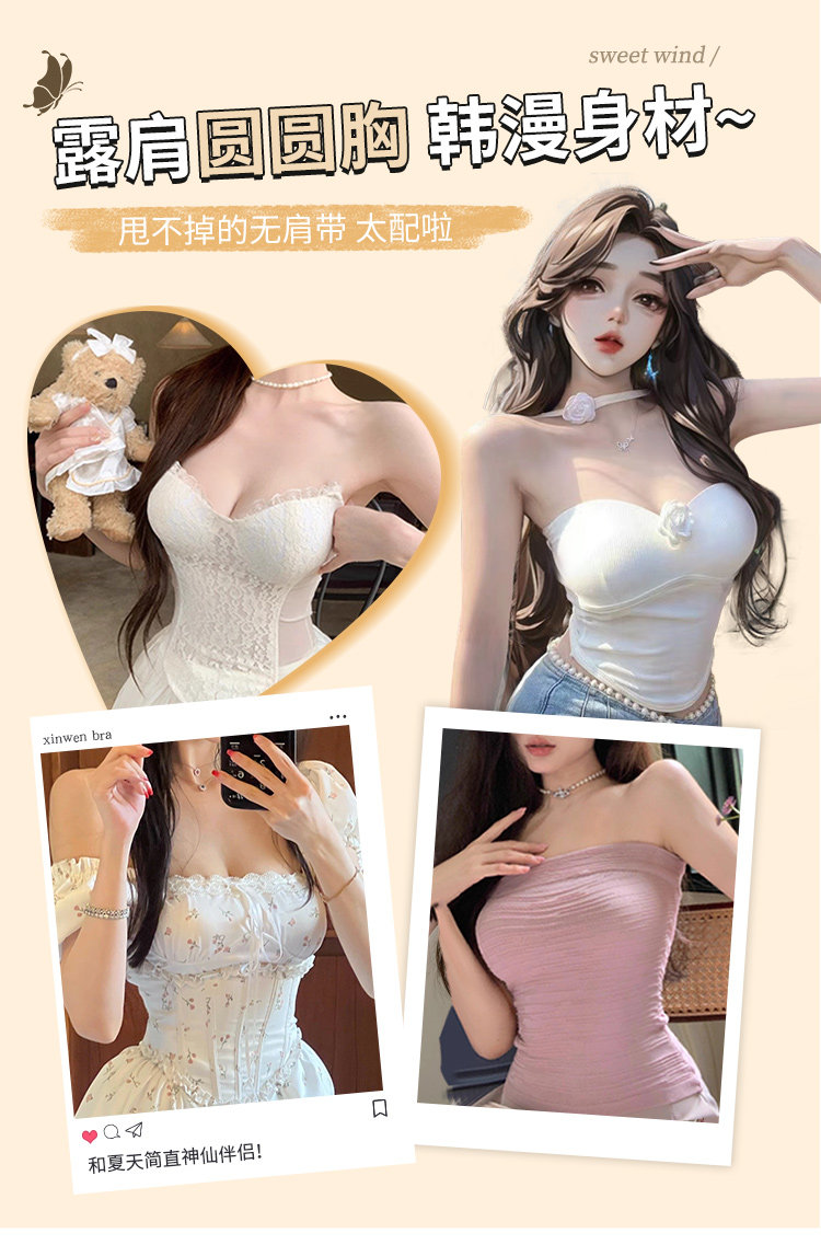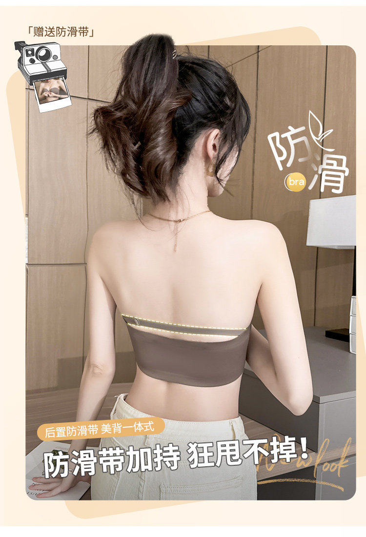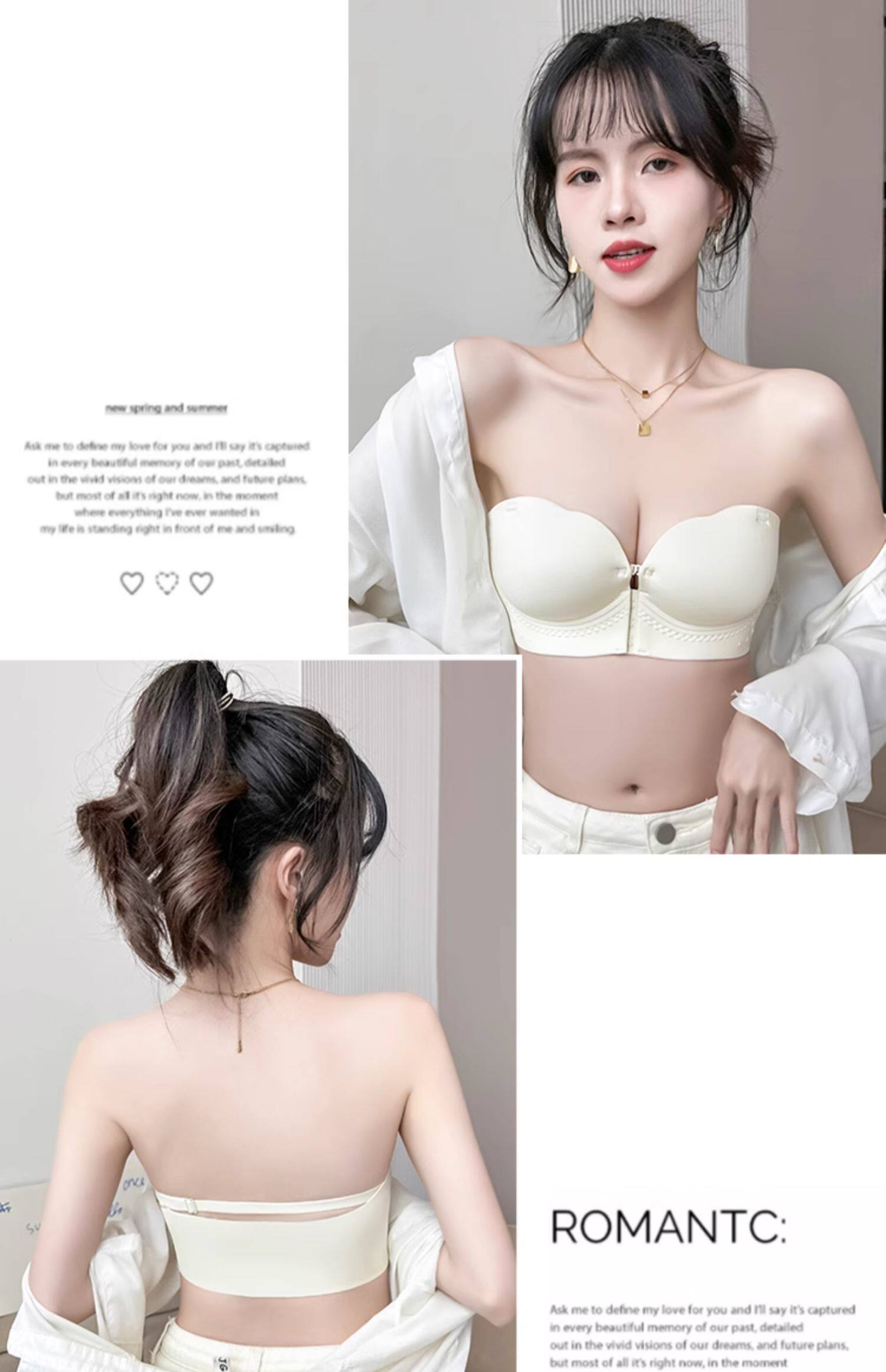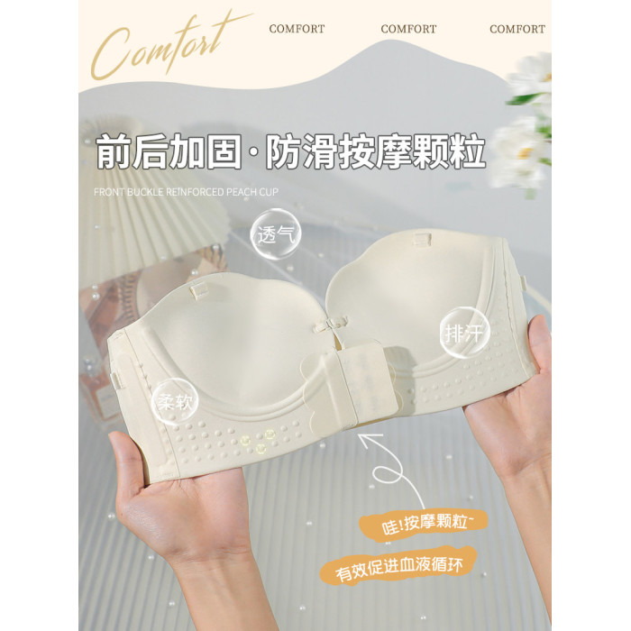 2024新款前釦無肩帶內衣女防滑聚攏小胸顯大抹胸胸罩裹胸美背文胸