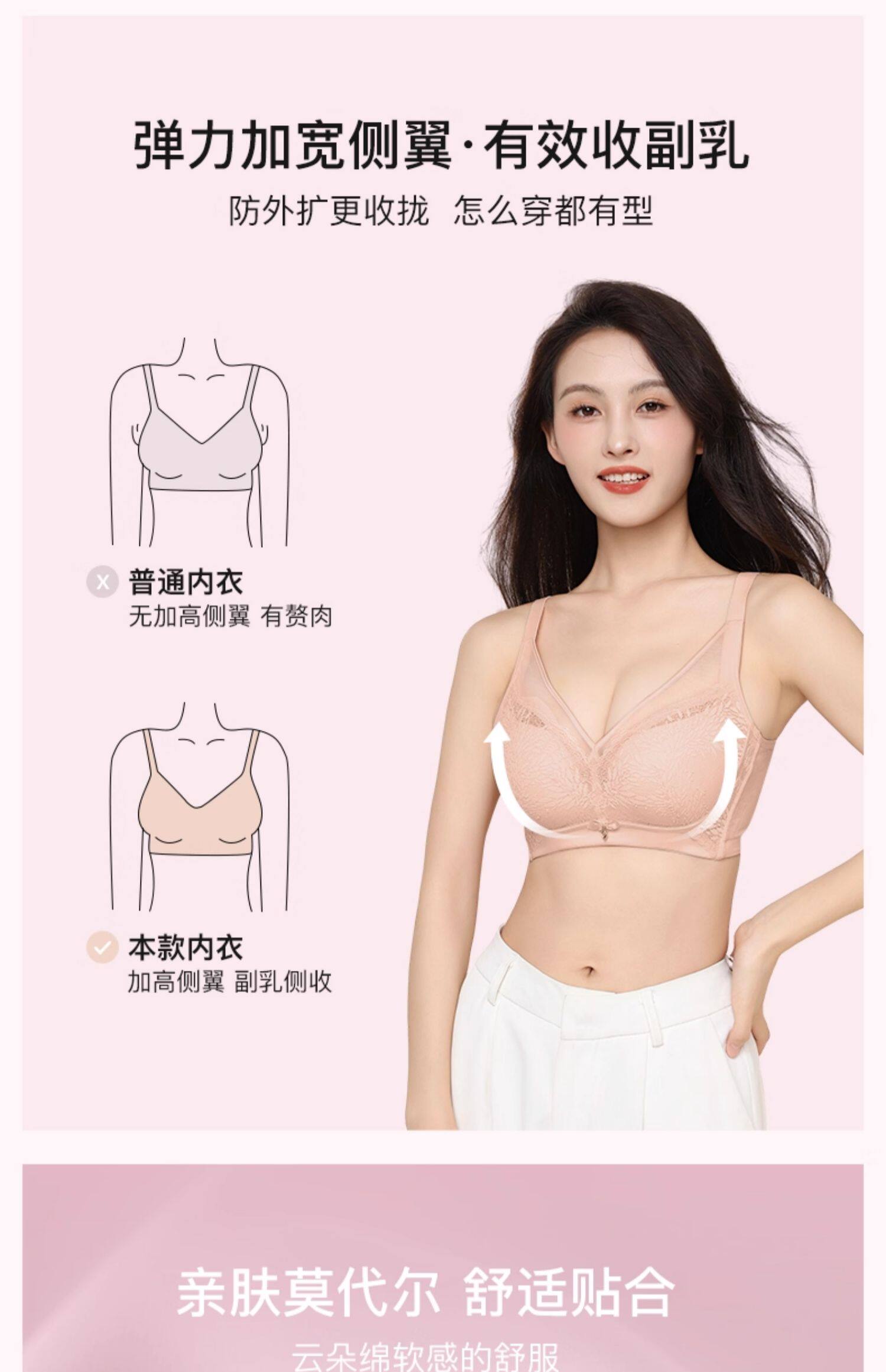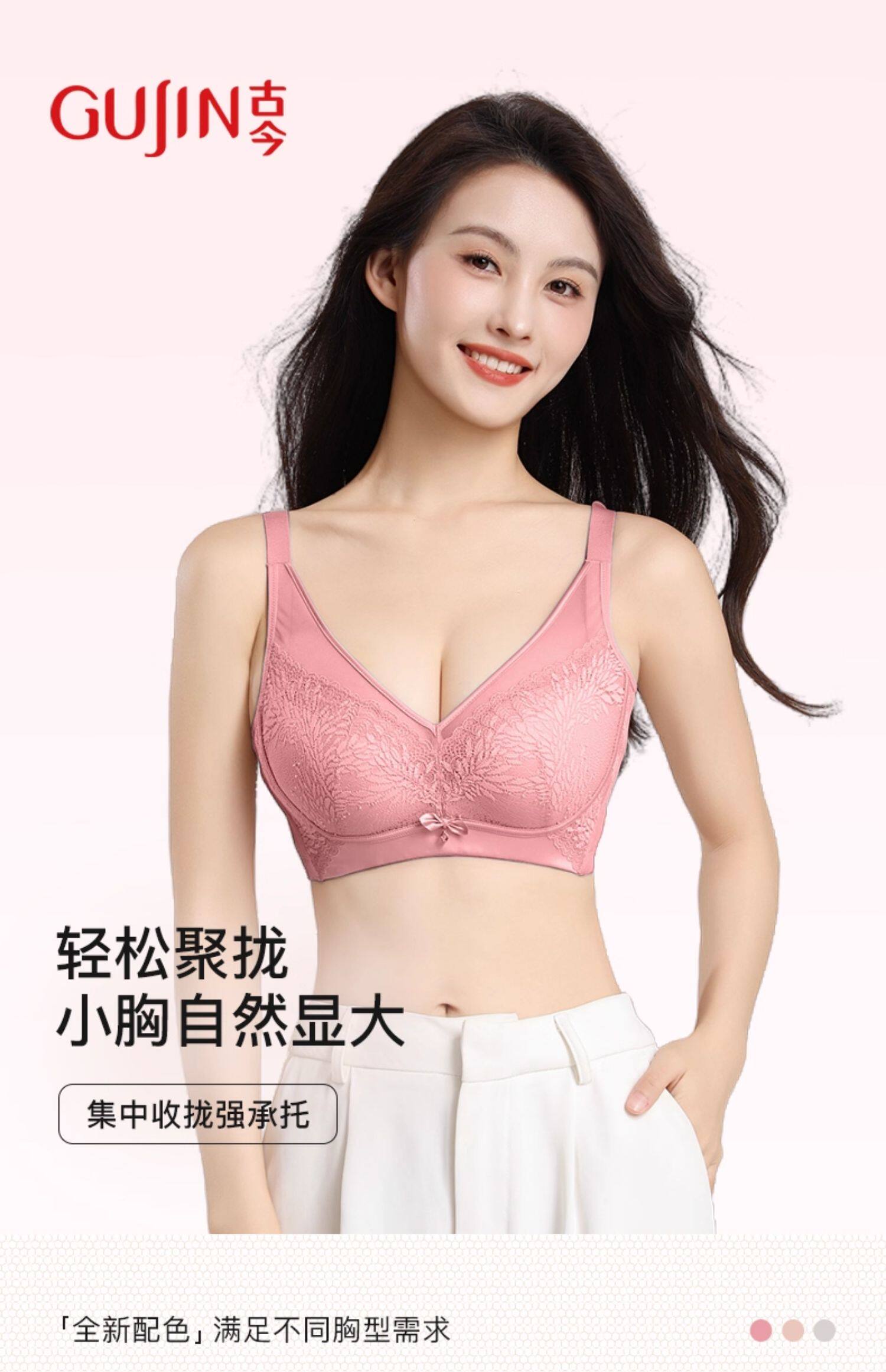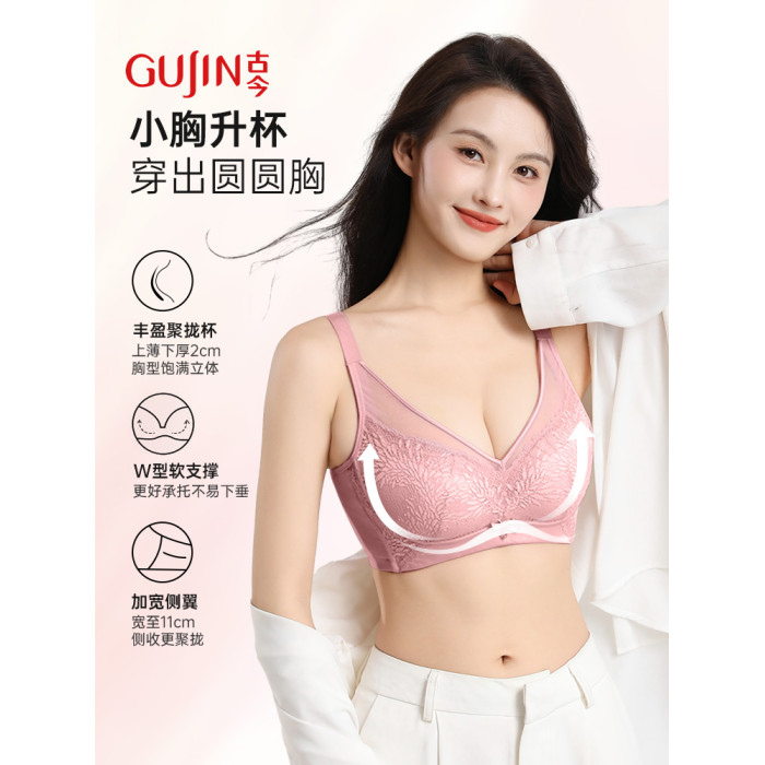 古今內衣女透氣小胸聚攏莫代爾無鋼圈上薄下厚26mm蕾絲文胸罩