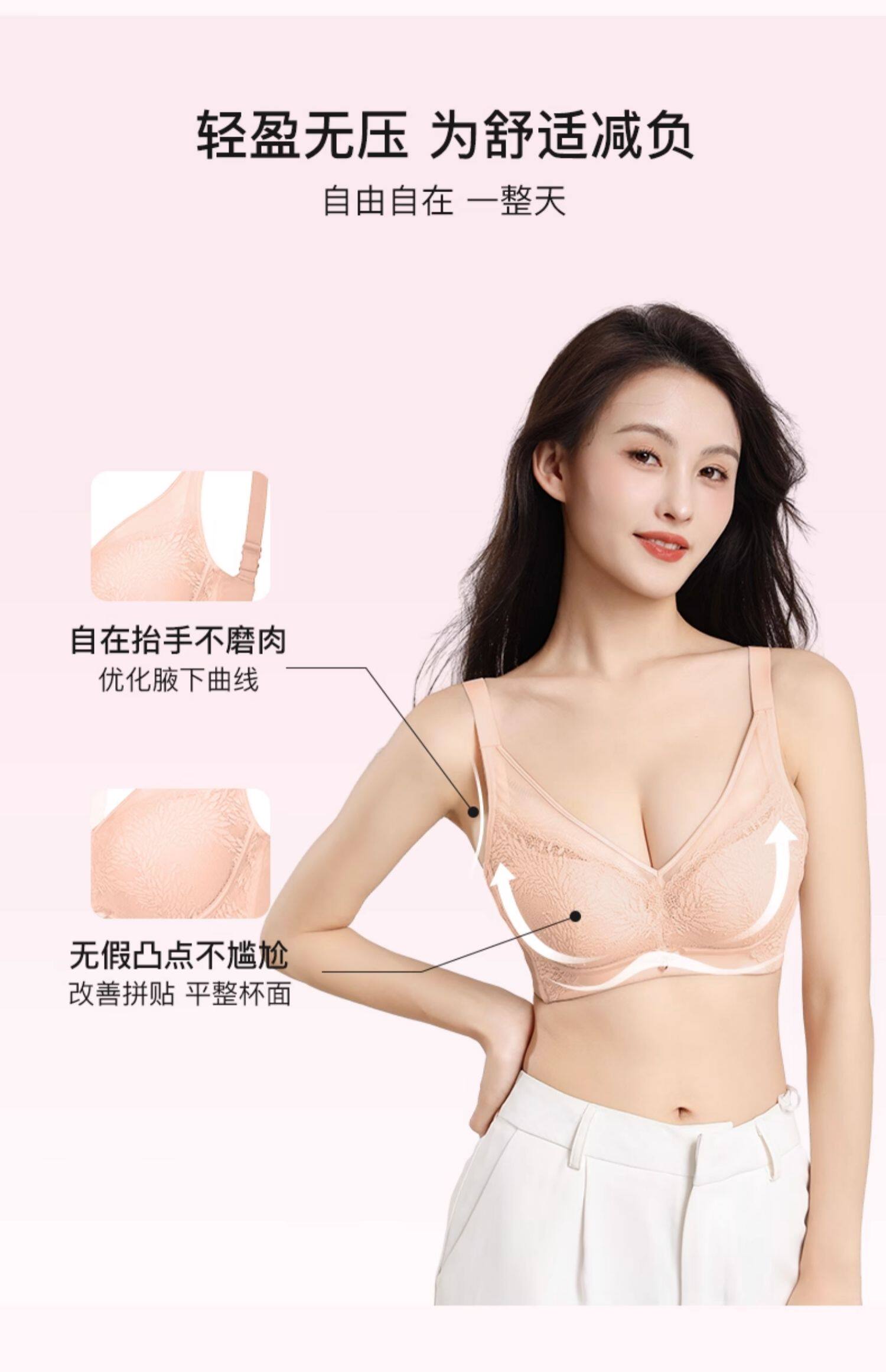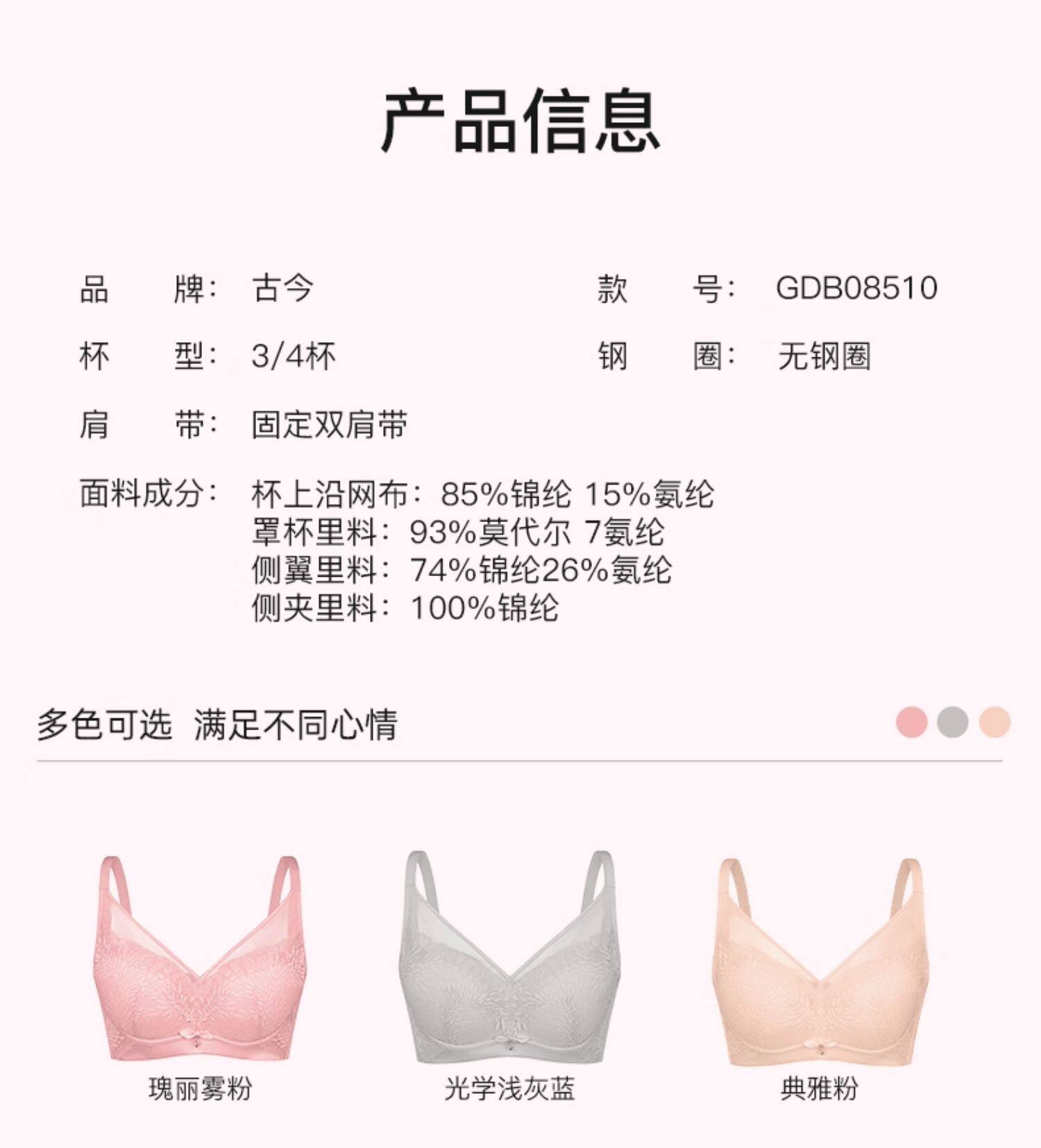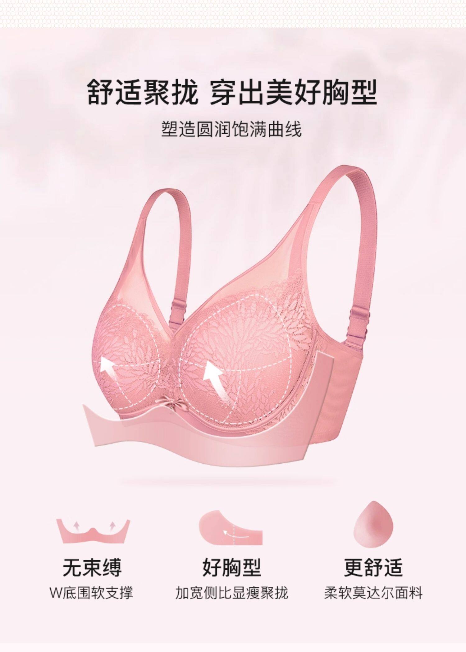 古今內衣女透氣小胸聚攏莫代爾無鋼圈上薄下厚26mm蕾絲文胸罩