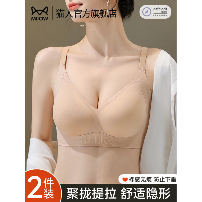 貓人內衣女小胸聚攏收副乳防下垂無痕美背2025新爆款粉底液文胸罩