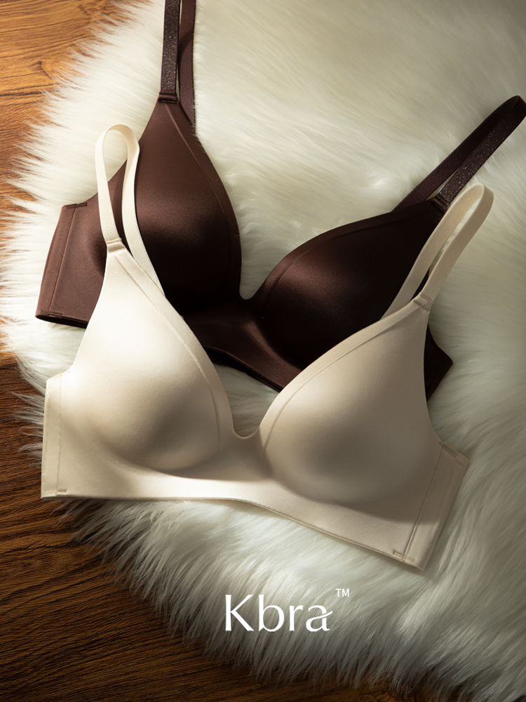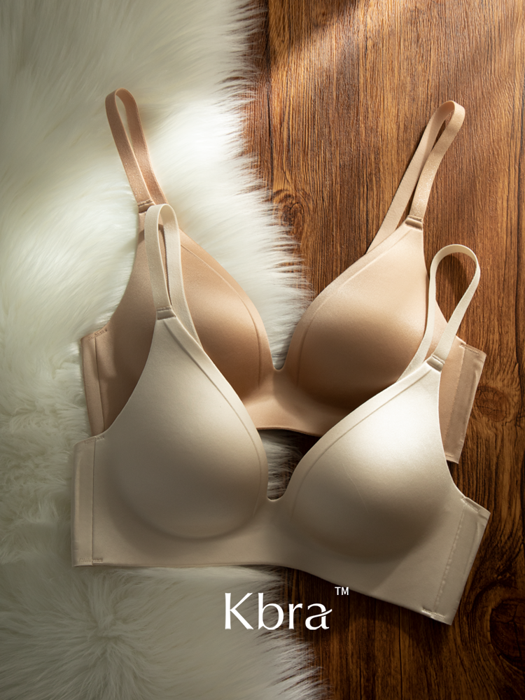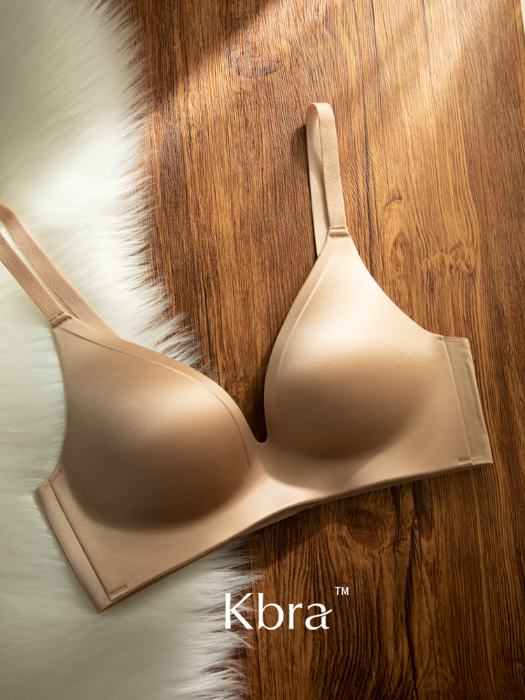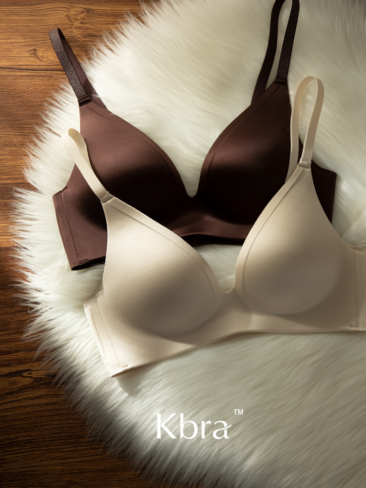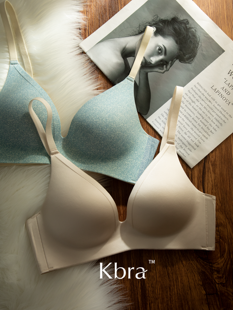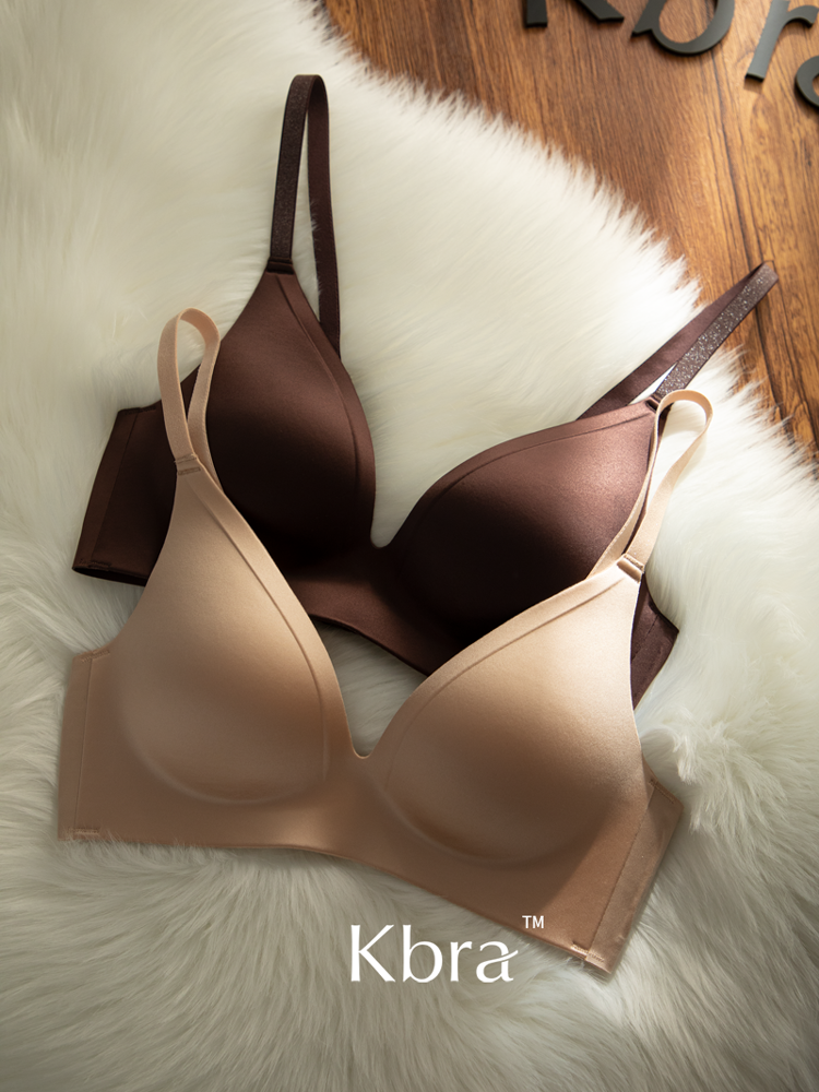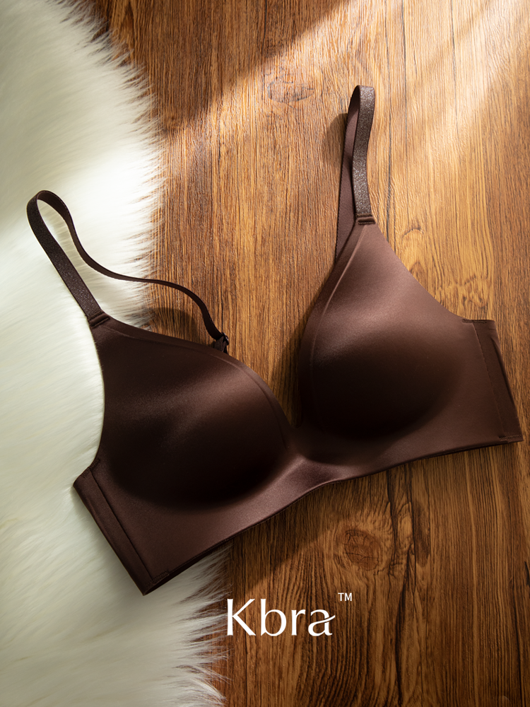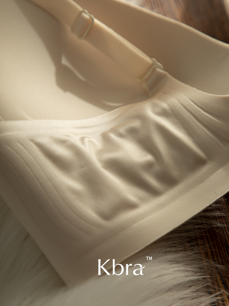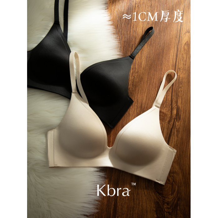 Kbra緞面無痕內衣女小胸聚攏細閃肩帶無鋼圈上托收副乳防下垂文胸