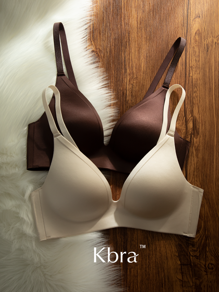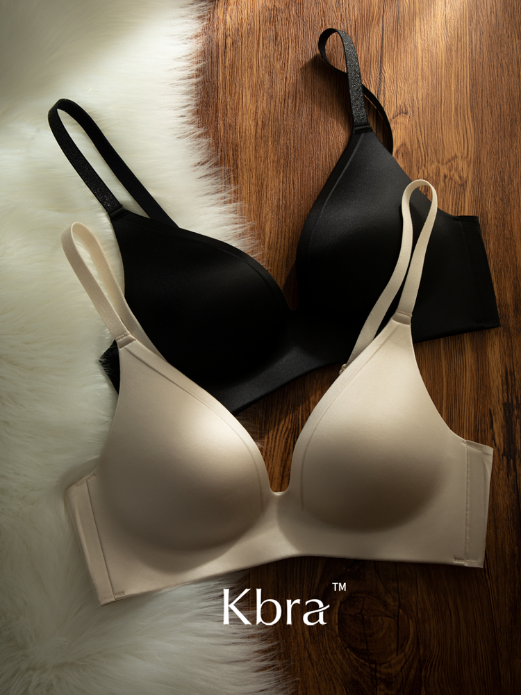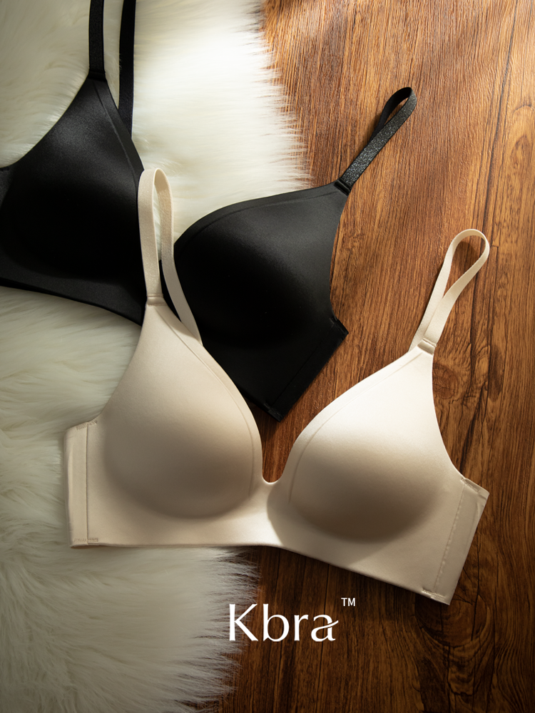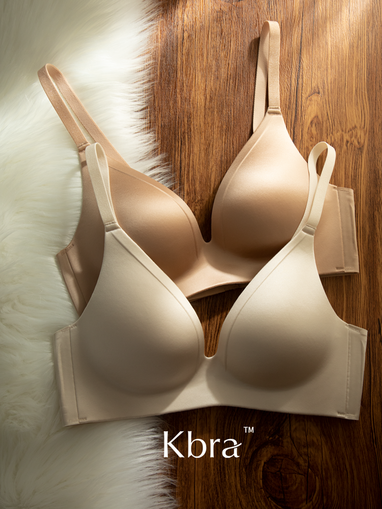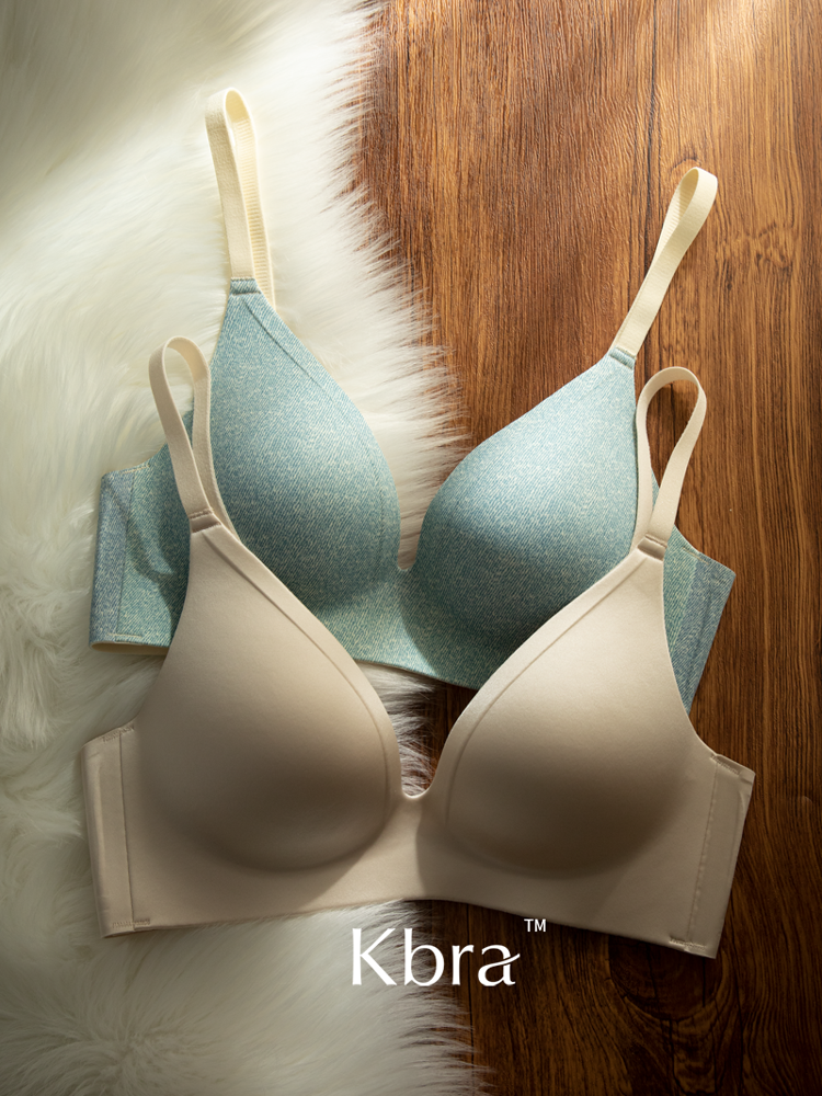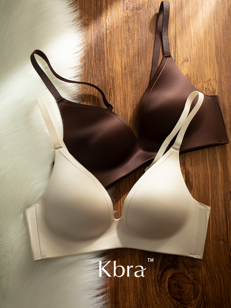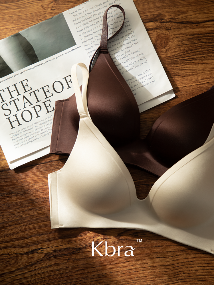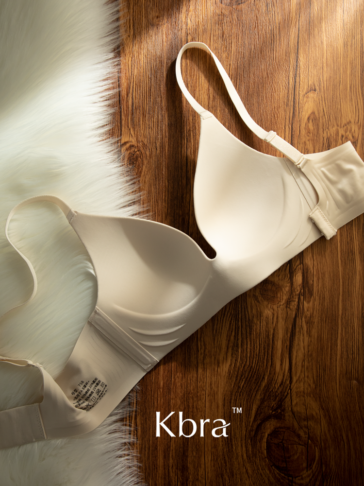 Kbra緞面無痕內衣女小胸聚攏細閃肩帶無鋼圈上托收副乳防下垂文胸