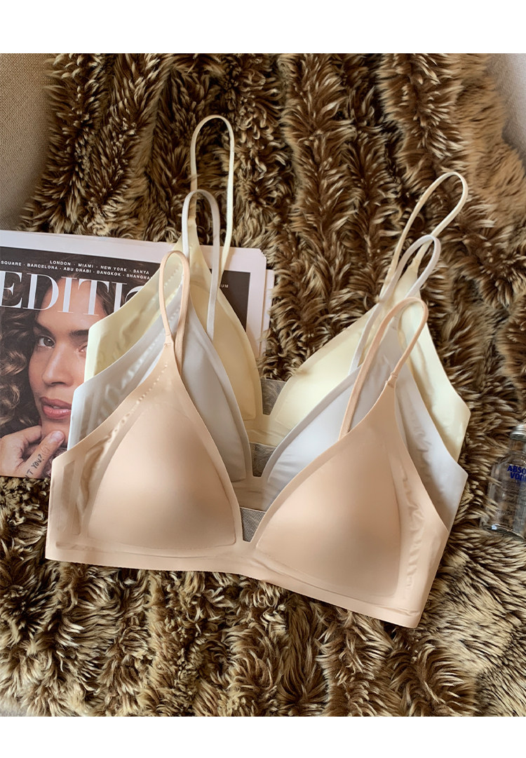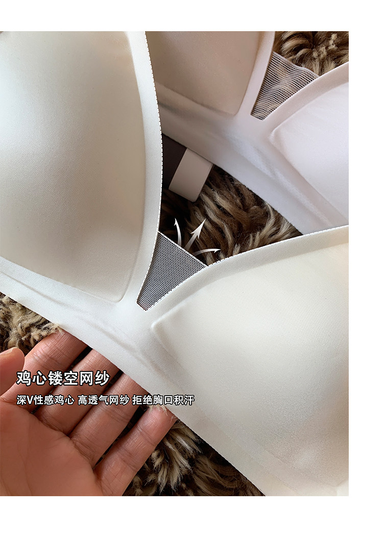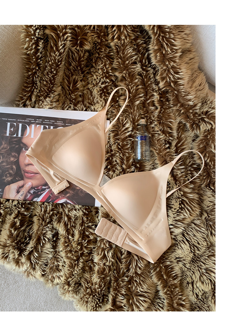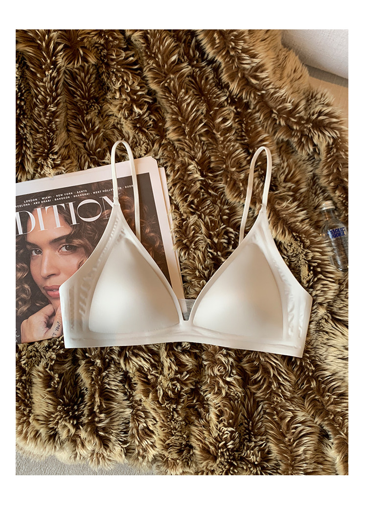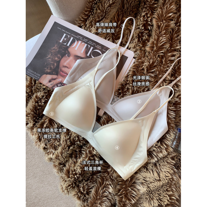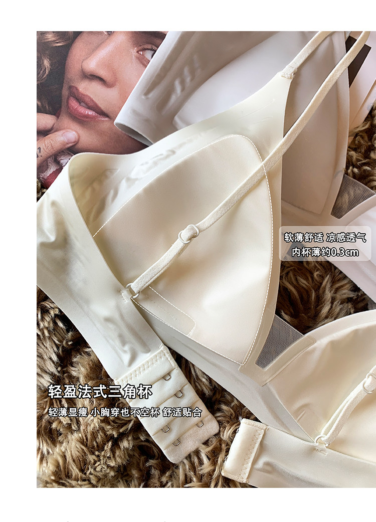 薄款法式緞面無痕內衣女深V細肩帶三角杯光面防下垂收副乳文胸罩