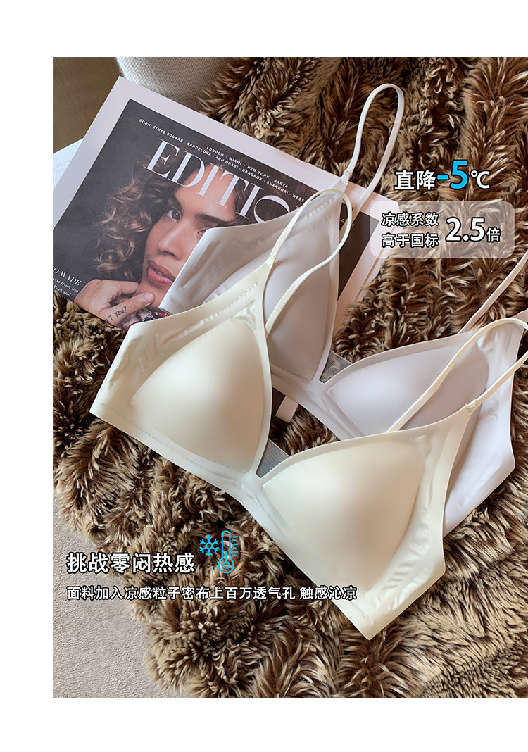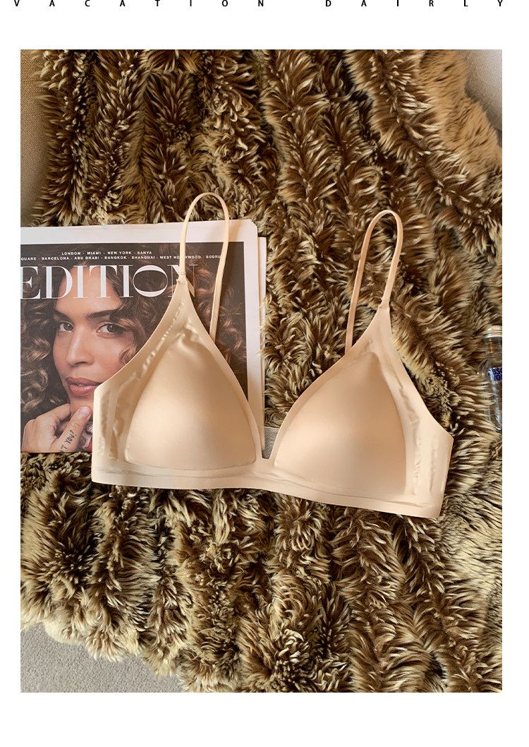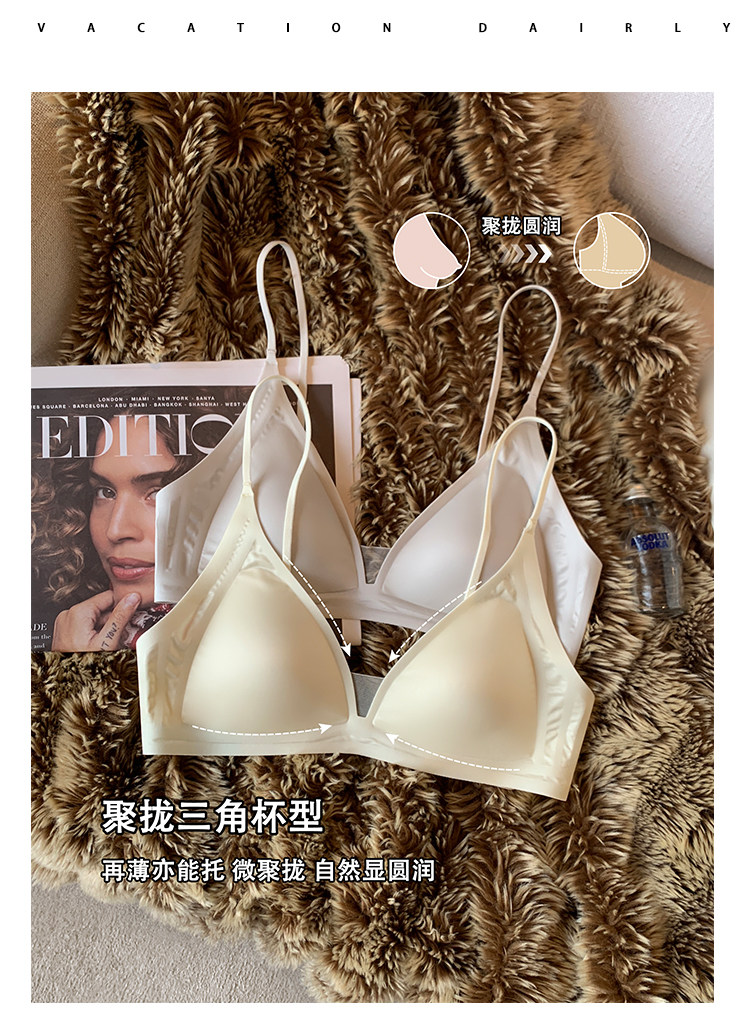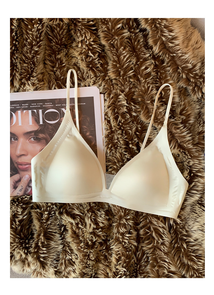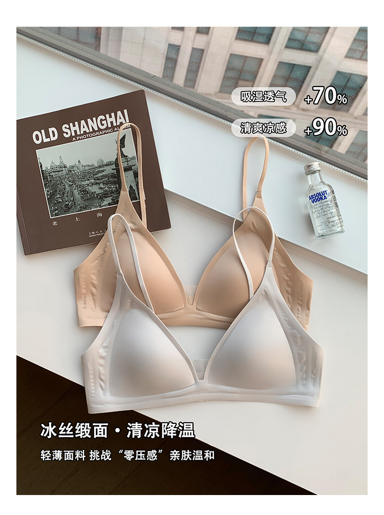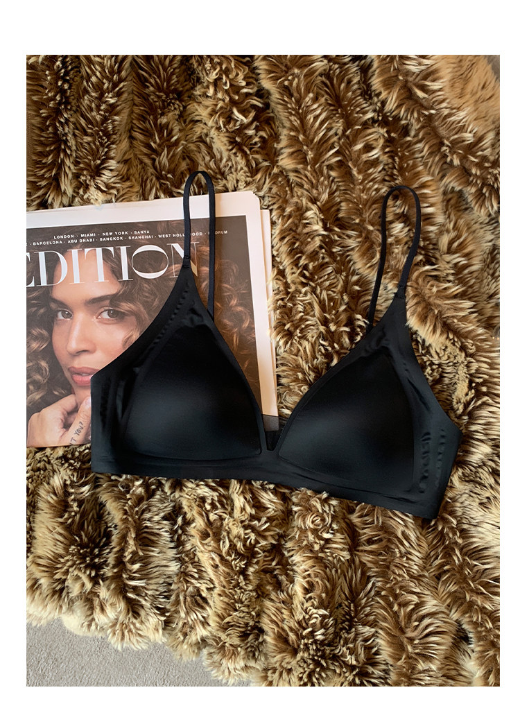 薄款法式緞面無痕內衣女深V細肩帶三角杯光面防下垂收副乳文胸罩