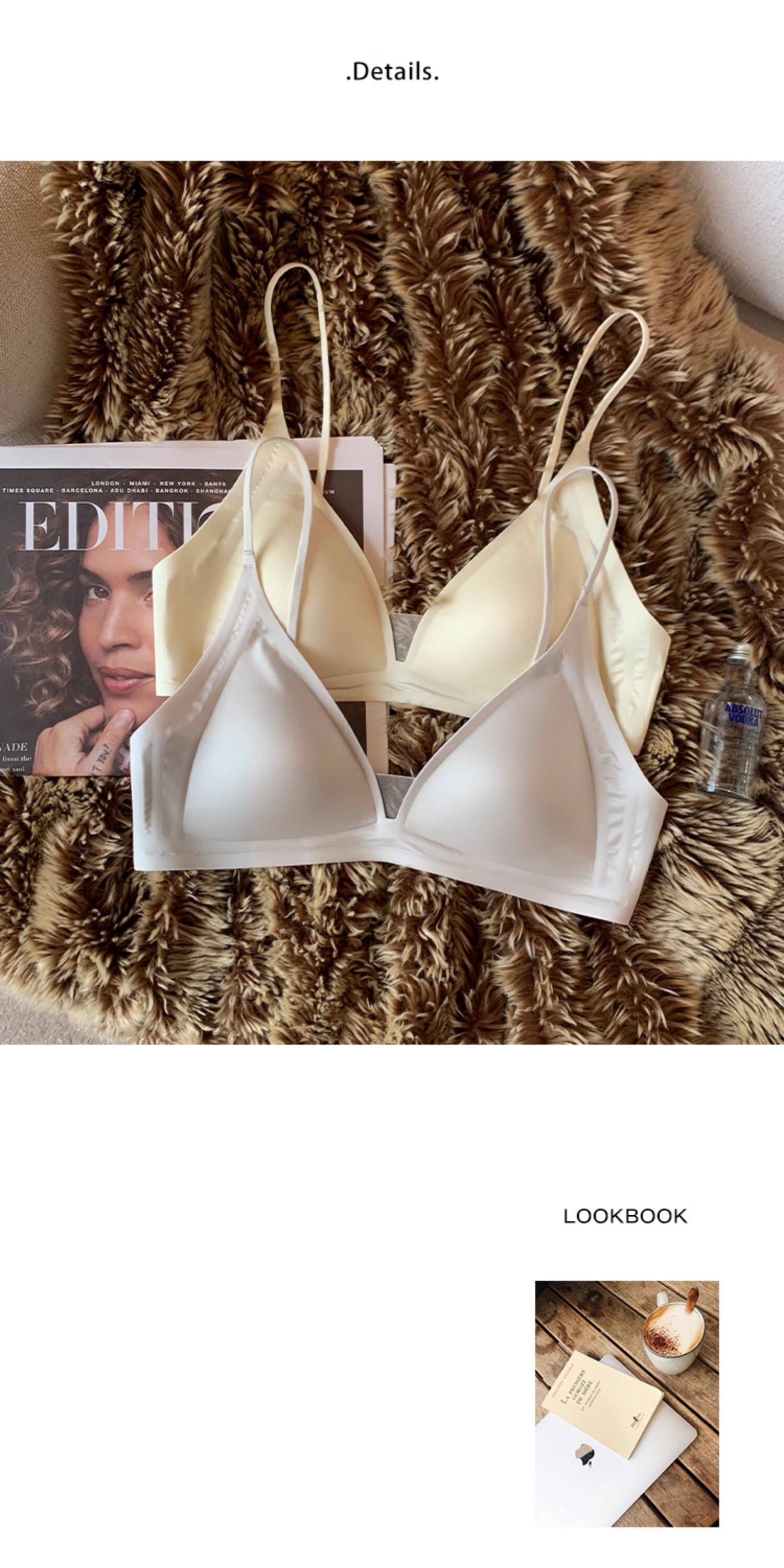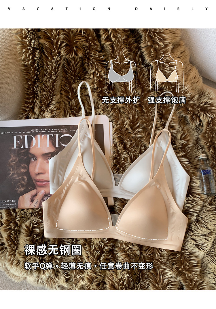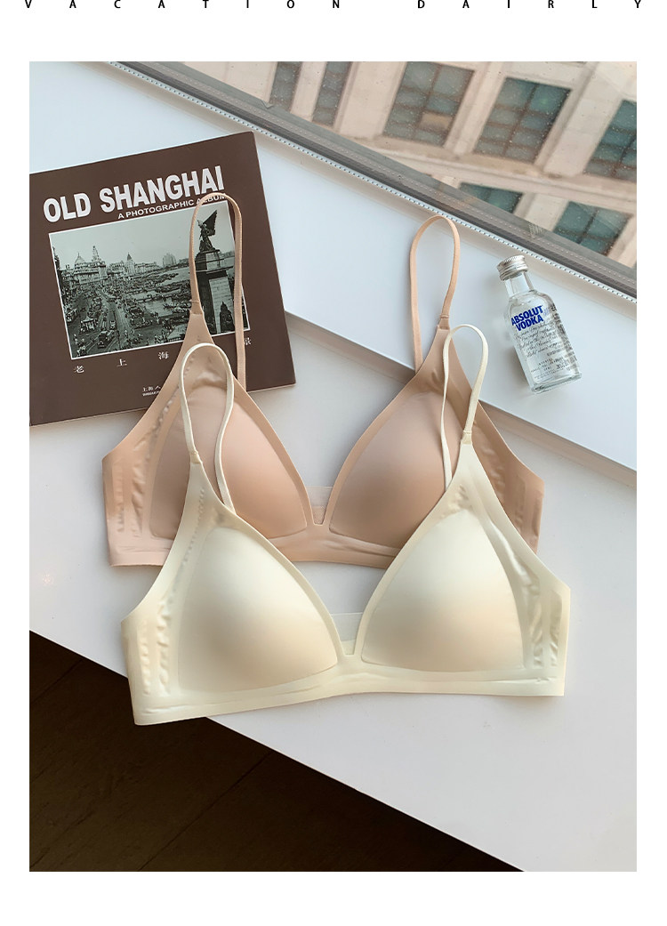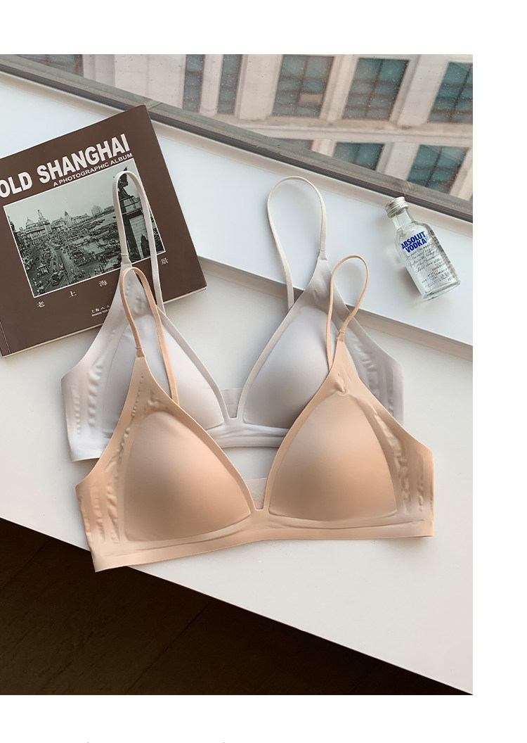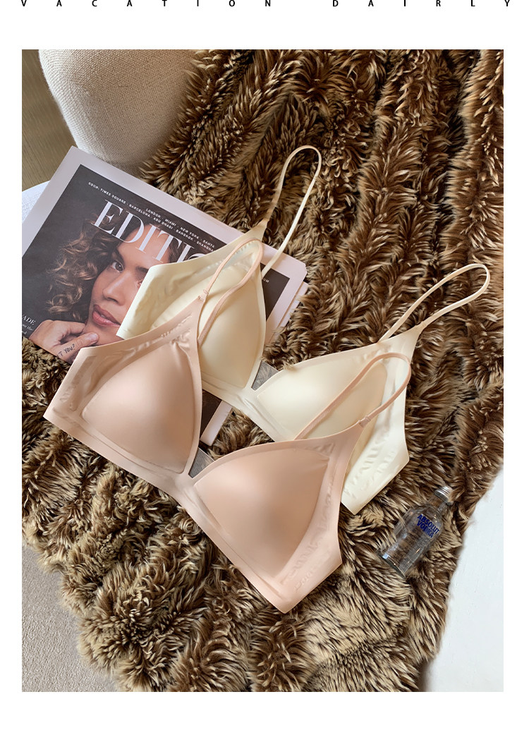薄款法式緞面無痕內衣女深V細肩帶三角杯光面防下垂收副乳文胸罩