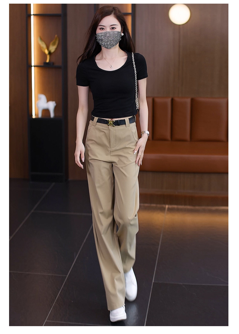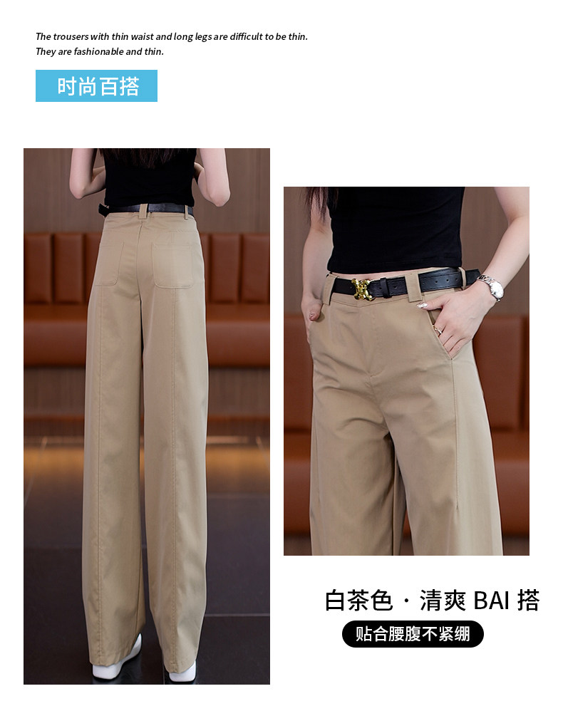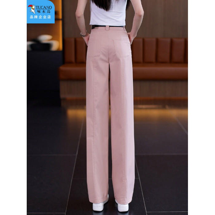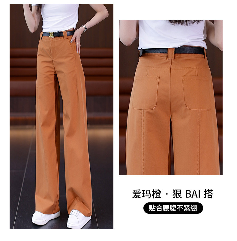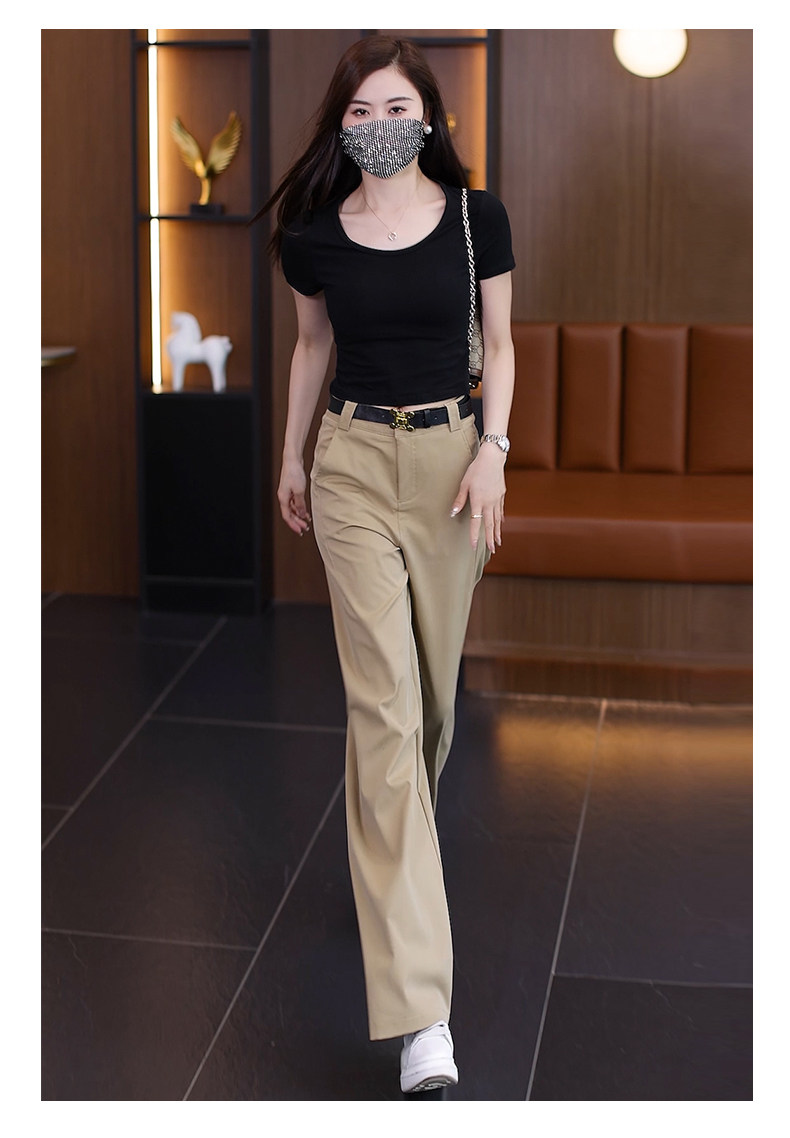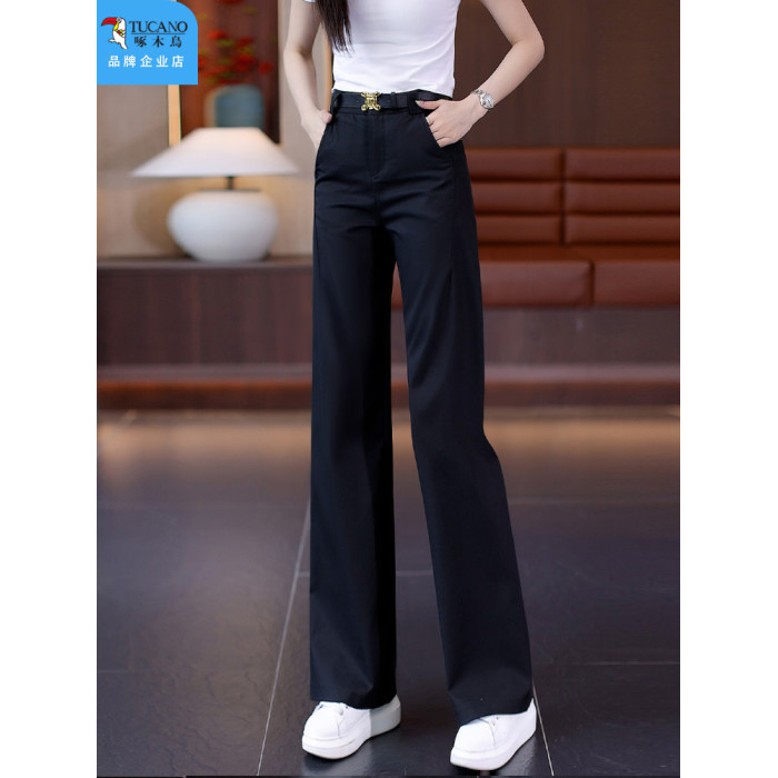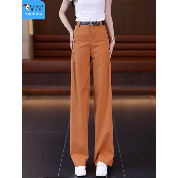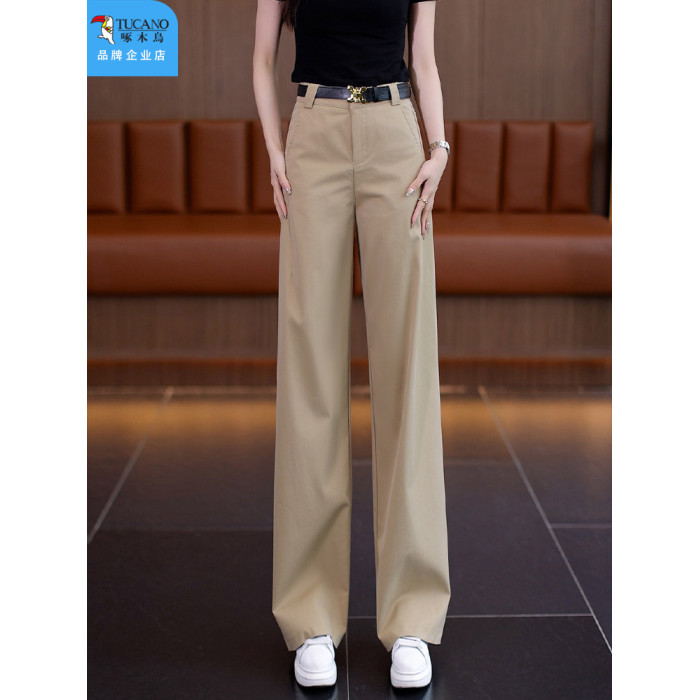 啄木鳥卡其色直筒褲女秋季2025年新款顯瘦女褲高腰休閒窄版濶腿褲