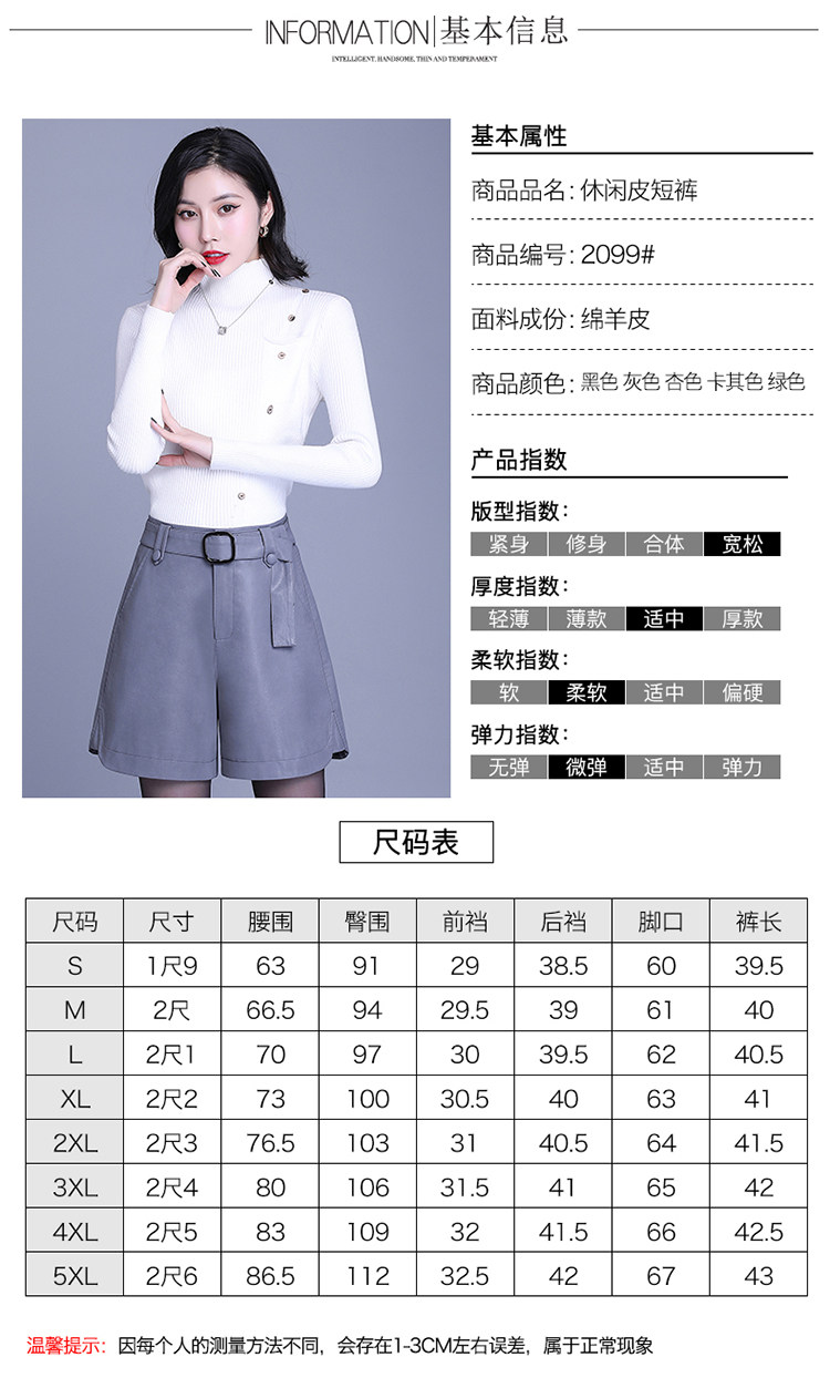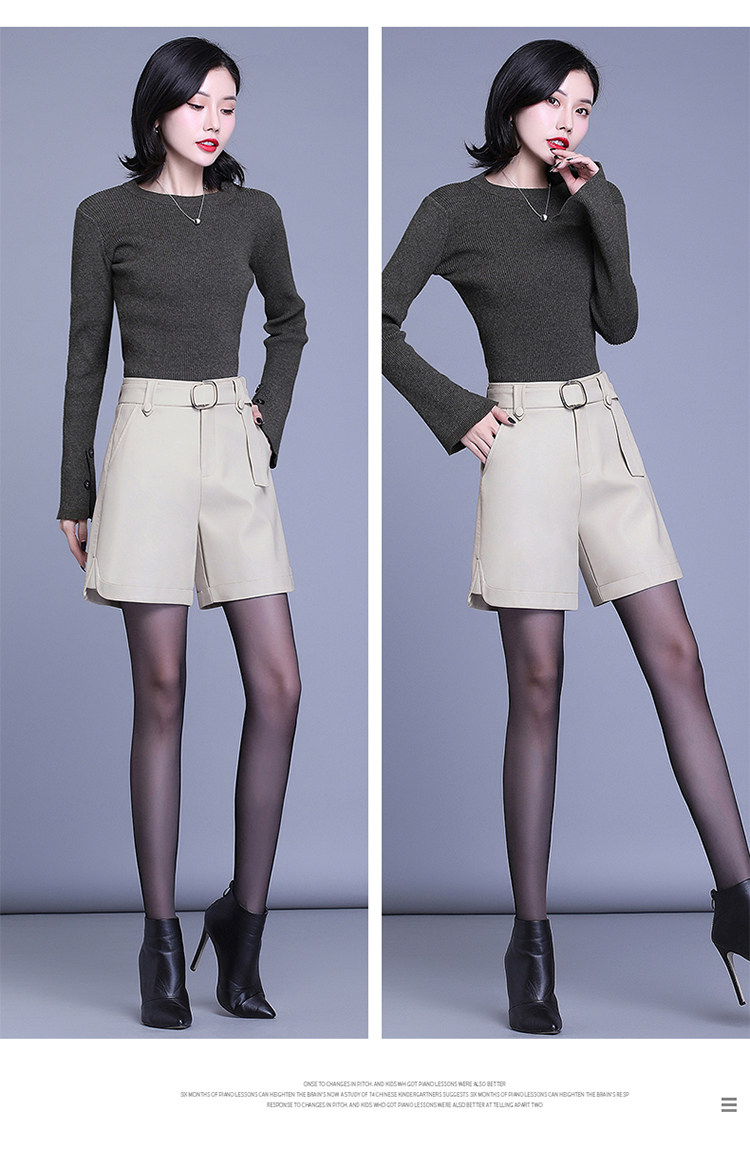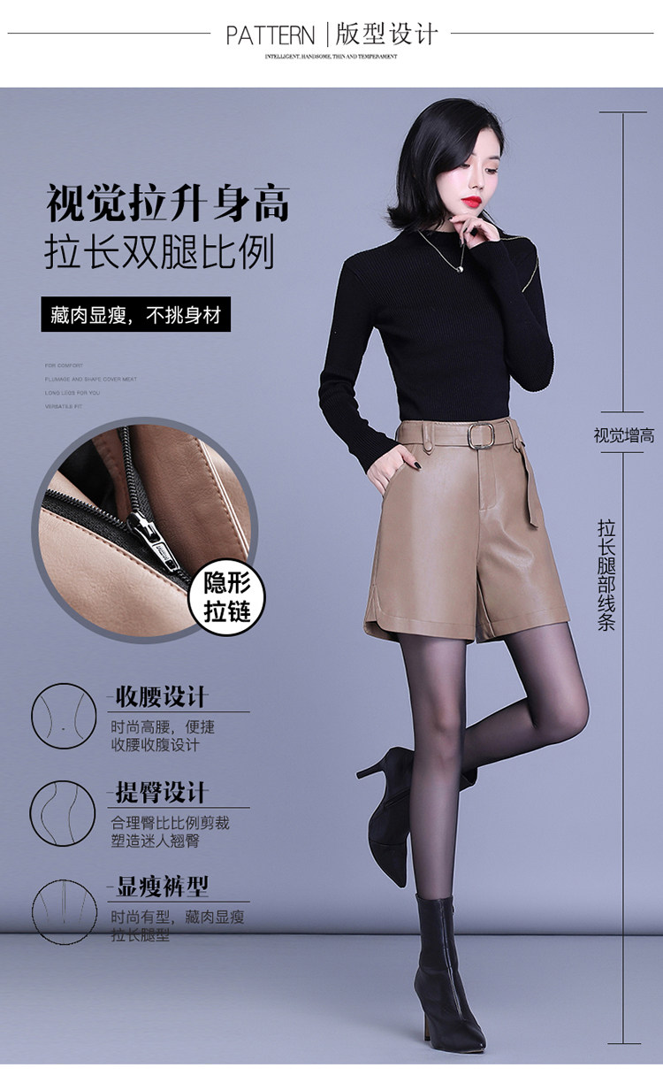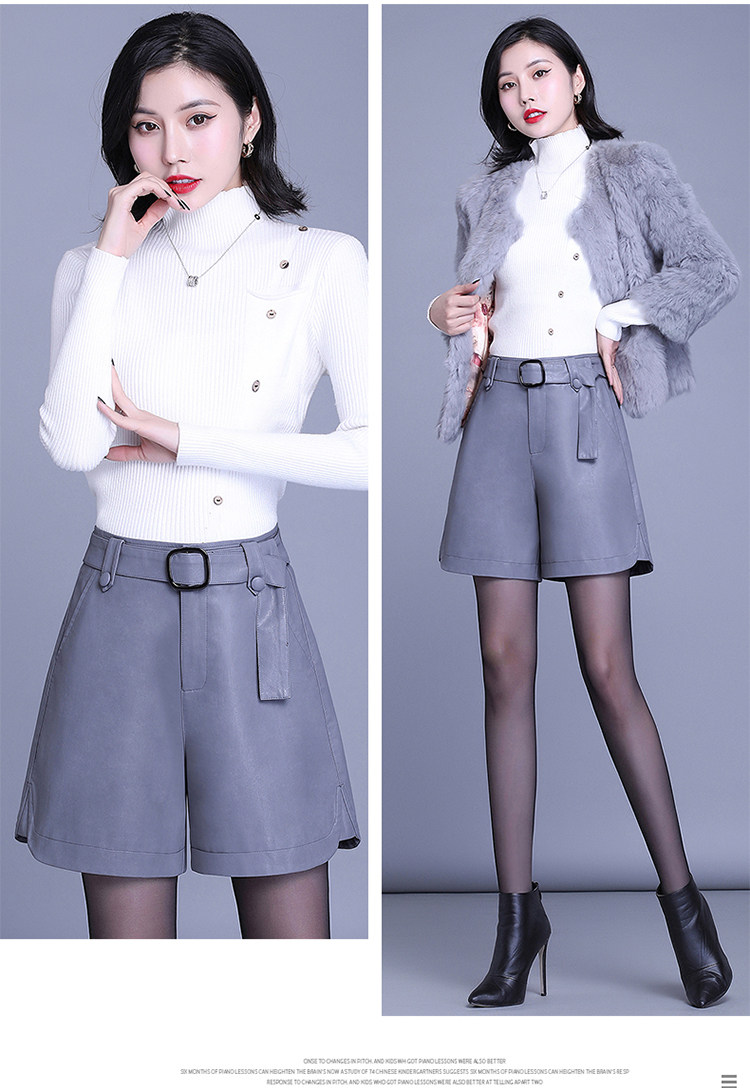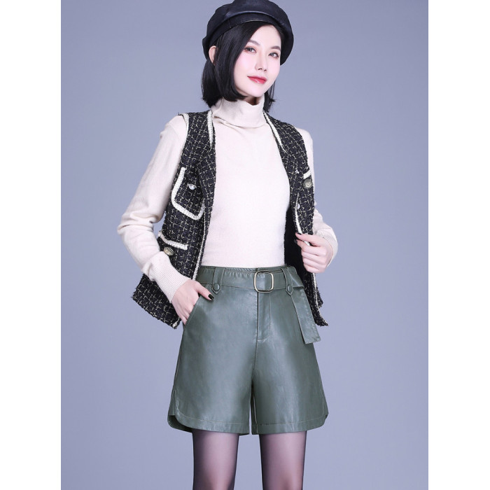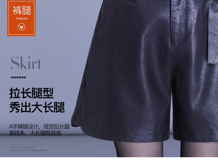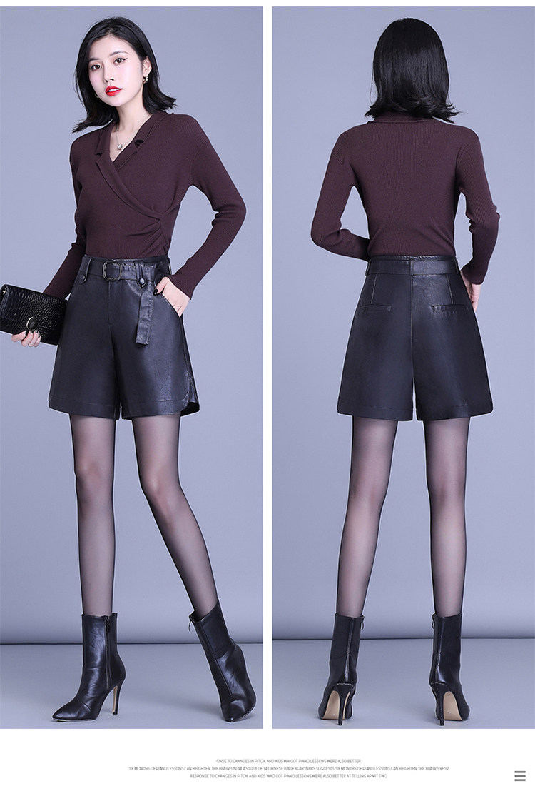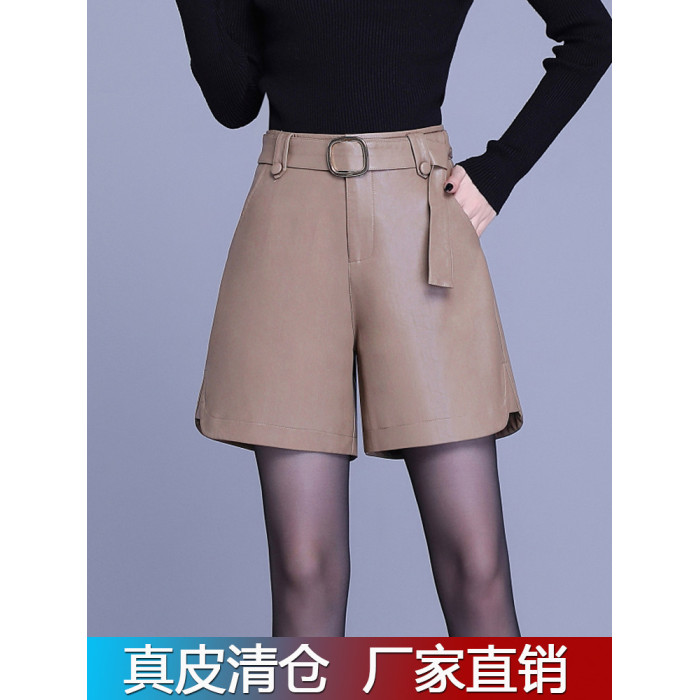 海甯真皮短褲女高腰濶腿褲2025秋冬時尚韓版寬鬆a字綿羊皮靴褲潮