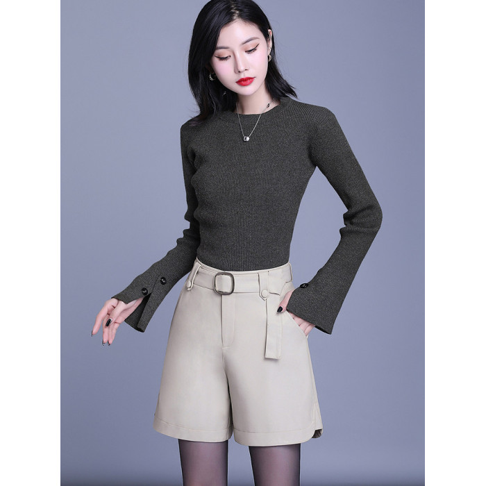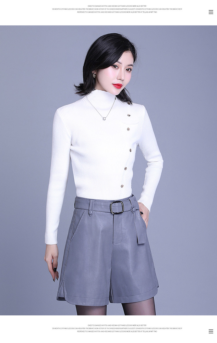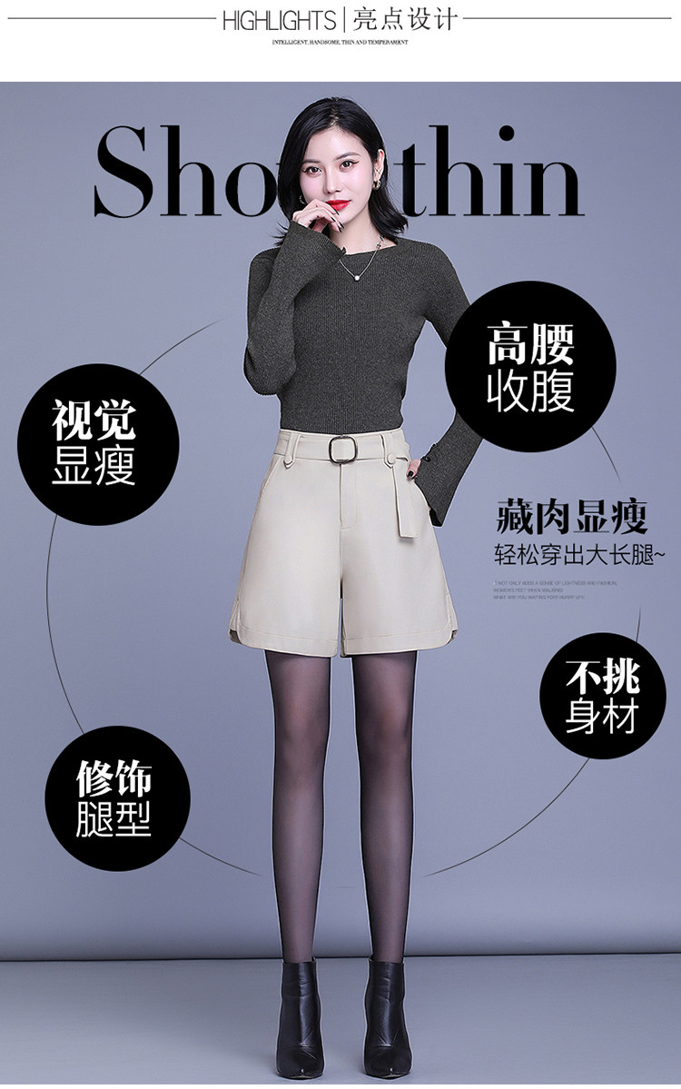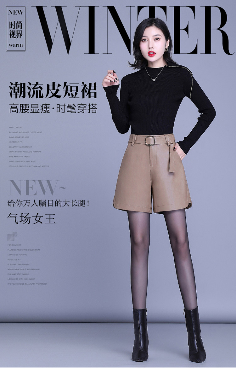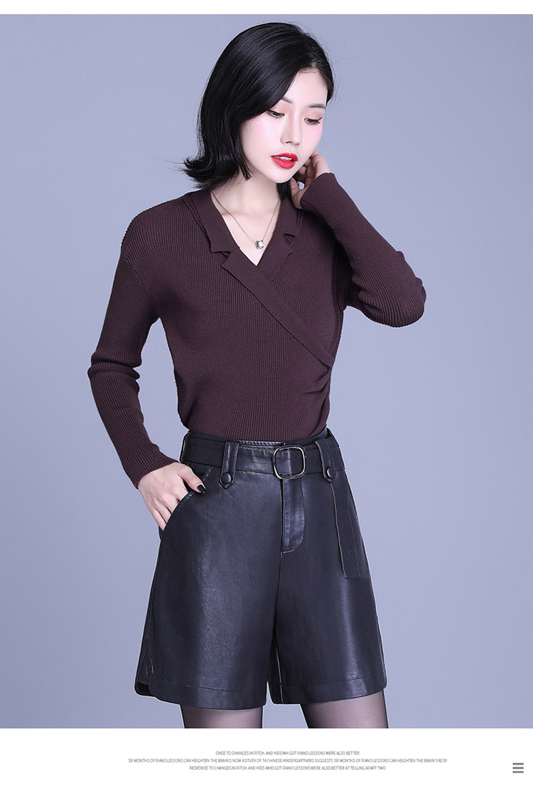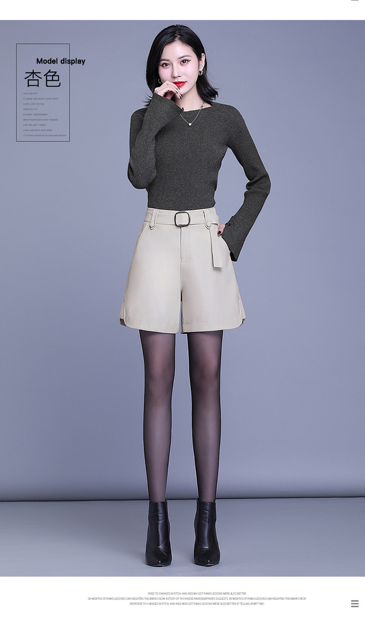 海甯真皮短褲女高腰濶腿褲2025秋冬時尚韓版寬鬆a字綿羊皮靴褲潮