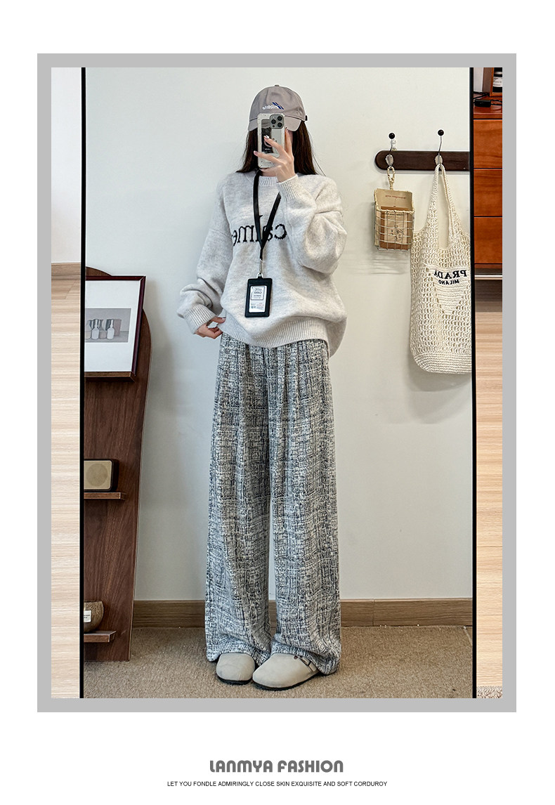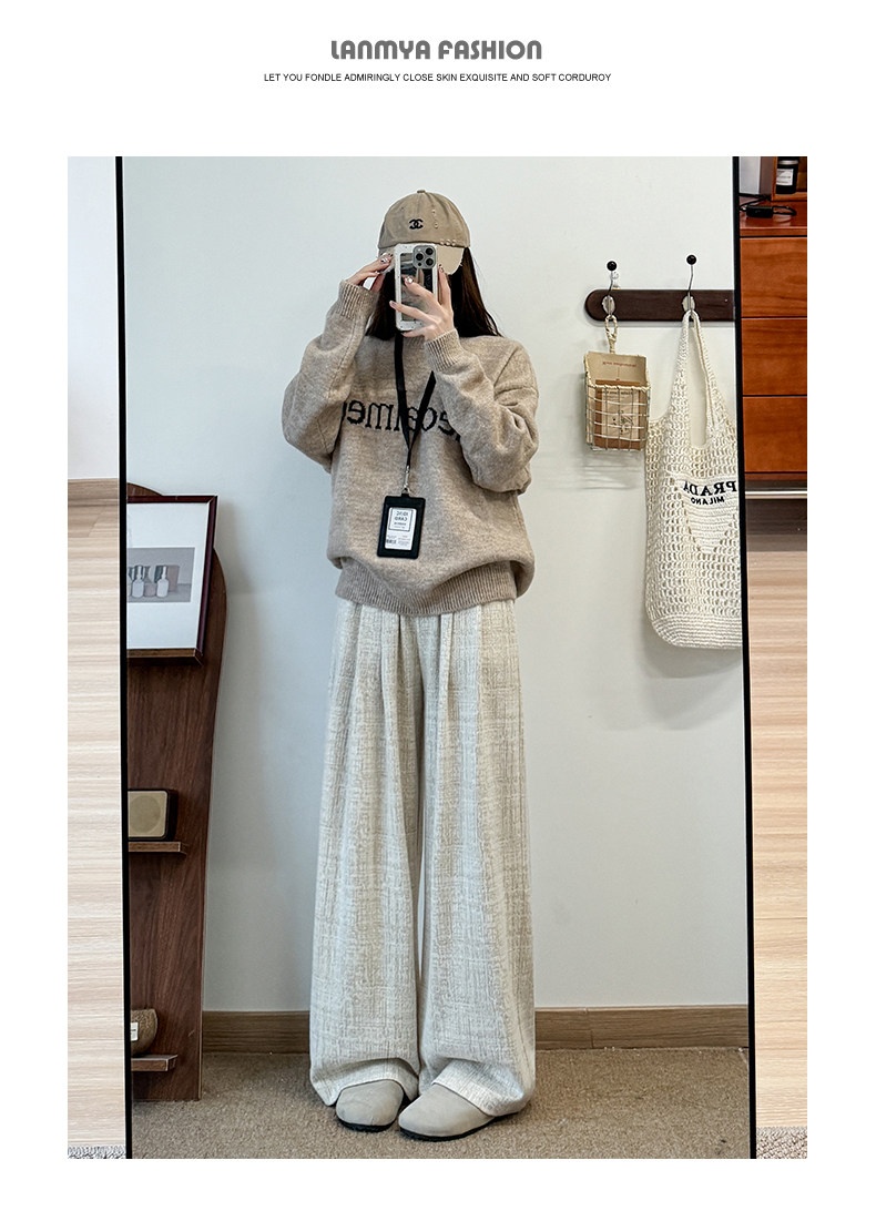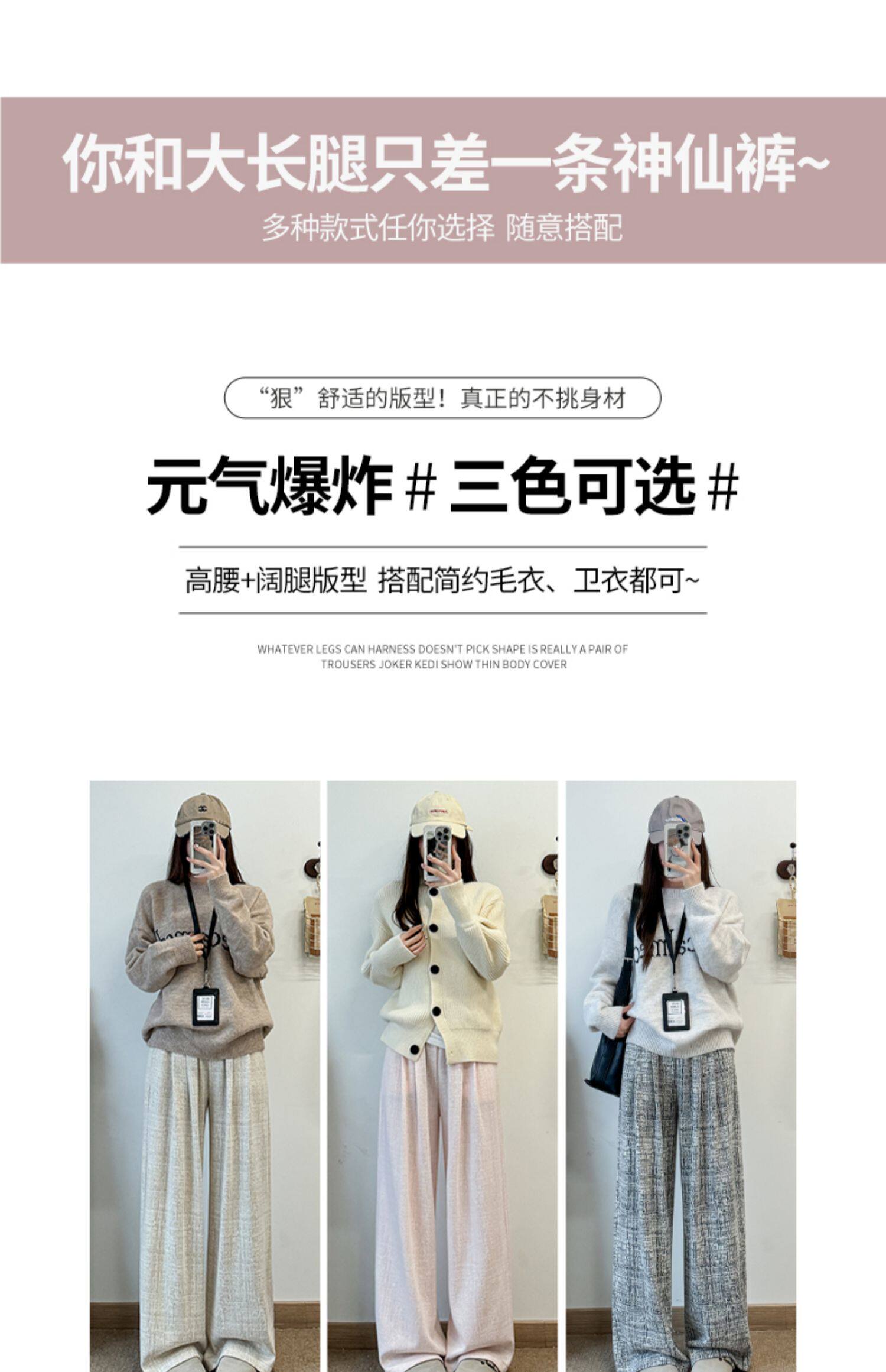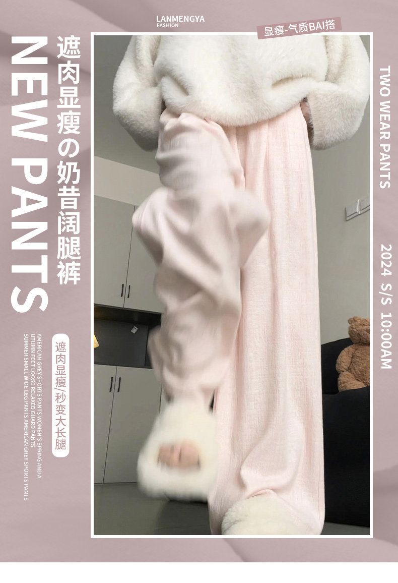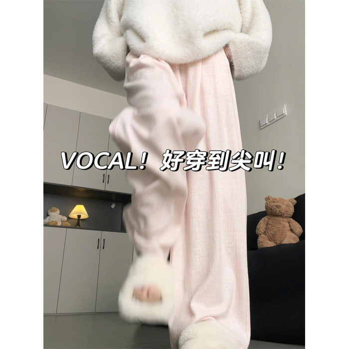 粉色軟糯濶腿褲女秋冬2025新款高腰垂感直筒寬鬆慵懶加絨窄版長褲