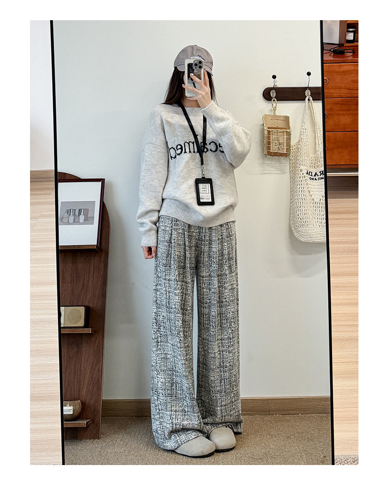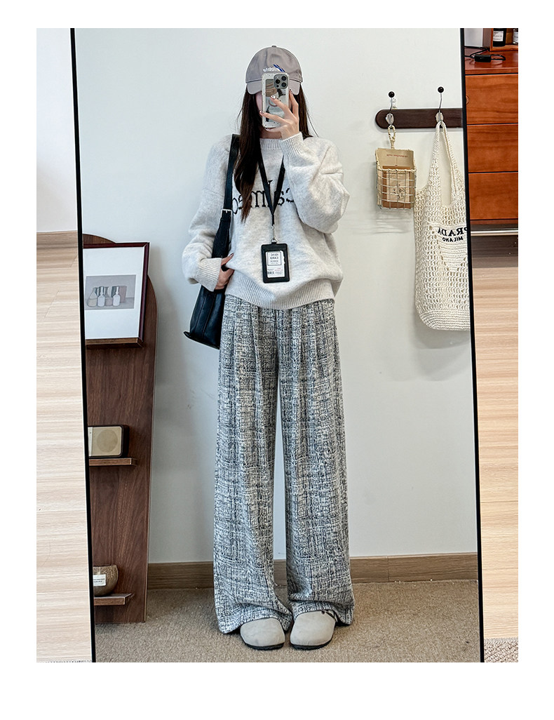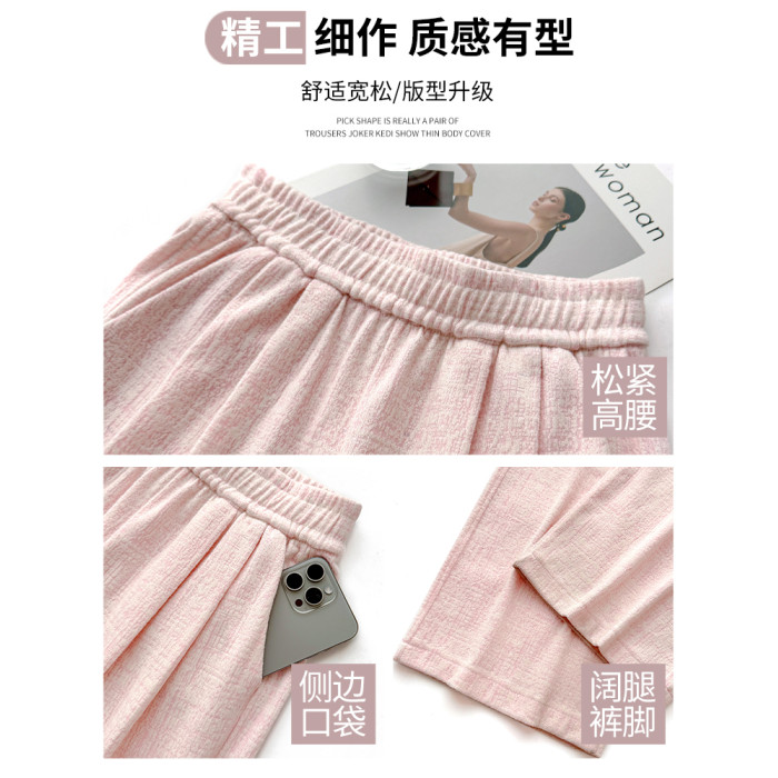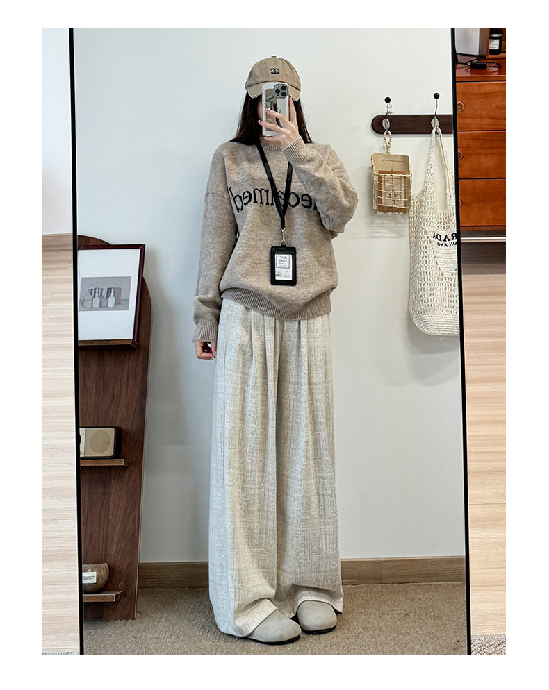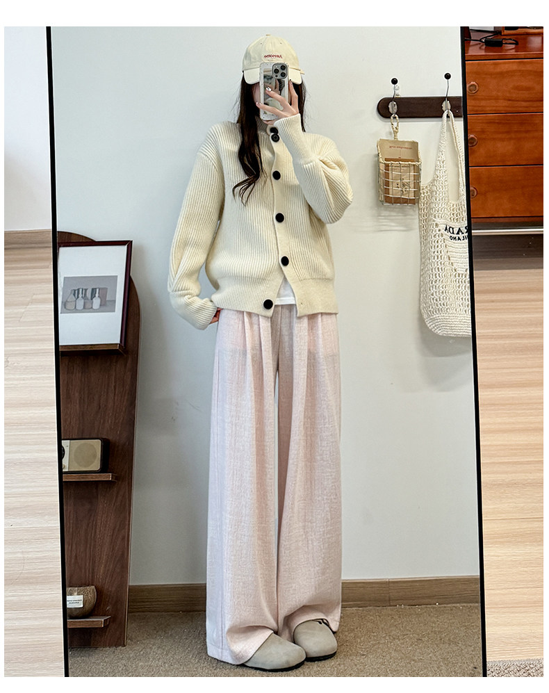 粉色軟糯濶腿褲女秋冬2025新款高腰垂感直筒寬鬆慵懶加絨窄版長褲