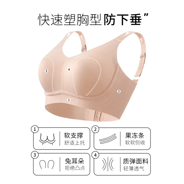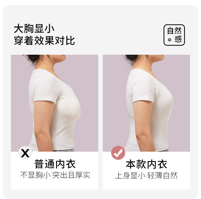 千奈美大胸顯小無鋼圈內衣女光面無痕上托收副乳薄款全罩杯文胸罩