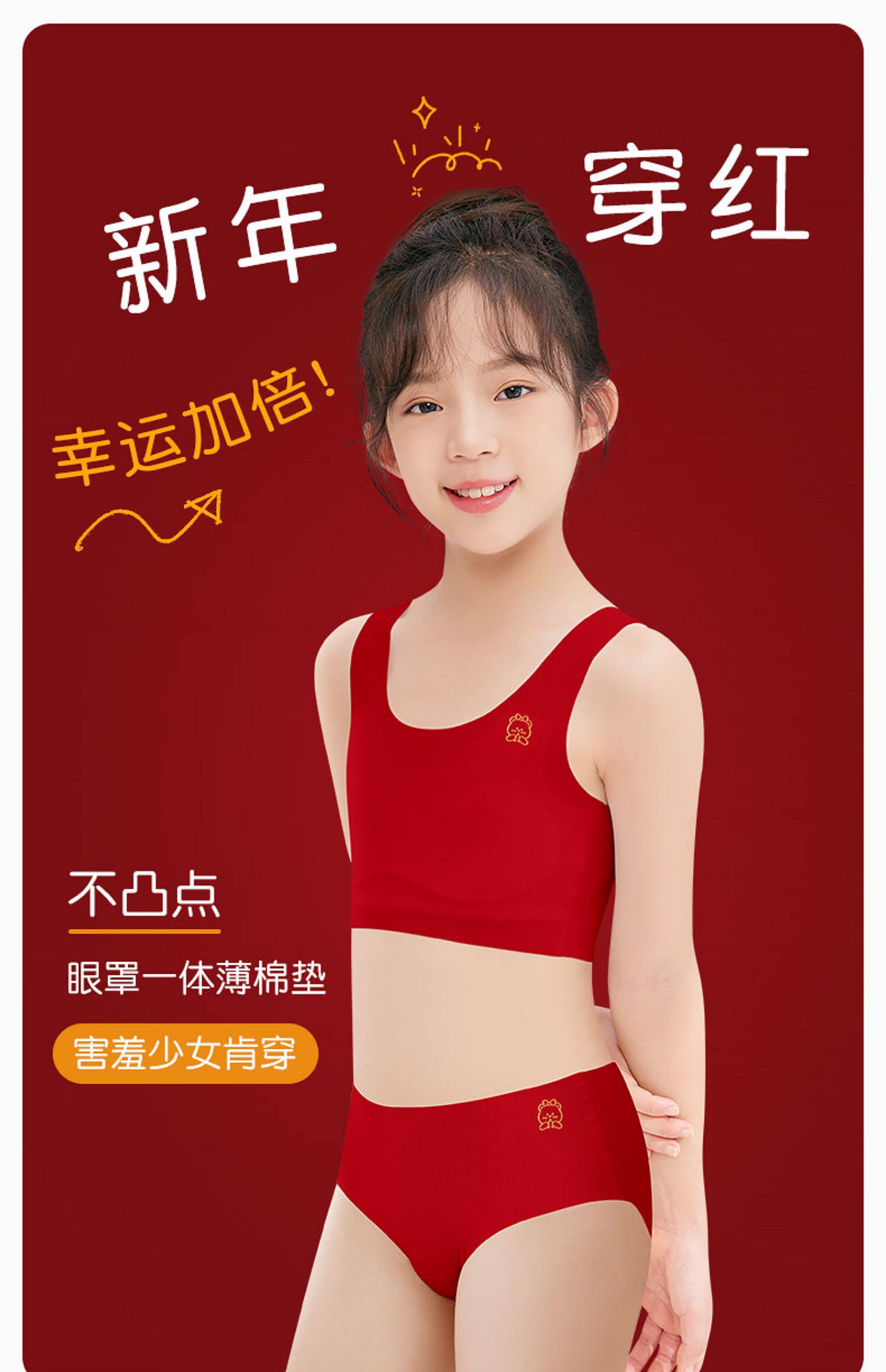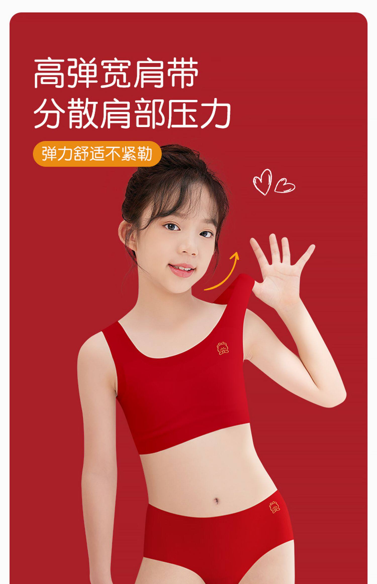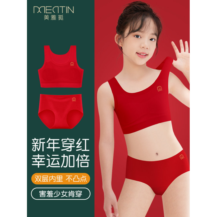 2026馬年本命年內衣兒童背心少女學生發育期文胸紅色內褲套裝12嵗