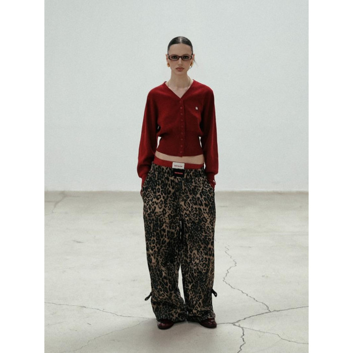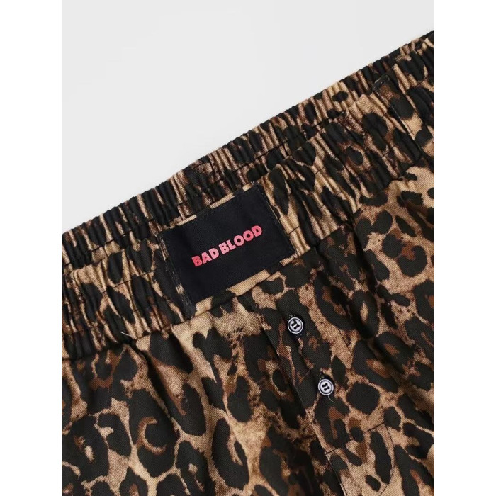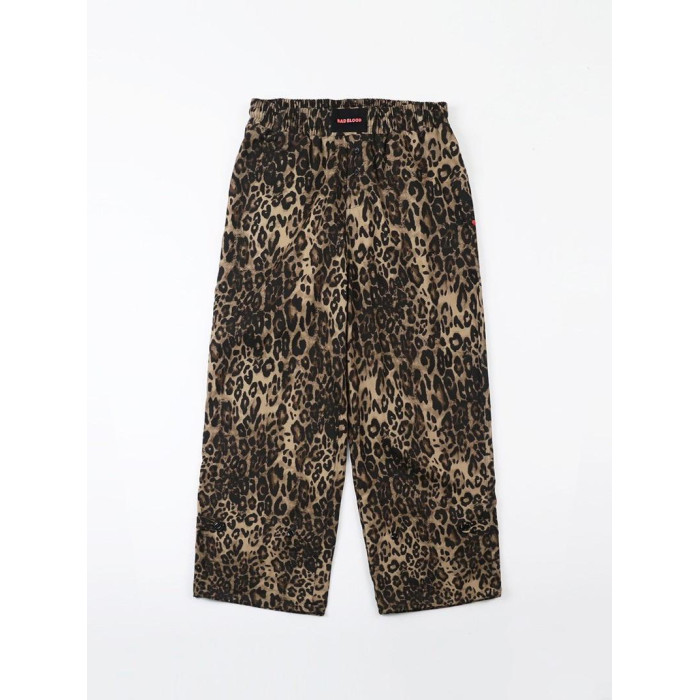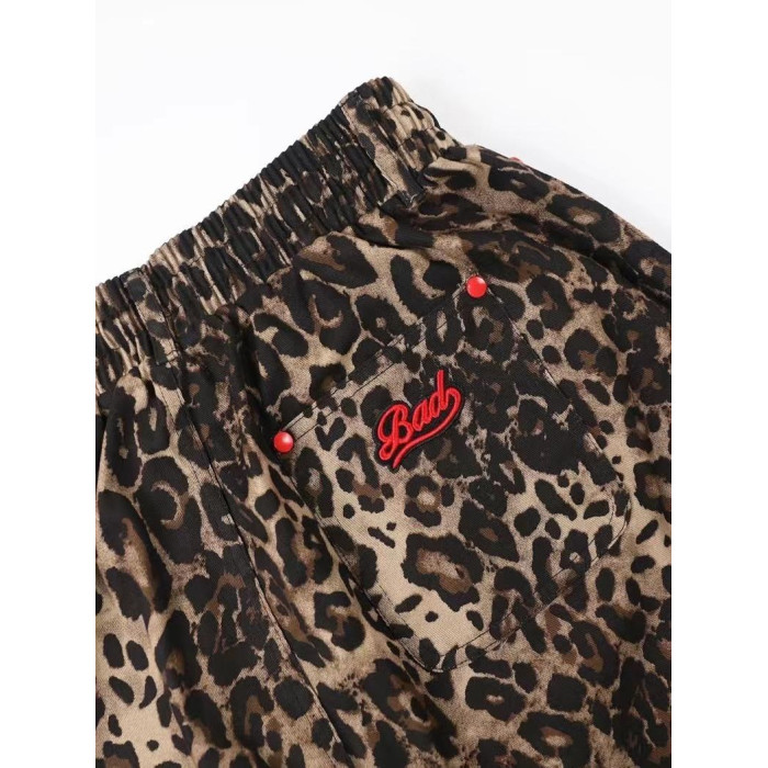 Badblood美式復古豹紋長褲女2024秋直筒濶腿褲寬鬆街舞褲子可束腳
