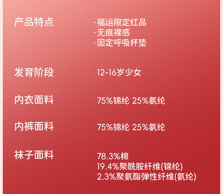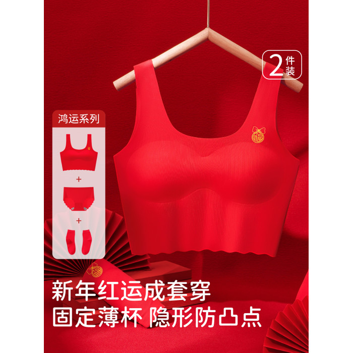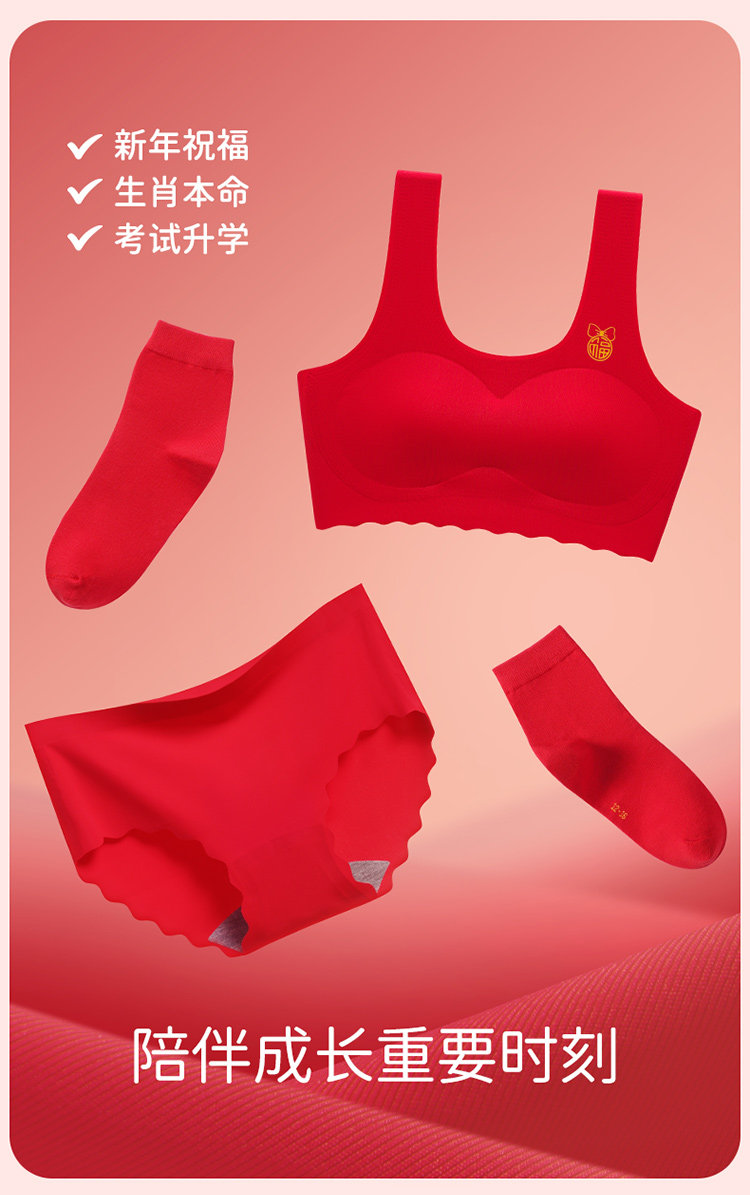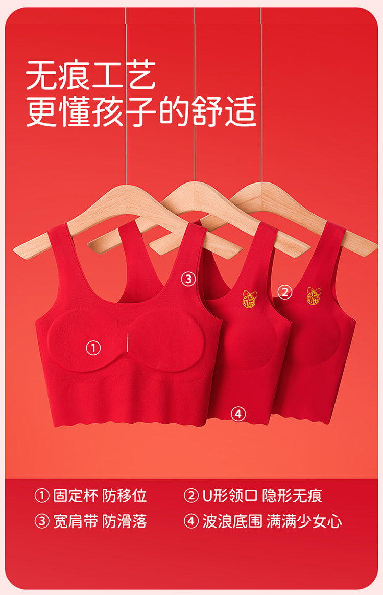 女童內衣本命年紅色套裝發育期學生兒童青少年女孩小背心少女文胸