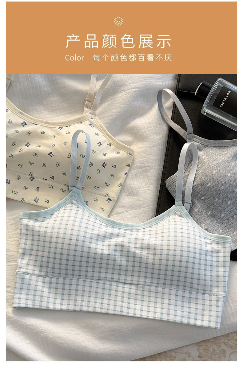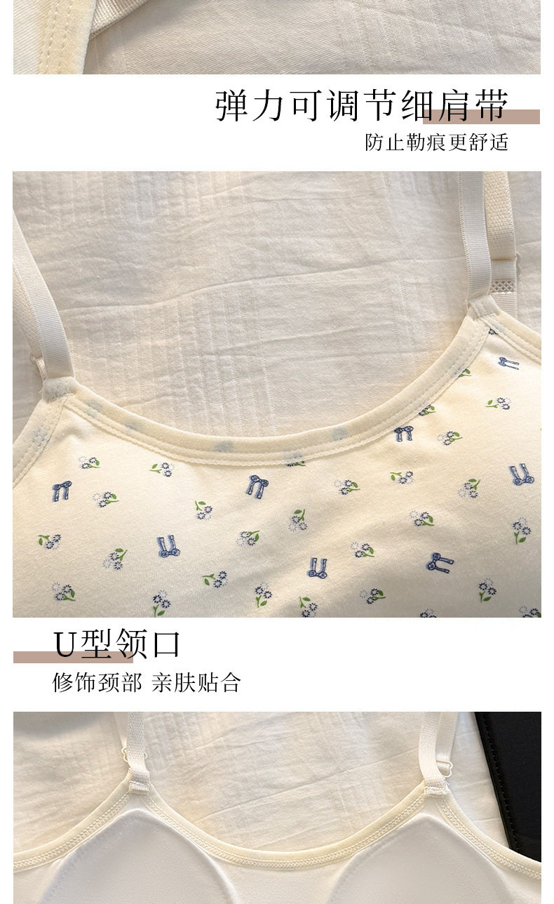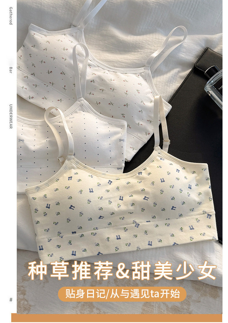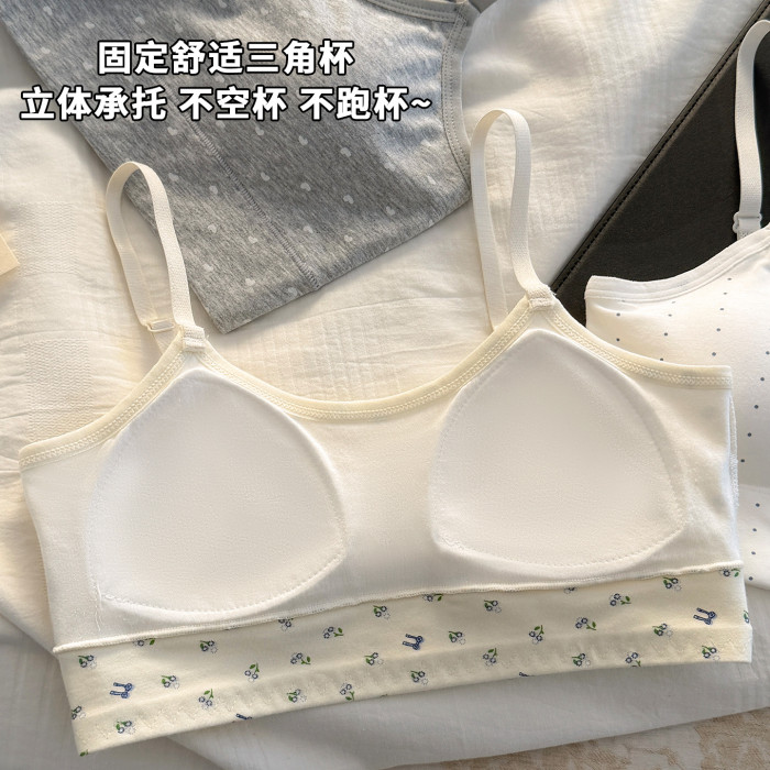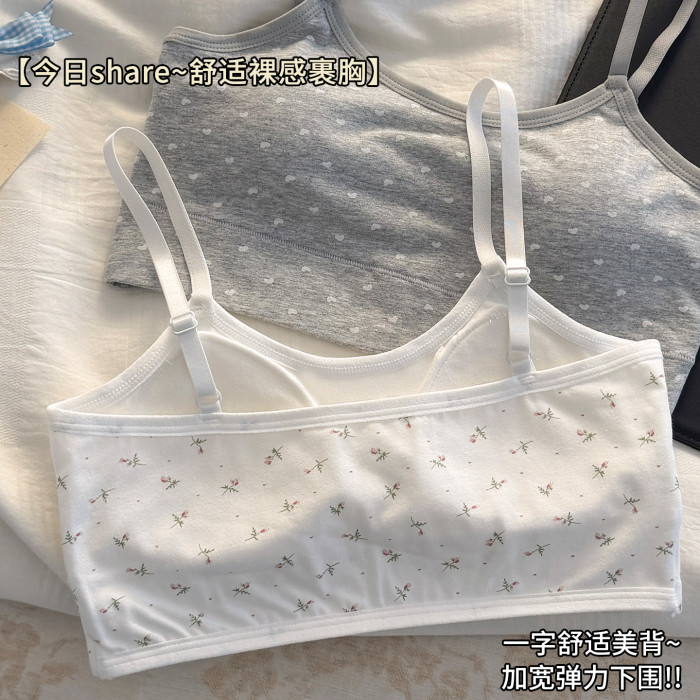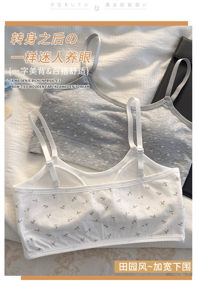 秋冬新款發育期純棉少女內衣初高中生吊帶背心透氣防震固定杯文胸