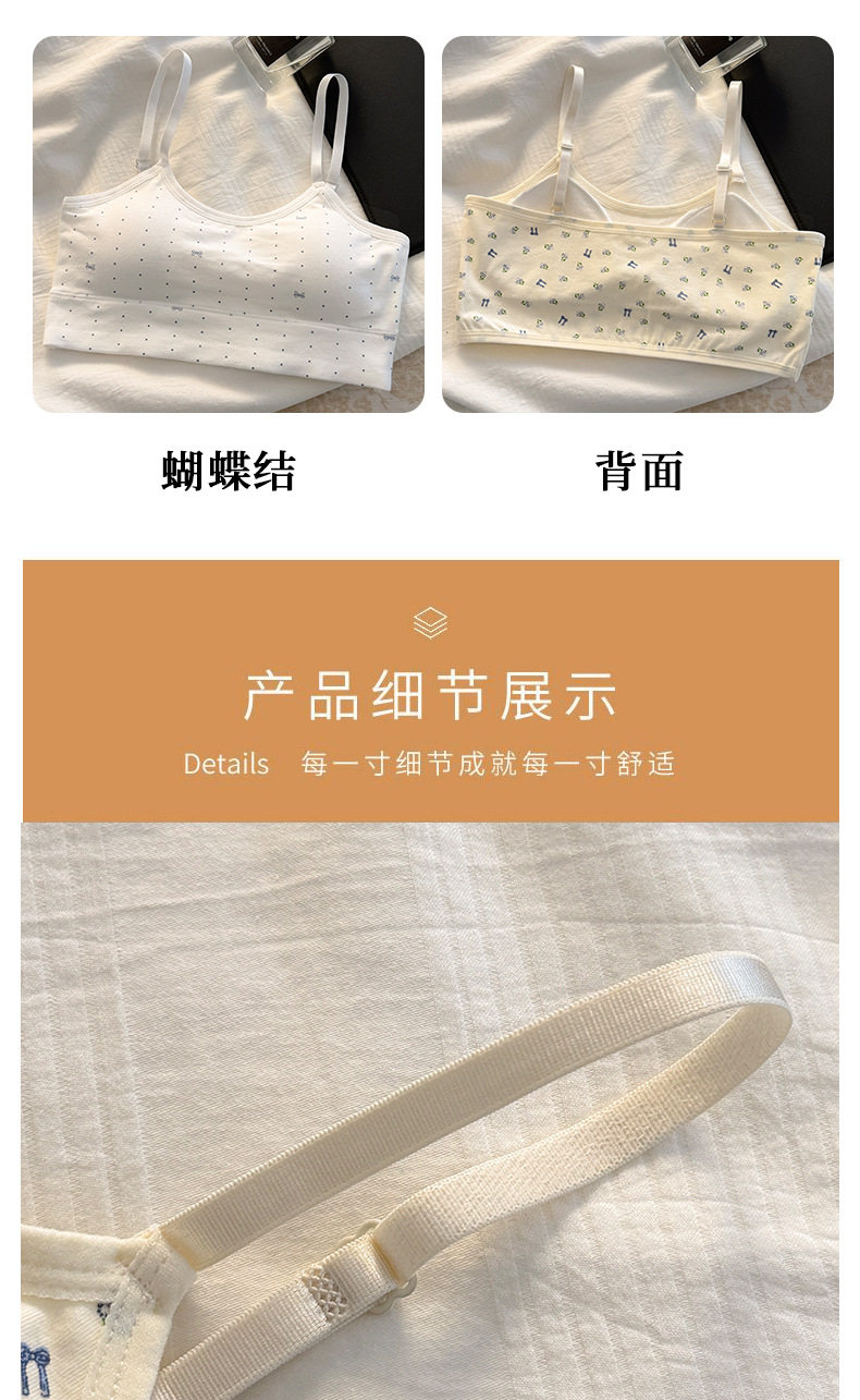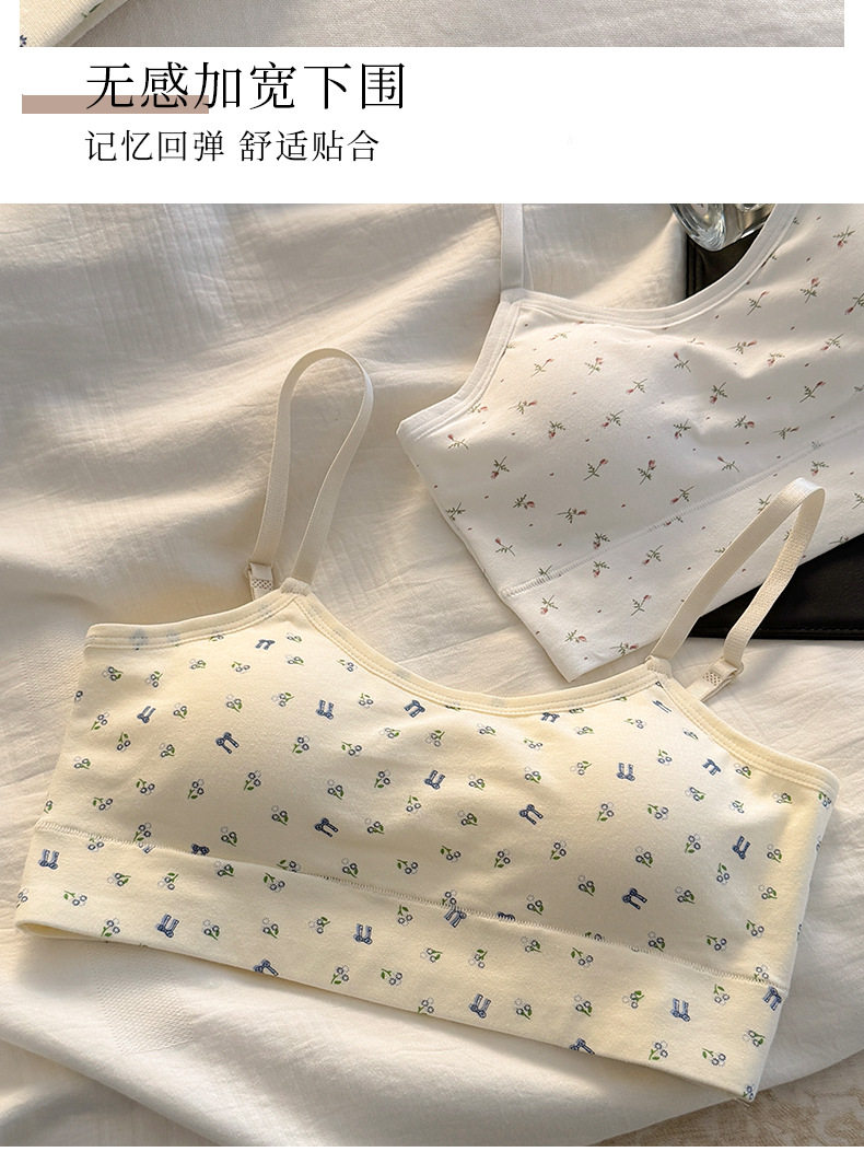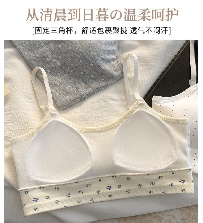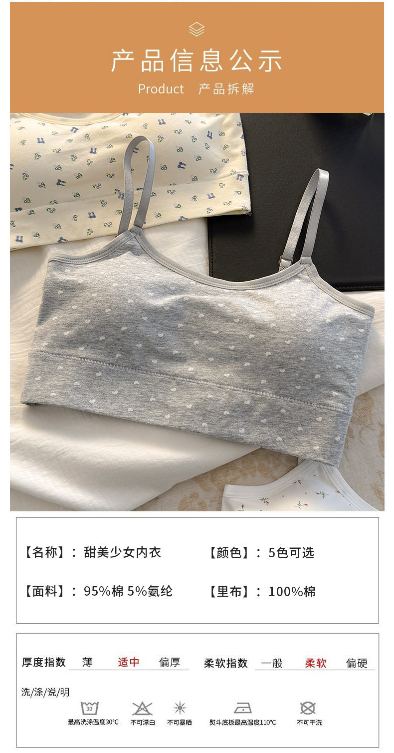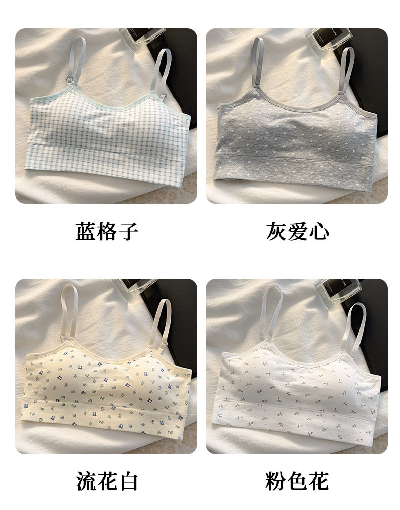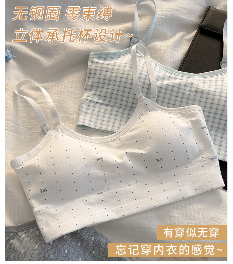 秋冬新款發育期純棉少女內衣初高中生吊帶背心透氣防震固定杯文胸