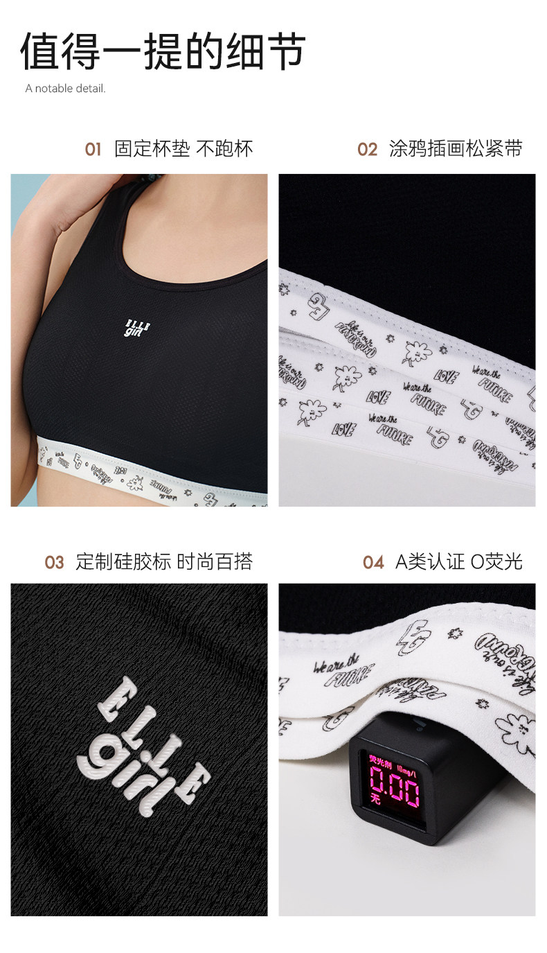 ELLE girl少女運動內衣青少年學生文胸二三階青春發育期女童背心