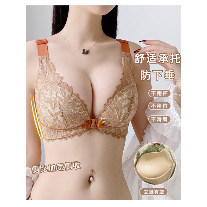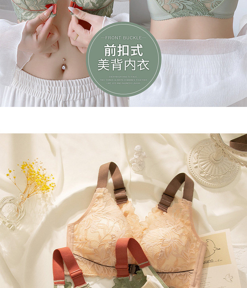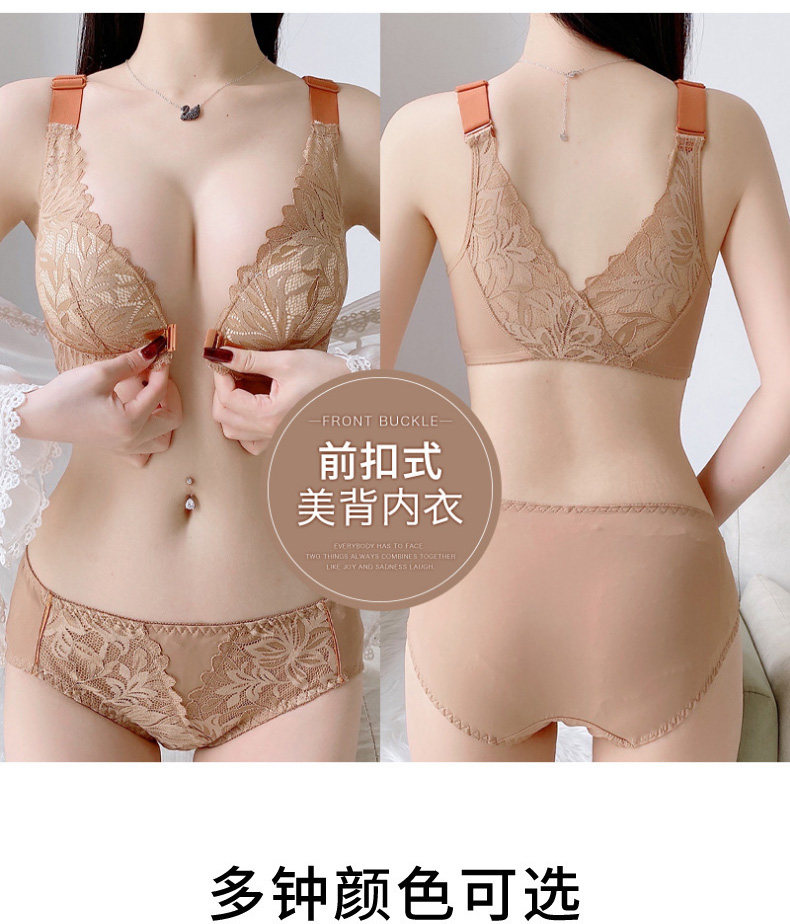前釦內衣女小胸聚攏調整型無鋼圈美背文胸罩套裝上托收副乳防下垂