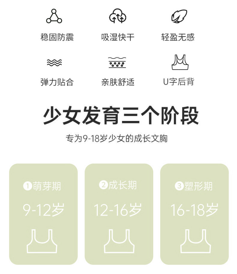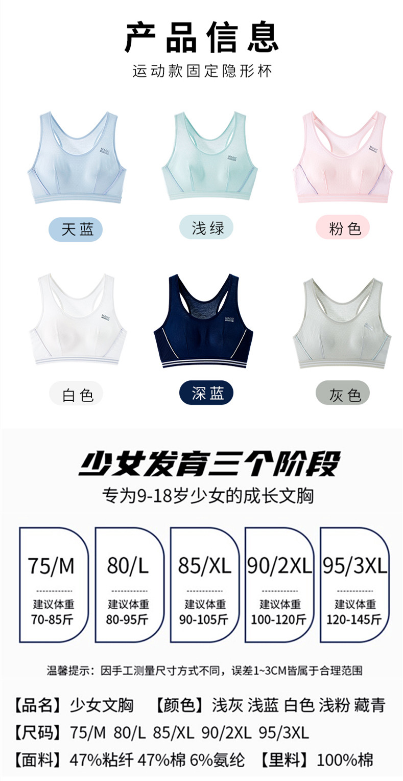 少女內衣文胸二階段初中學生發育期高中生16嵗青春期運動純棉背心