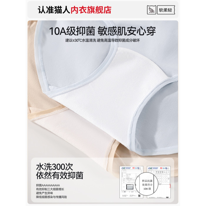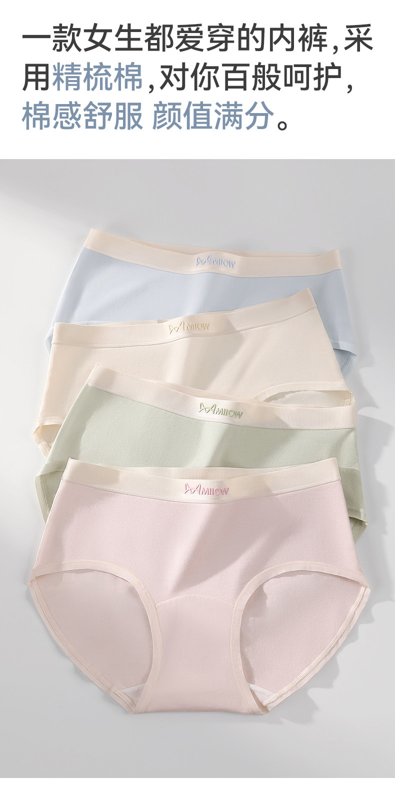 貓人內褲女純棉少女生抑菌加長襠2025新款學生中腰無痕透氣三角褲