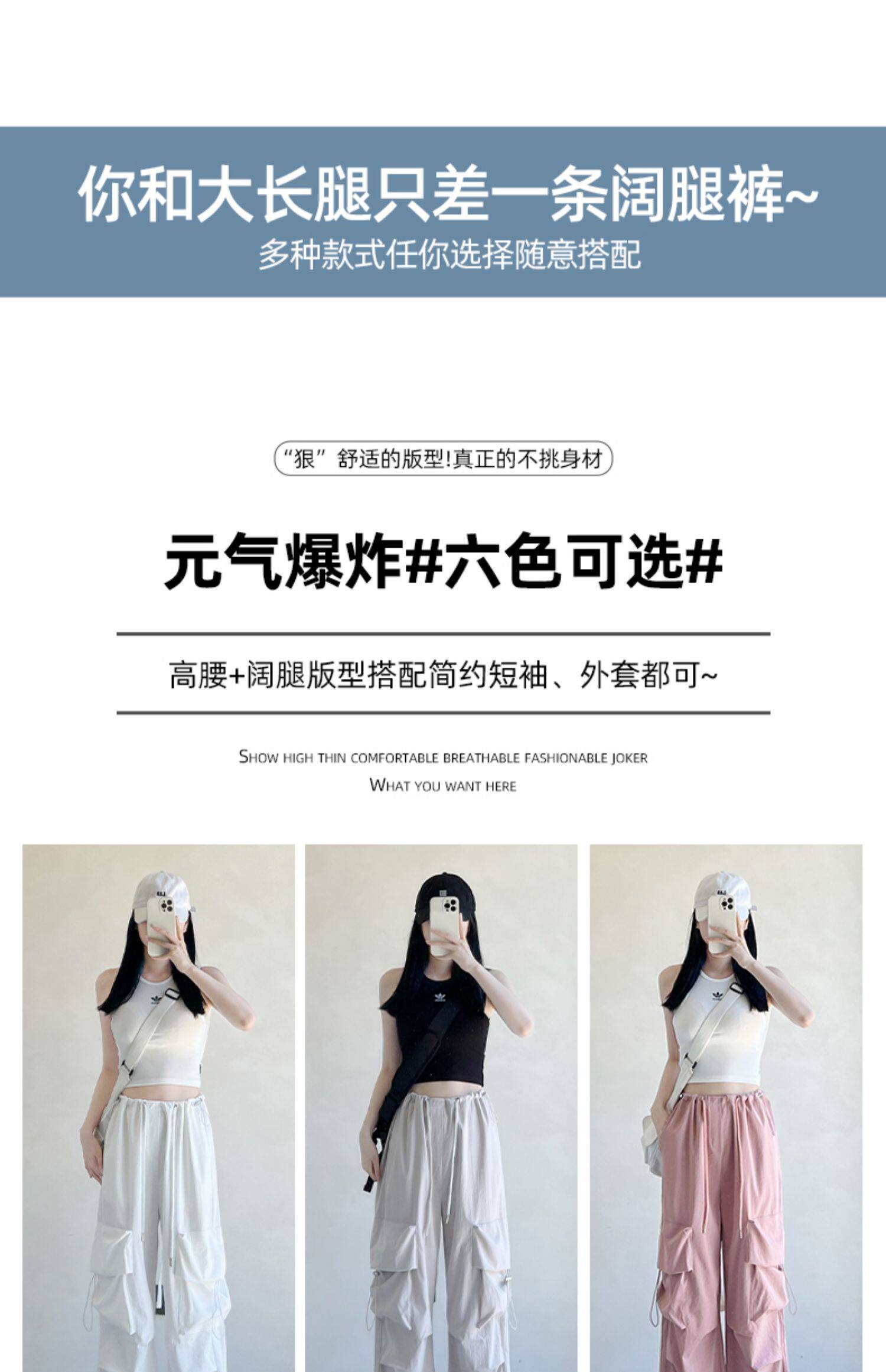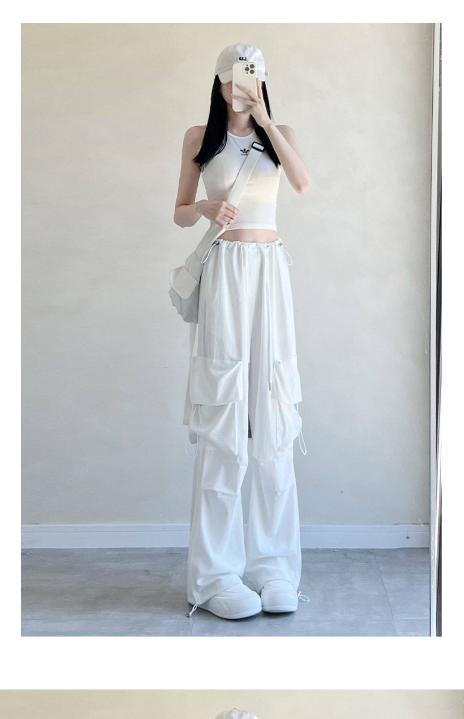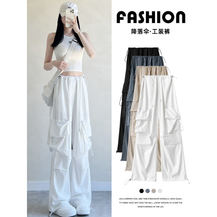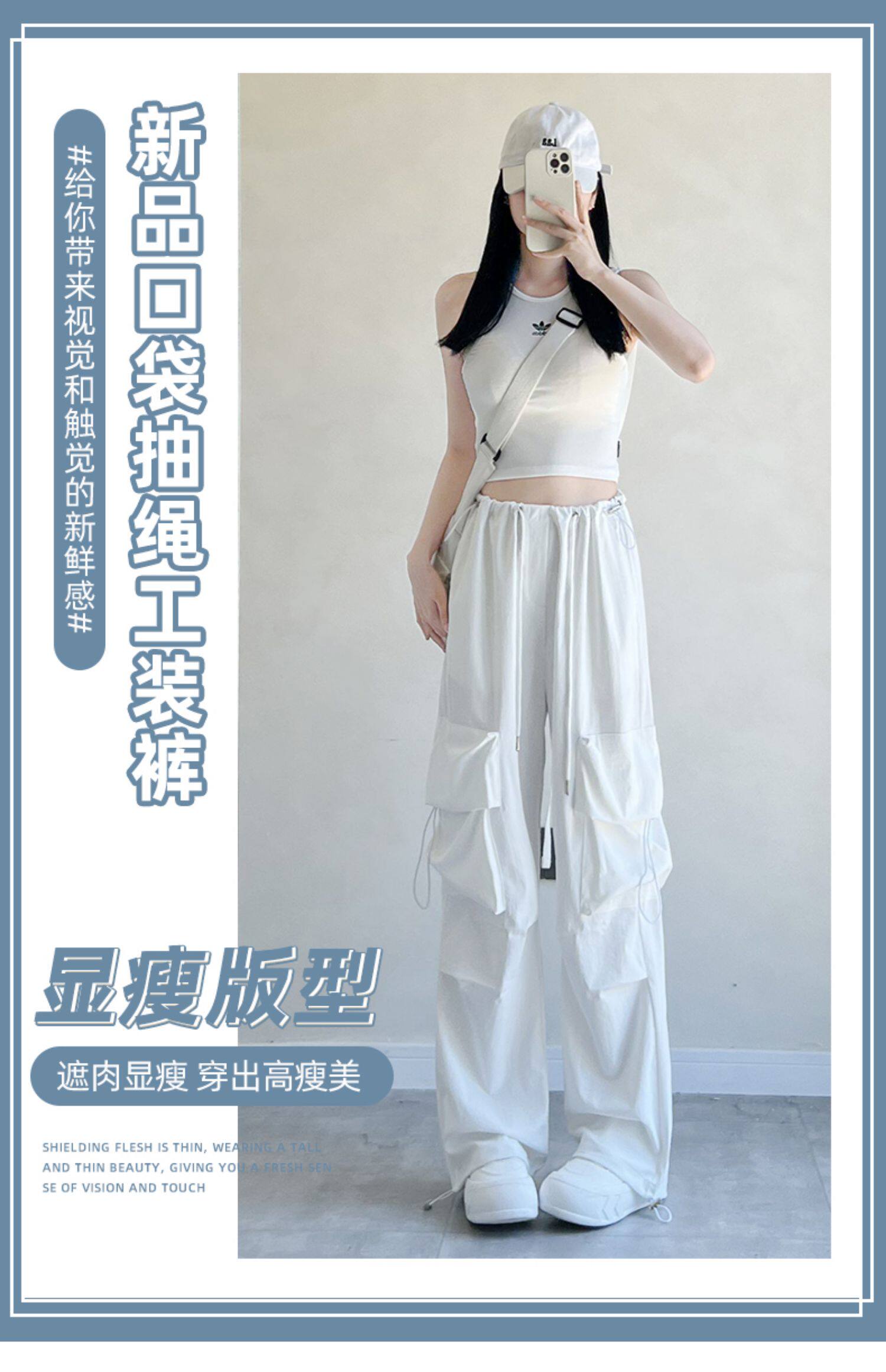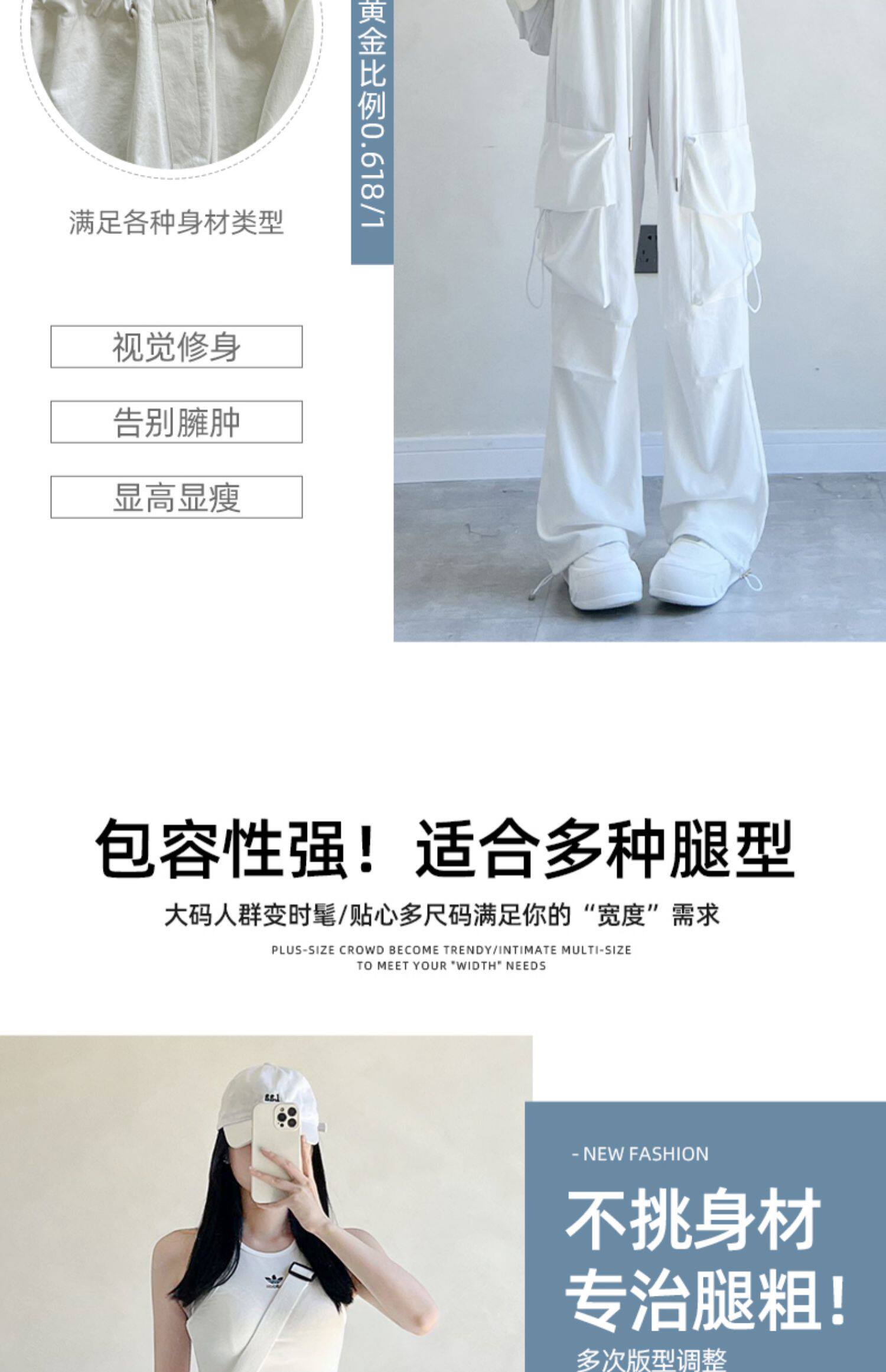 白色美式降落傘工裝褲女秋季薄款2025新款高腰濶腿寬鬆休閒運動褲
