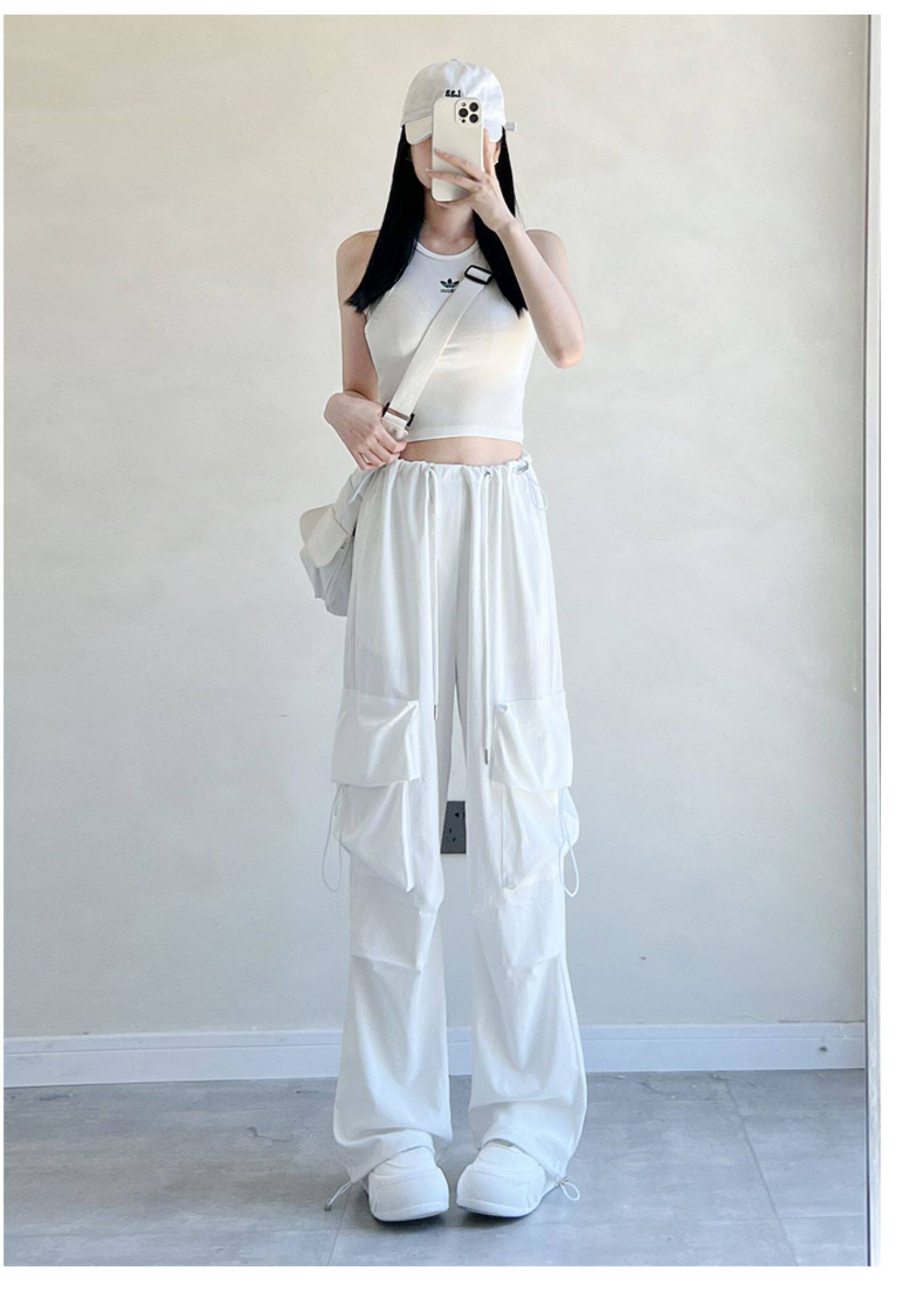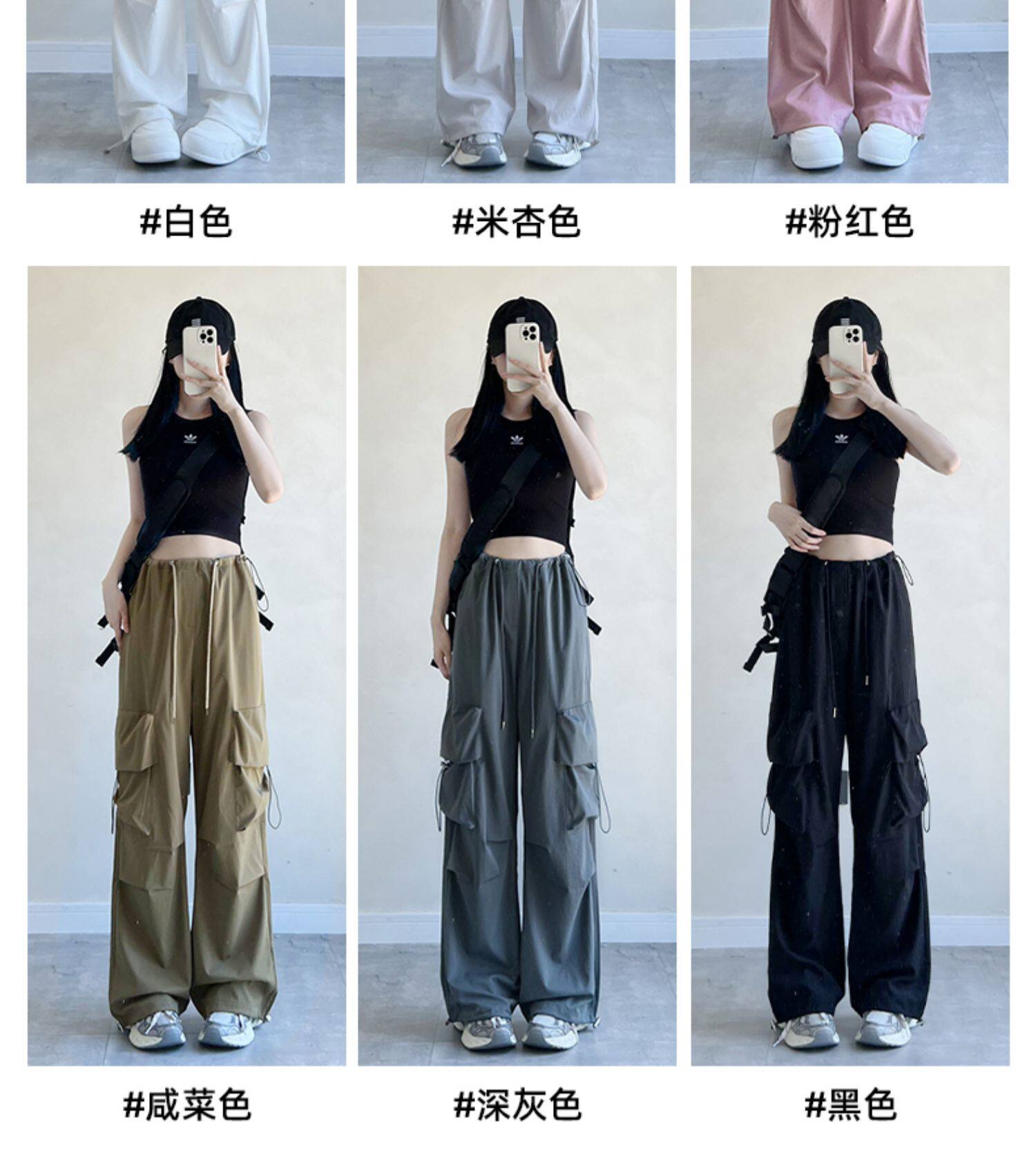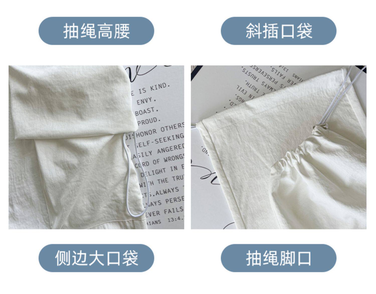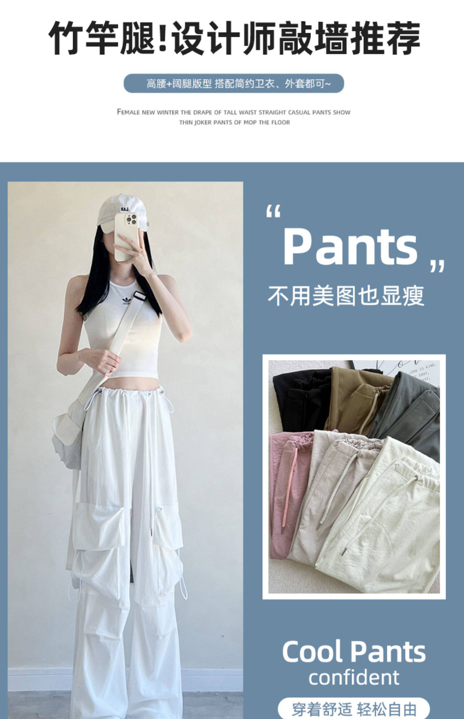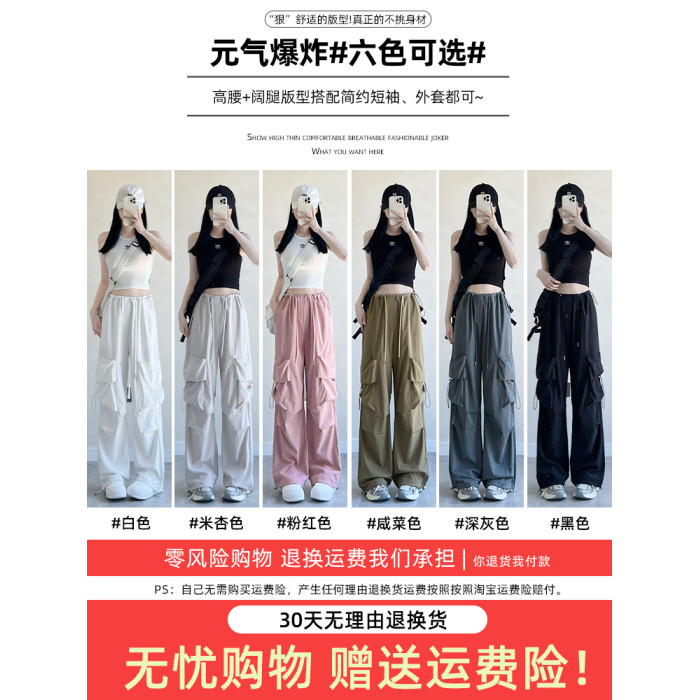 白色美式降落傘工裝褲女秋季薄款2025新款高腰濶腿寬鬆休閒運動褲