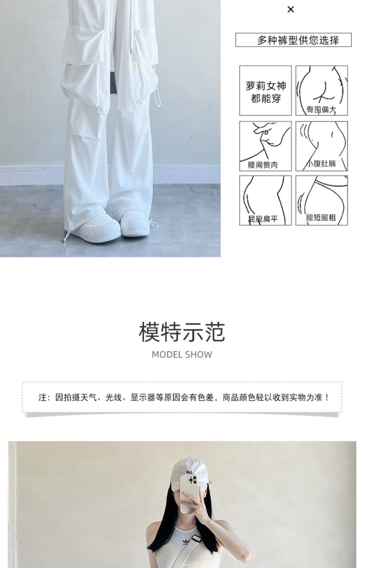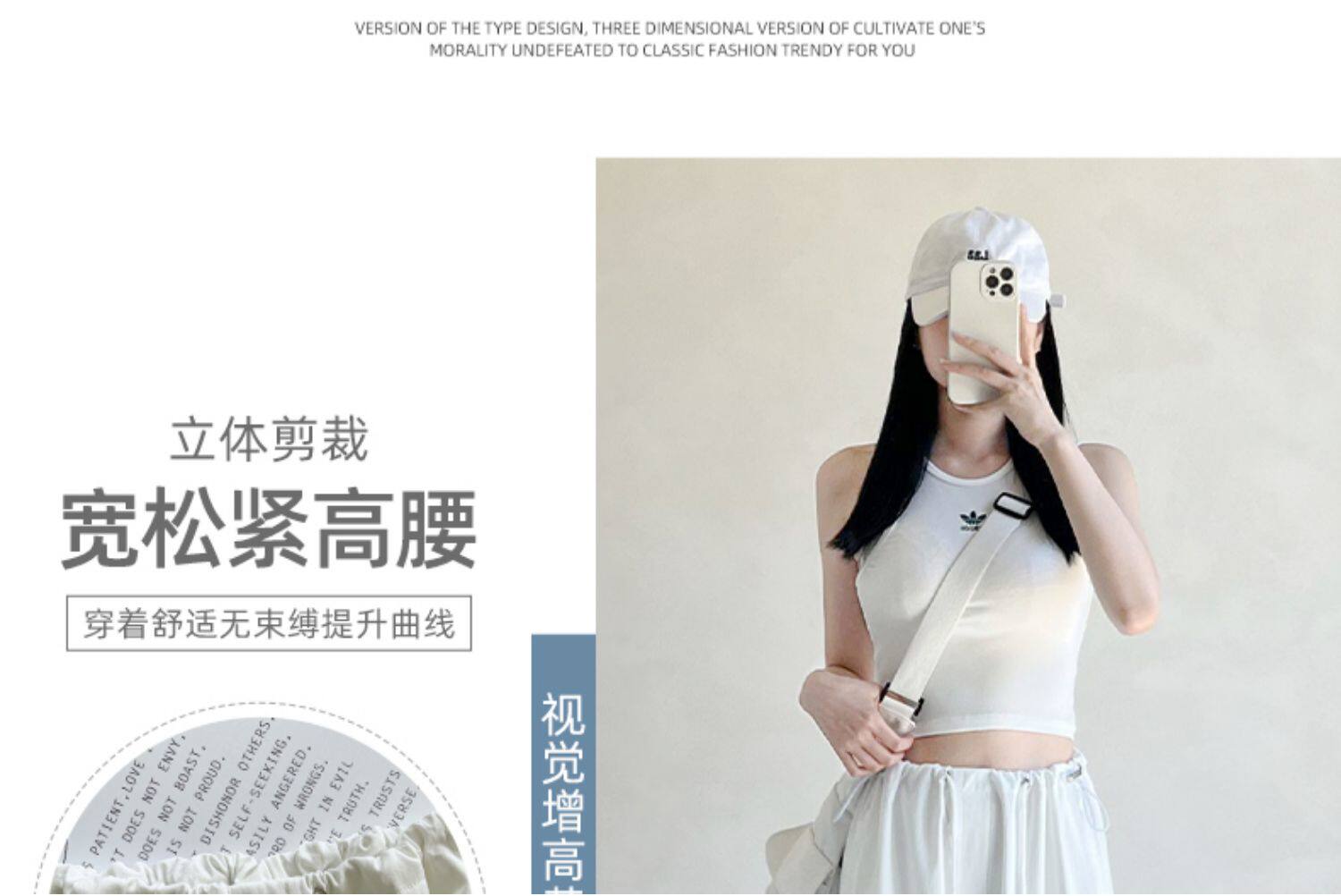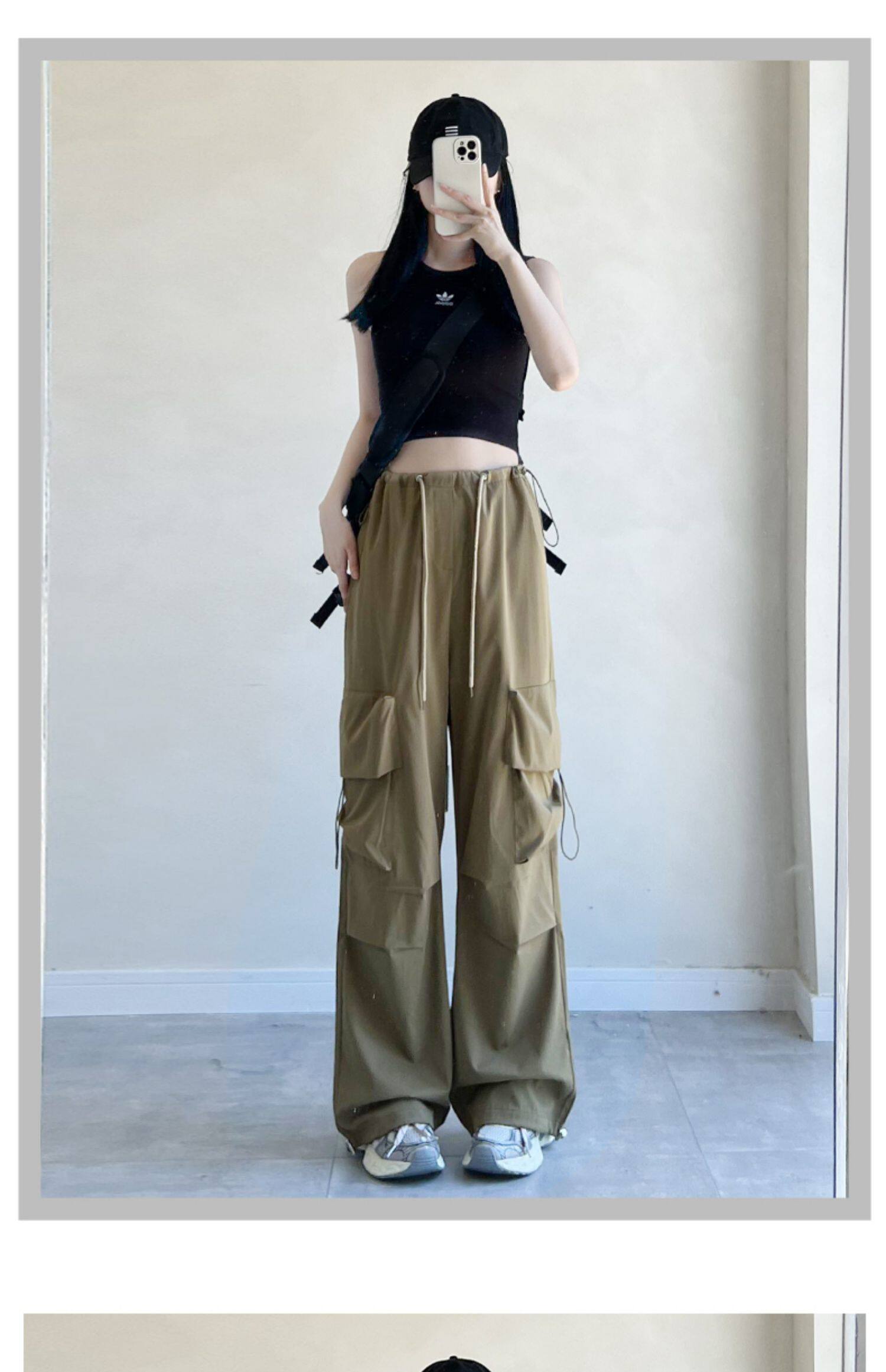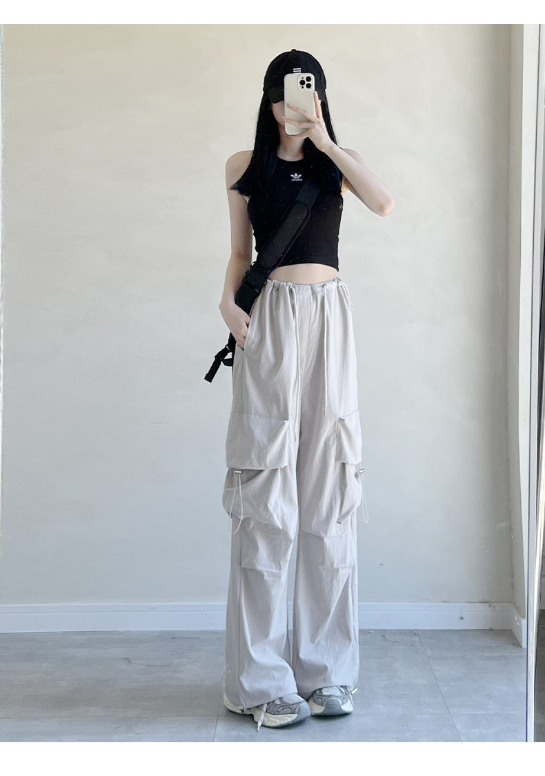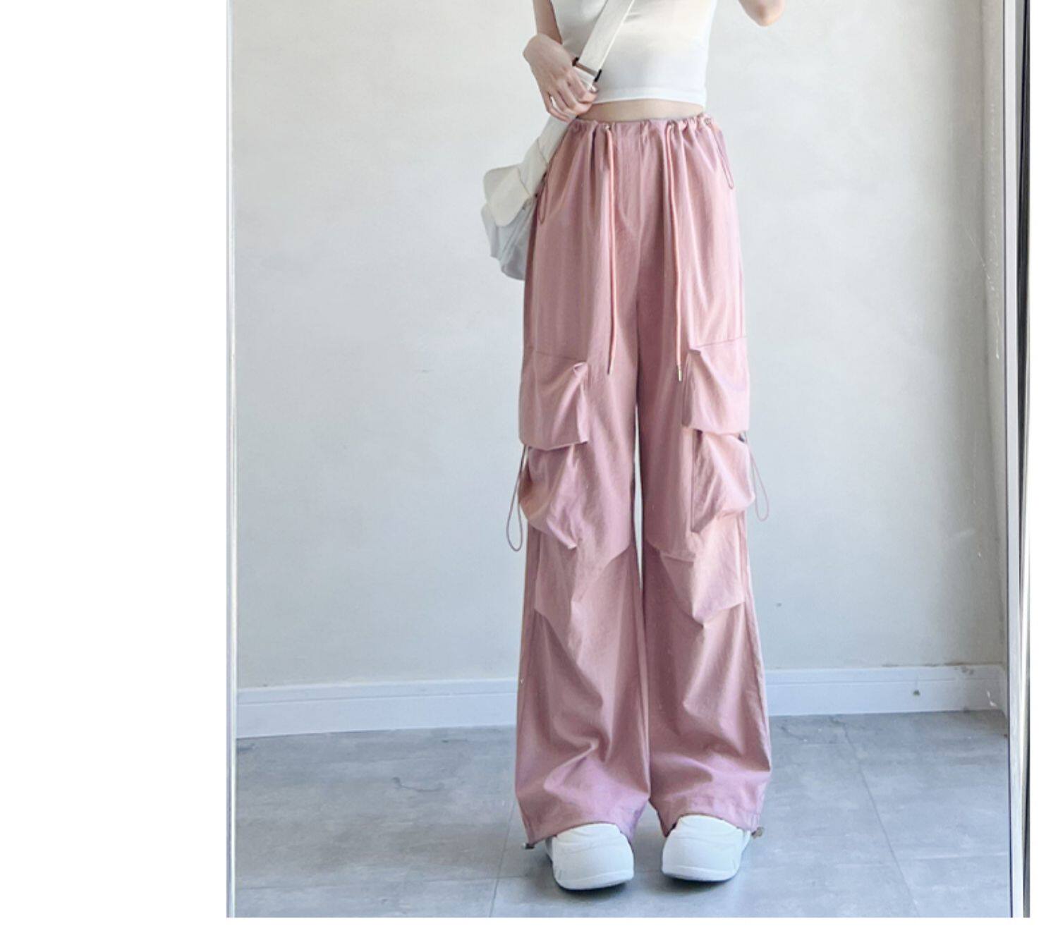 白色美式降落傘工裝褲女秋季薄款2025新款高腰濶腿寬鬆休閒運動褲