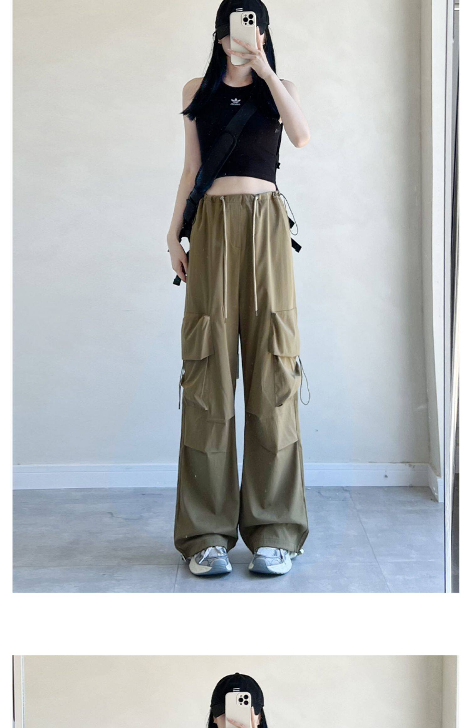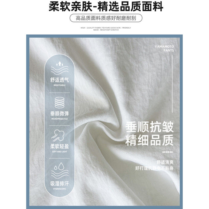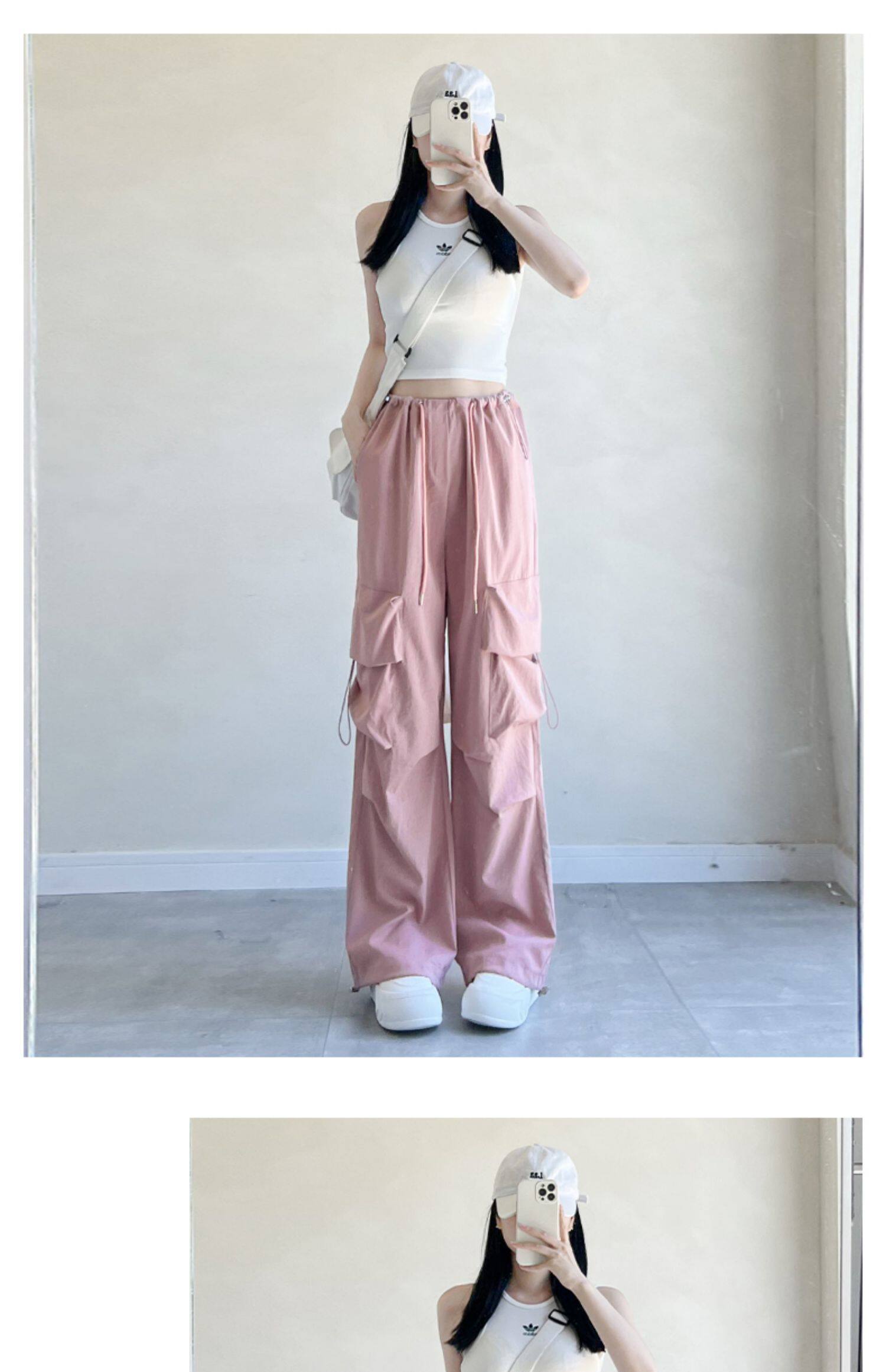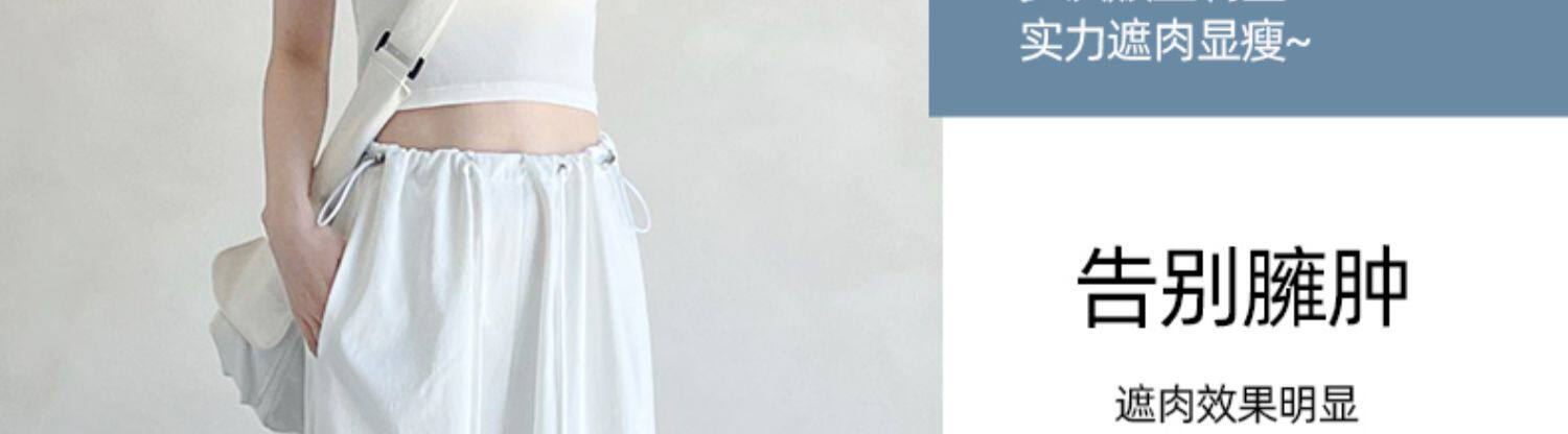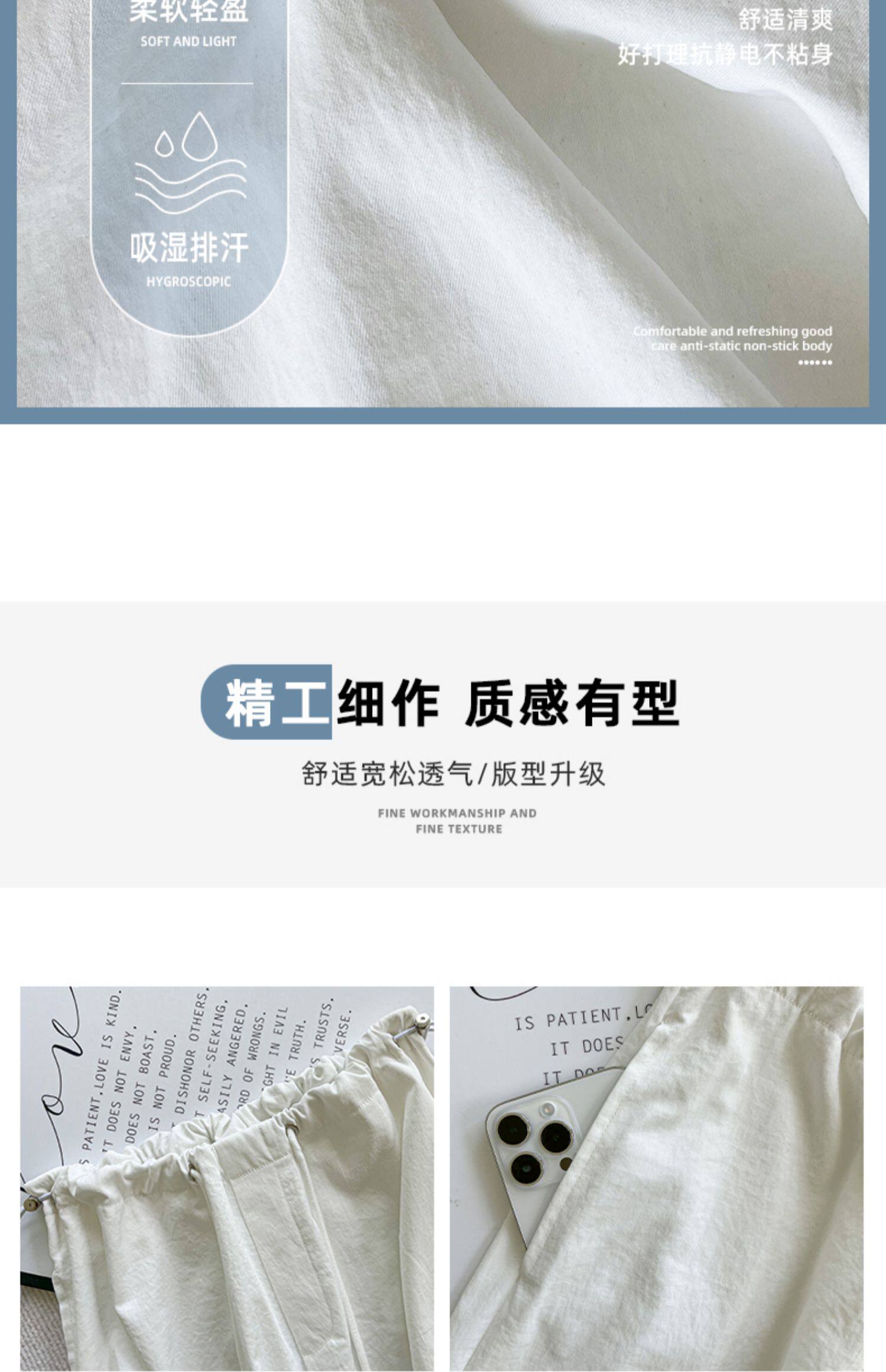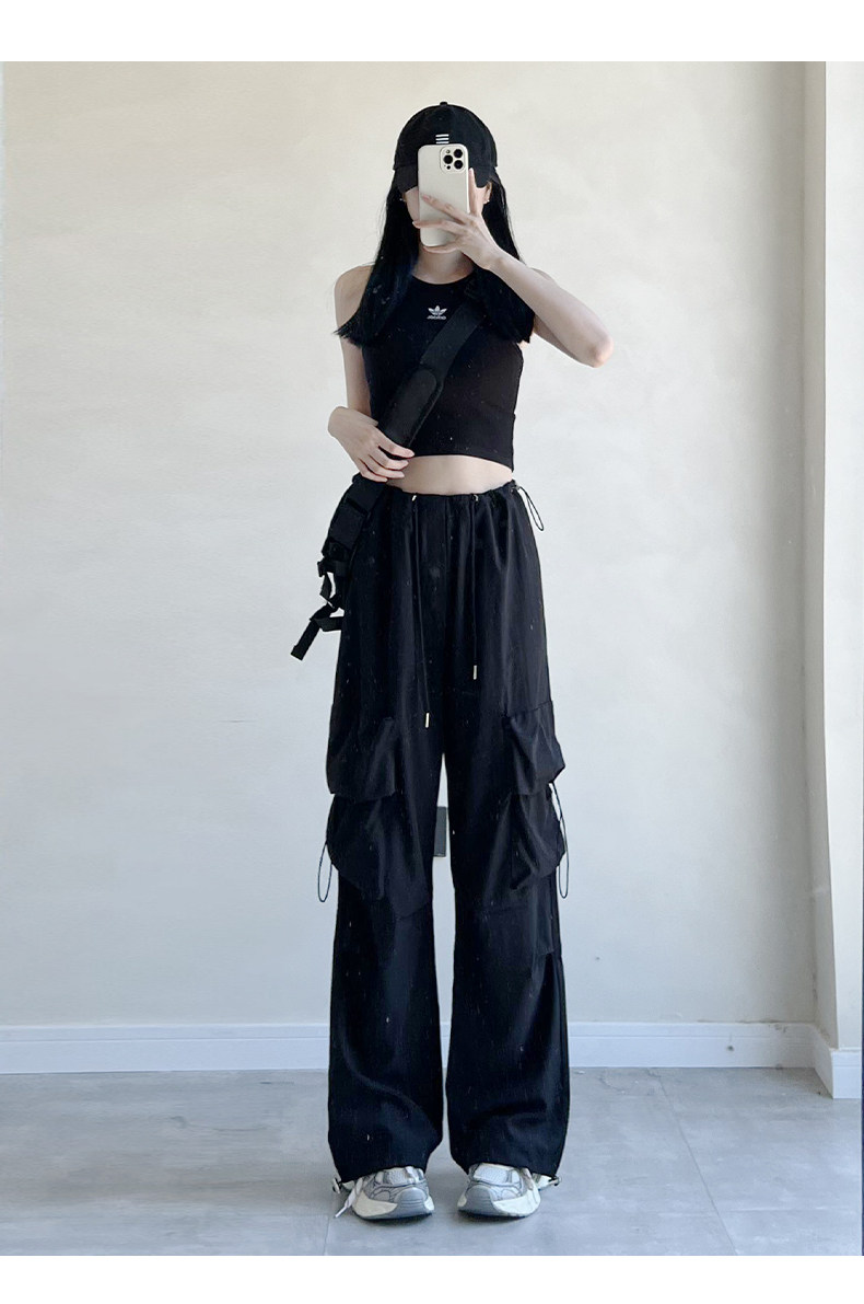 白色美式降落傘工裝褲女秋季薄款2025新款高腰濶腿寬鬆休閒運動褲