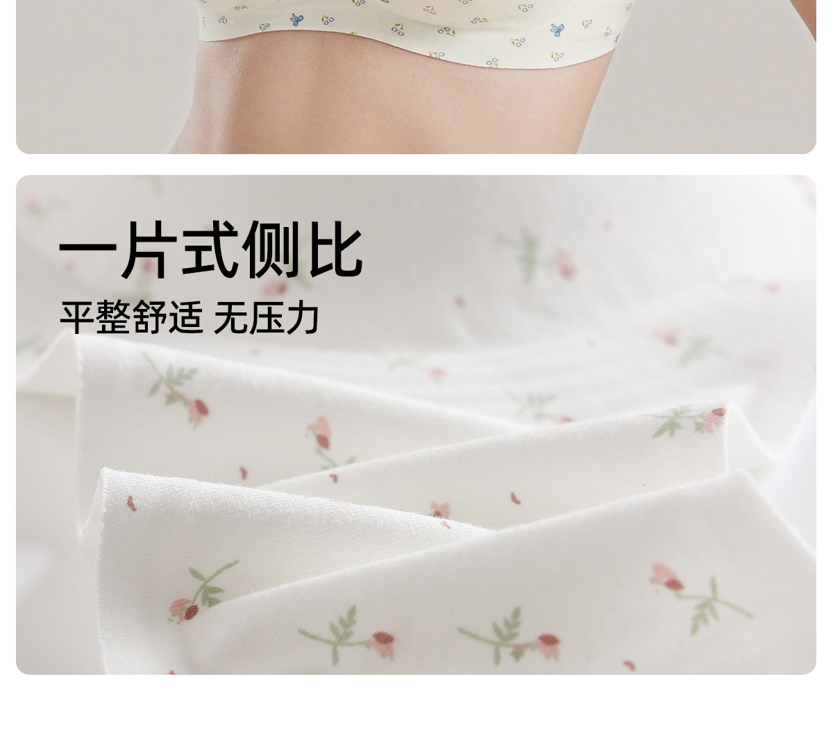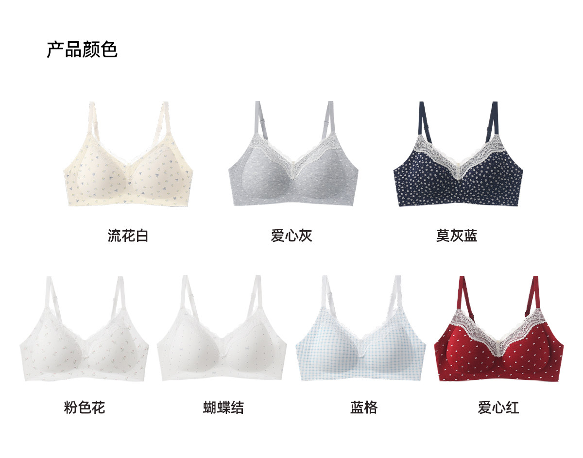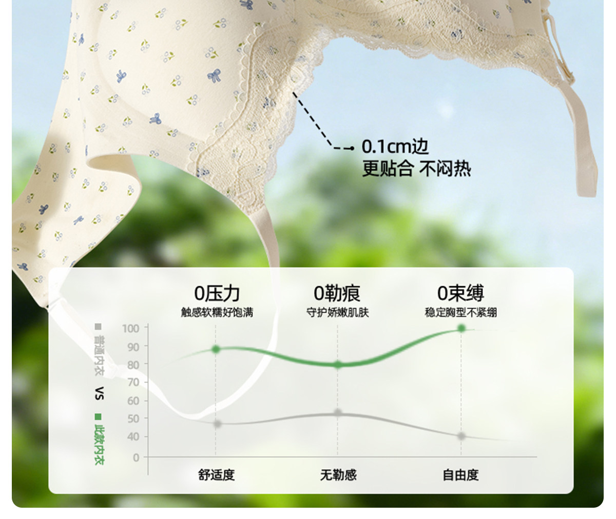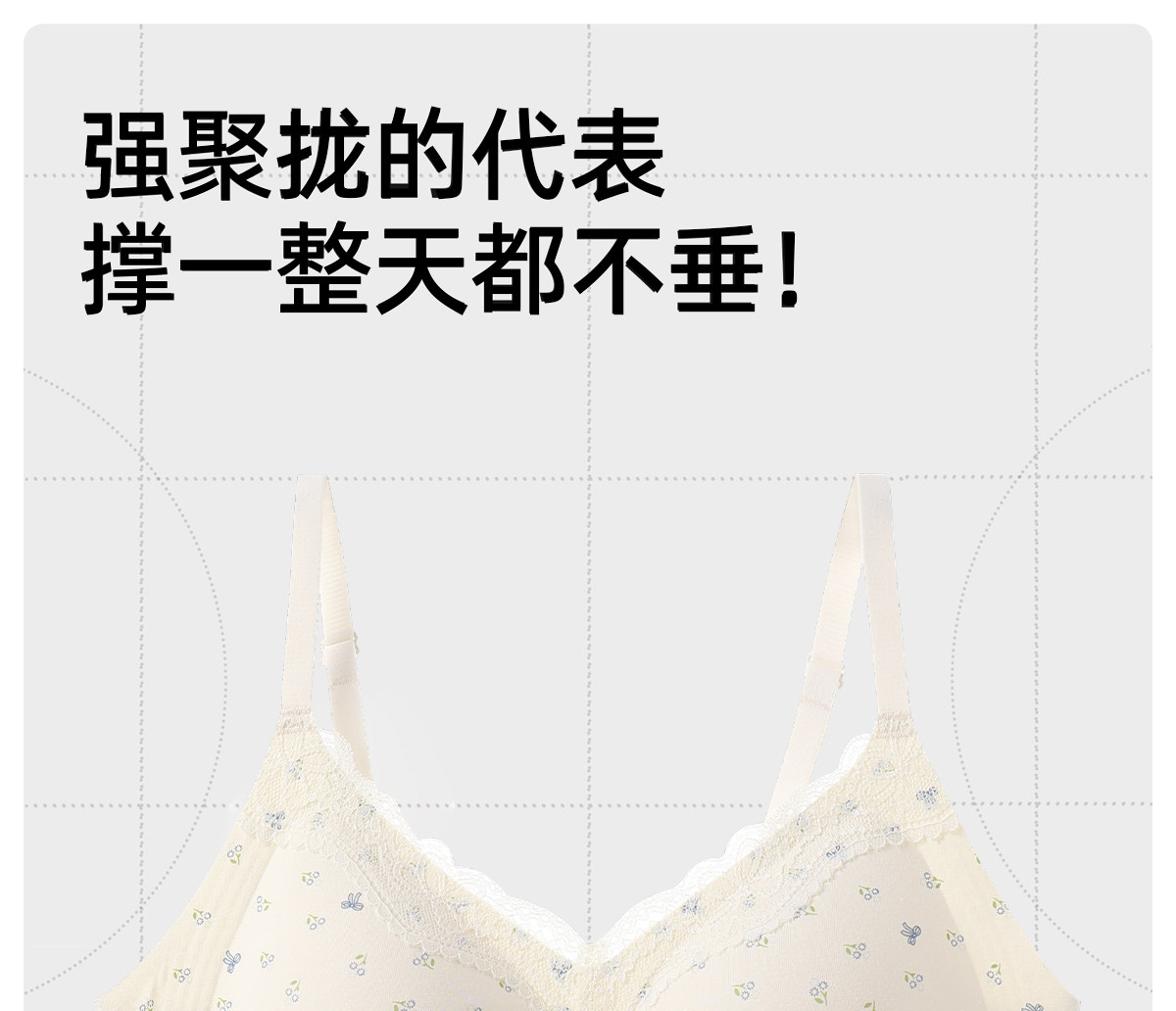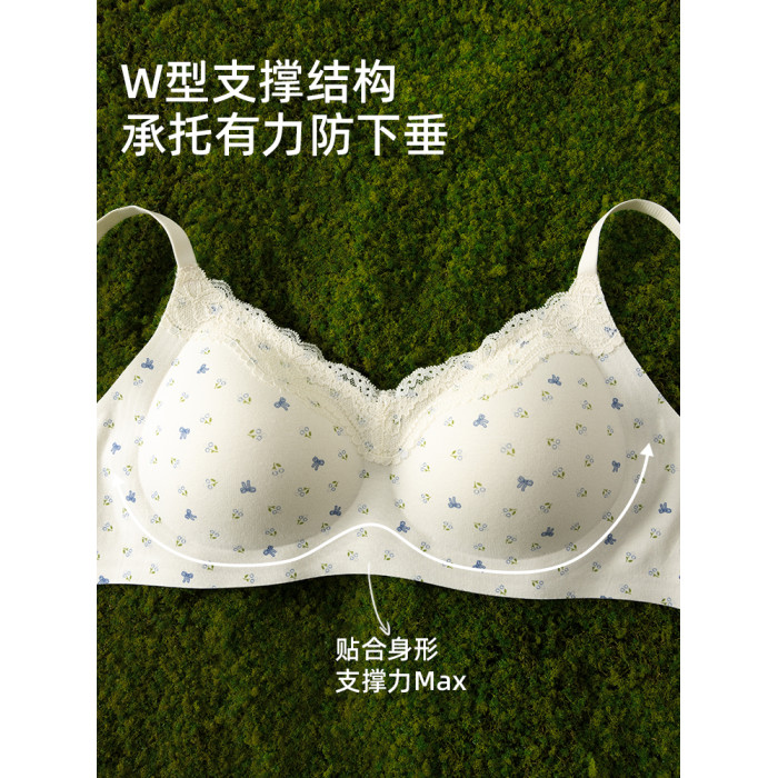 貓人純棉少女內衣高中大學生小胸聚攏收副乳碎花蕾絲無痕裸感文胸