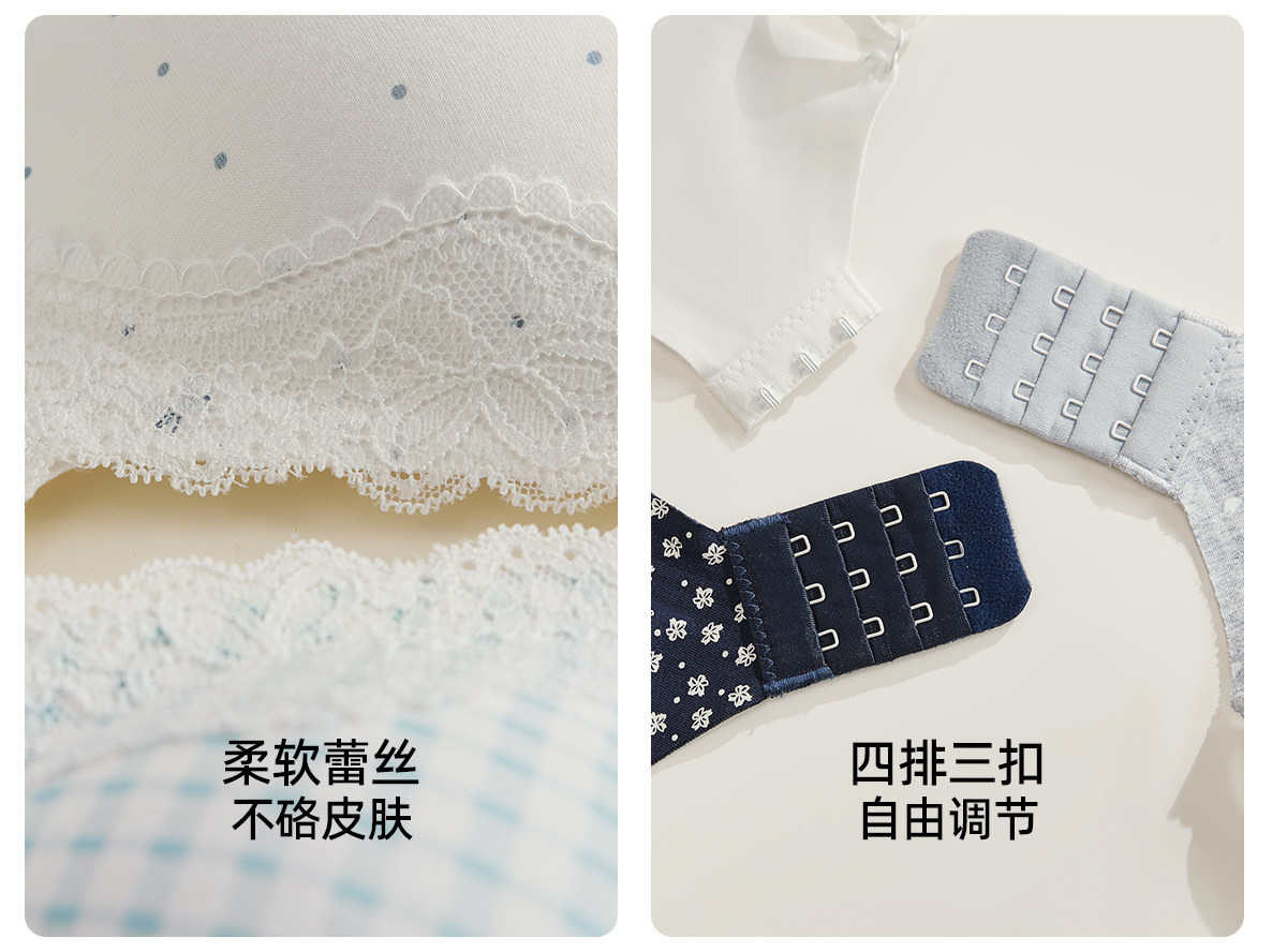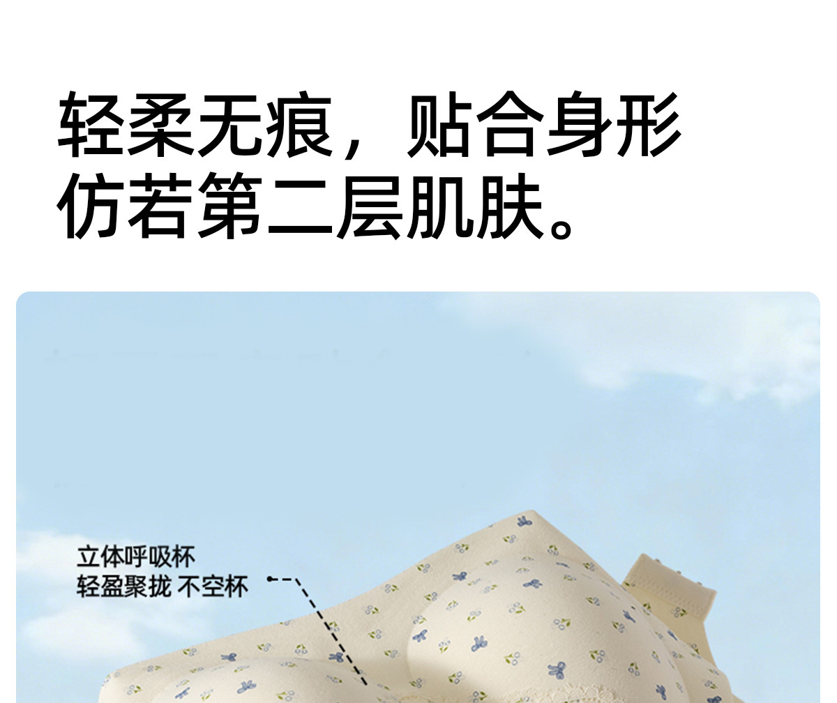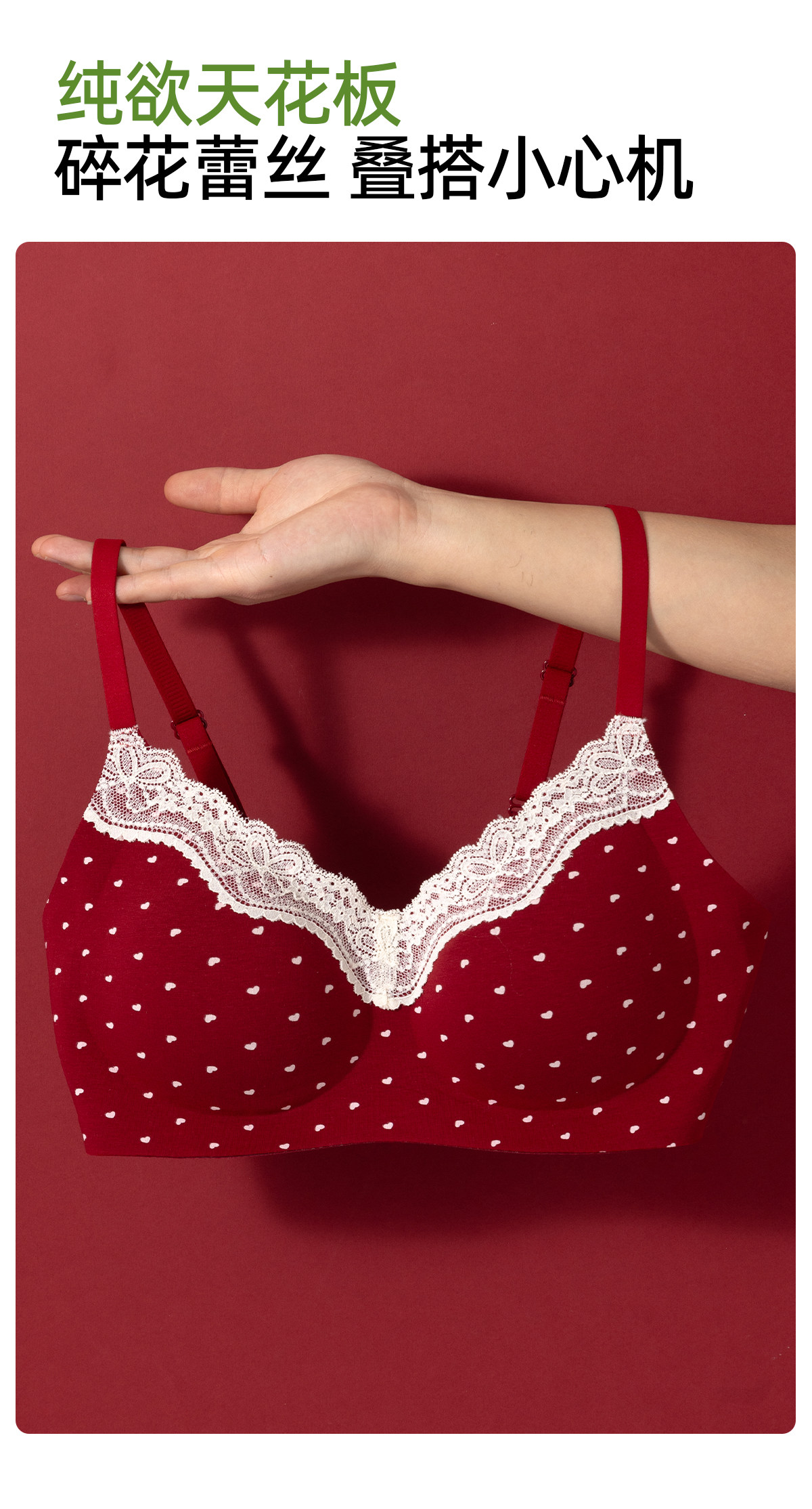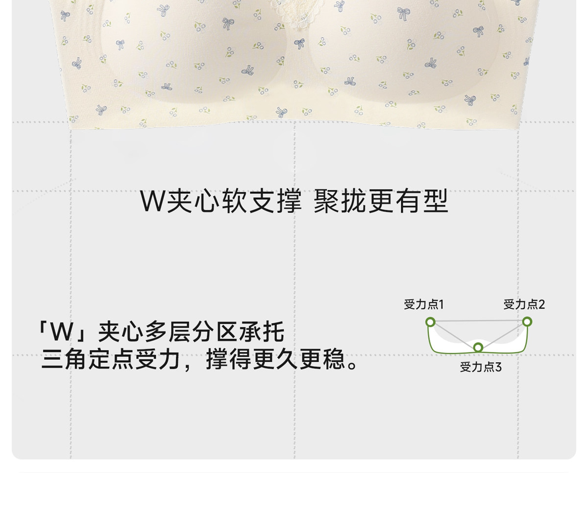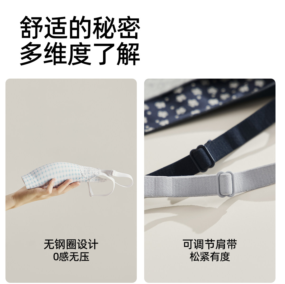 貓人純棉少女內衣高中大學生小胸聚攏收副乳碎花蕾絲無痕裸感文胸