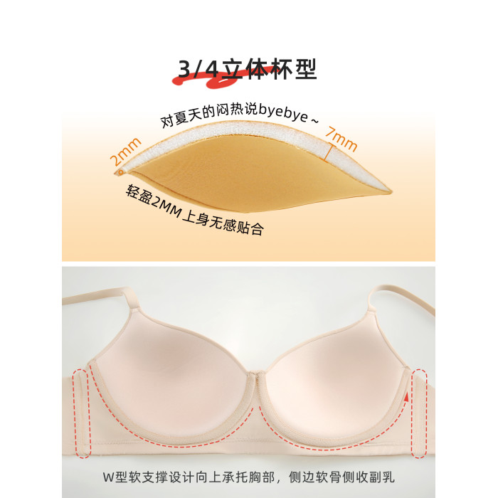 親膚日記小胸聚攏內衣女夏季薄款無鋼圈不空杯防走光無痕隱形文胸