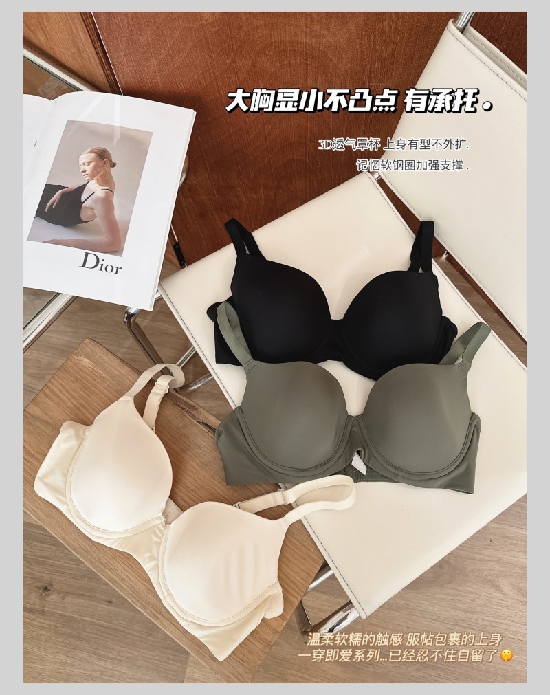 無痕內衣女大胸顯小聚攏收副乳夏季薄款防下垂全罩杯大碼光面文胸
