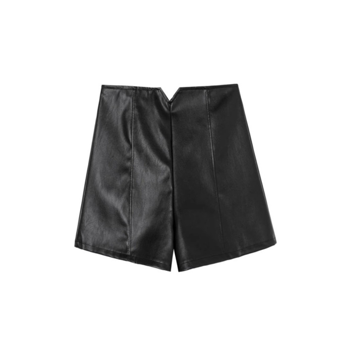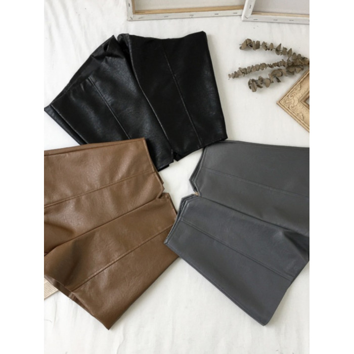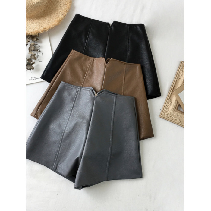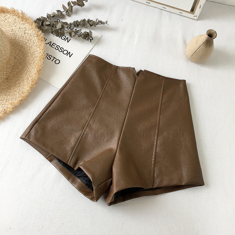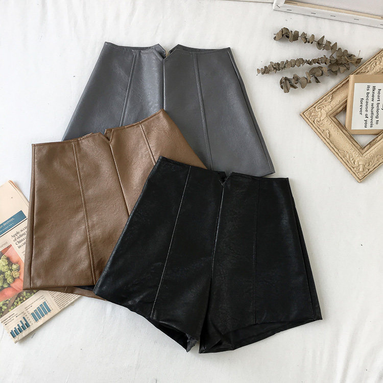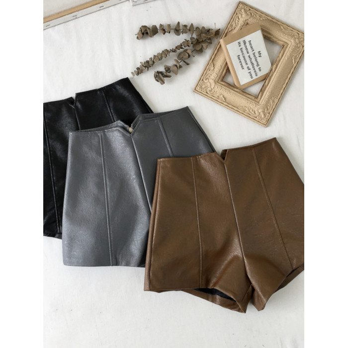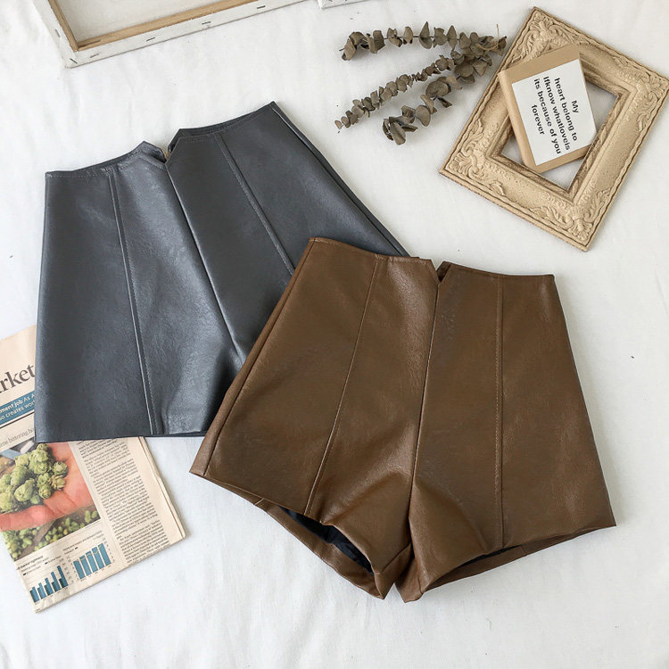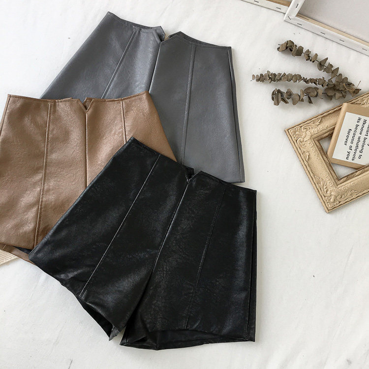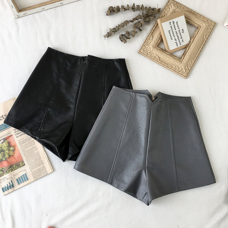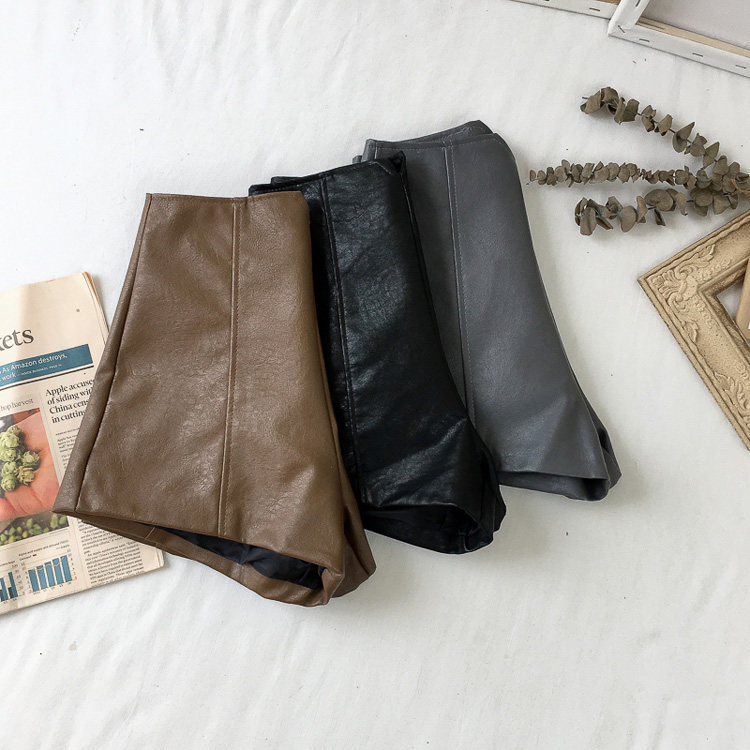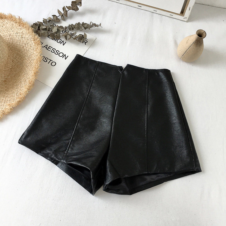 pu皮短褲女秋冬季外穿小個子2023新款黑色高腰顯瘦濶腿褲打底靴褲
