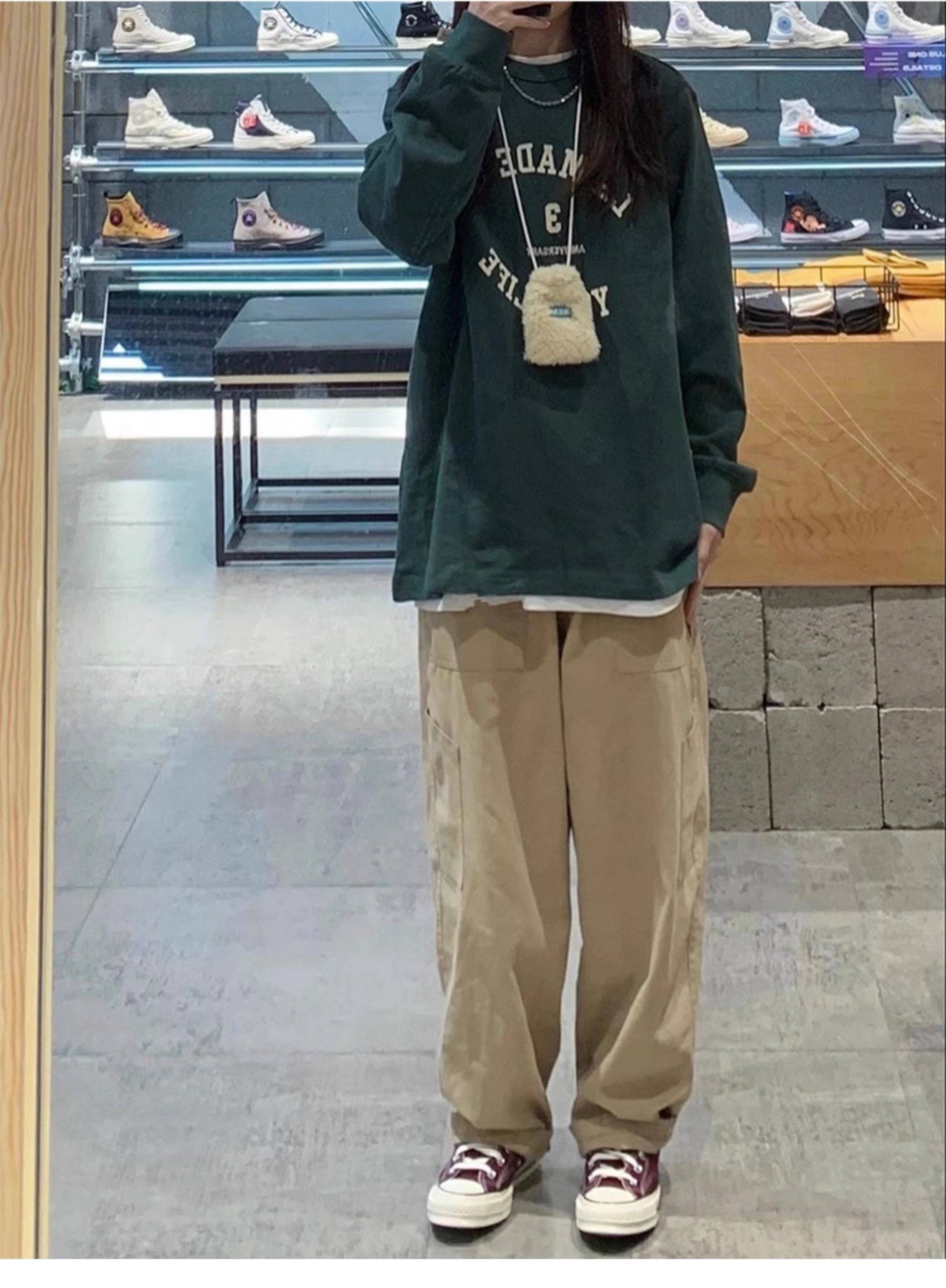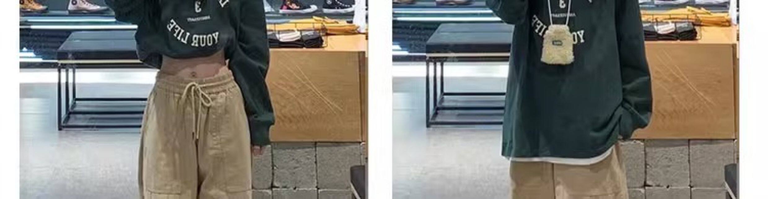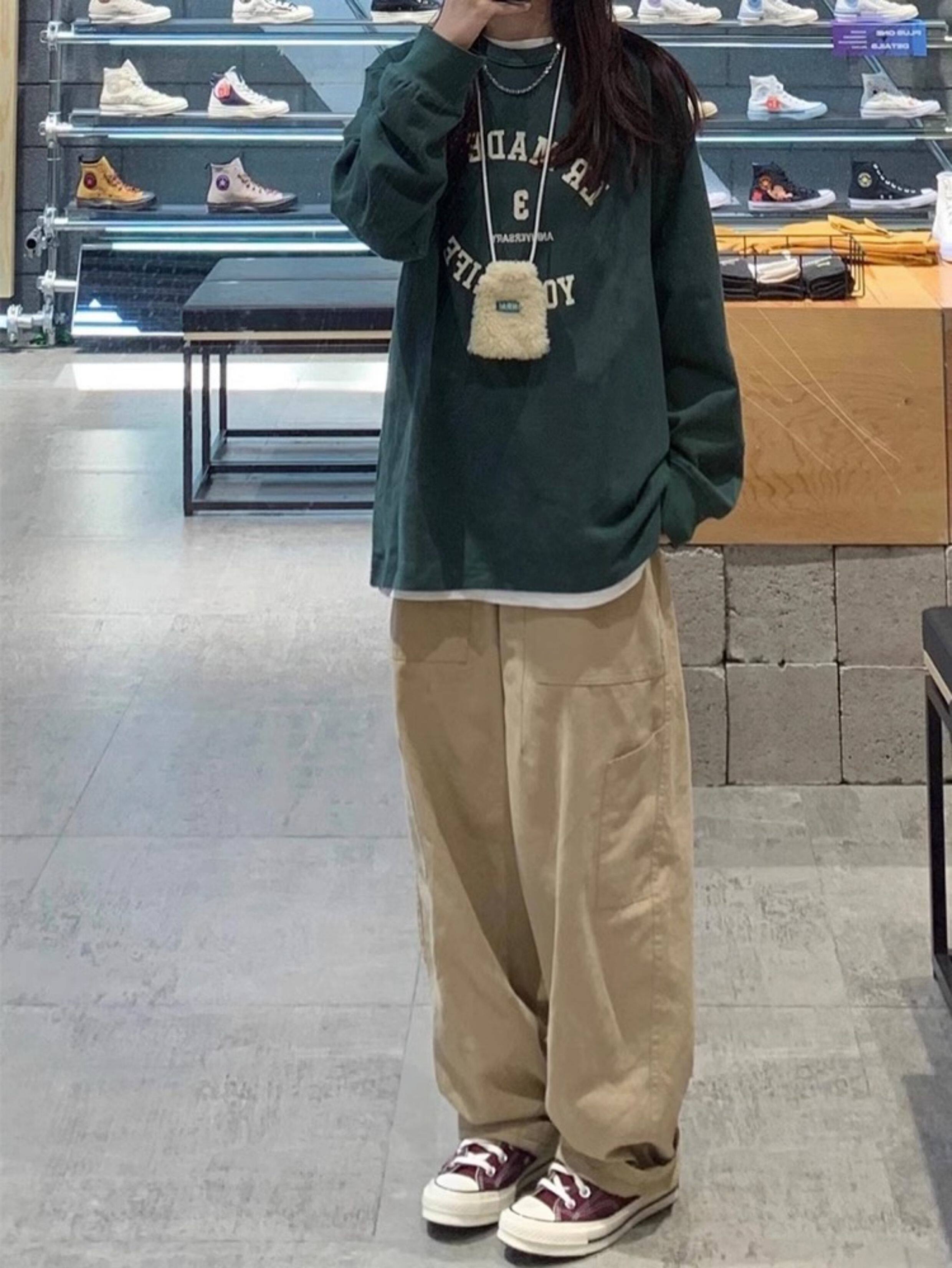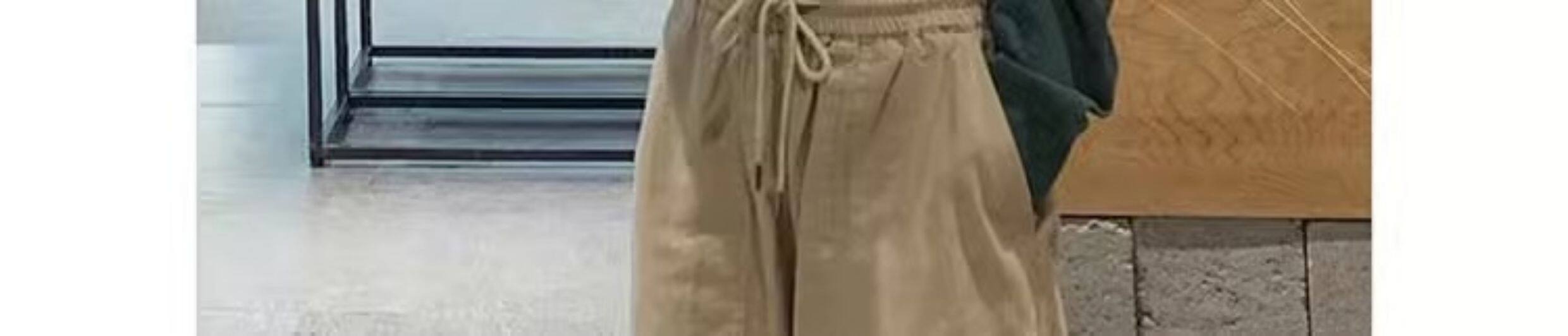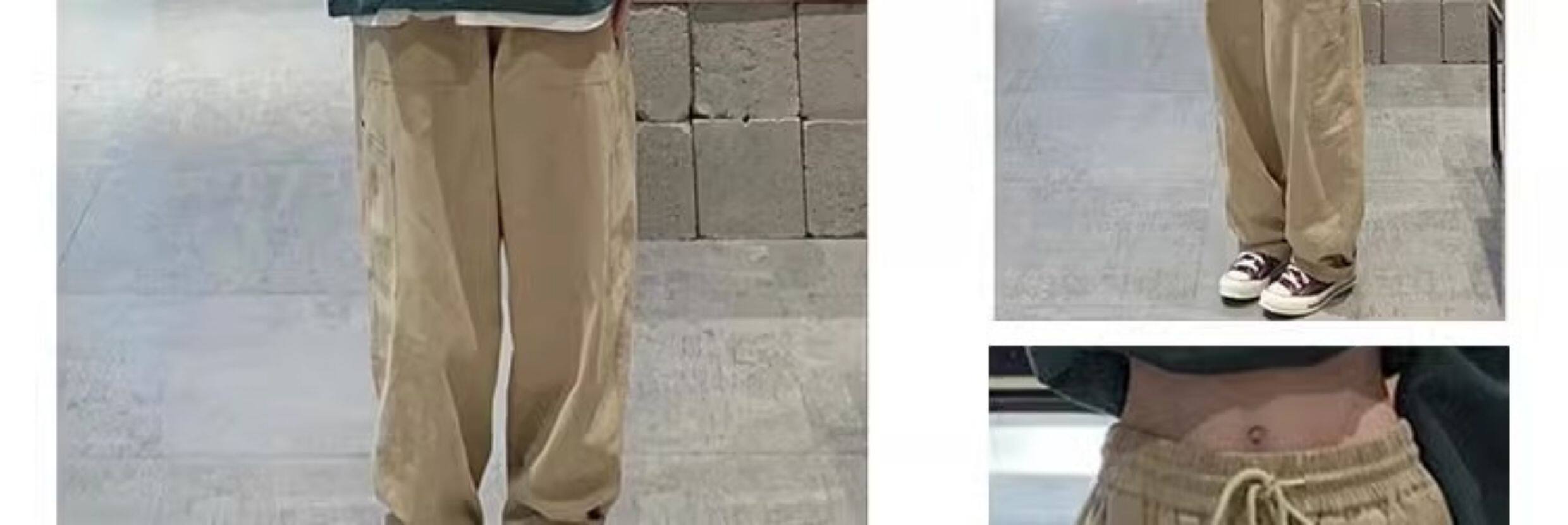 卡其色褲子女日系工裝休閒褲高腰直筒大碼胖mm梨形身材寬鬆濶腿褲
