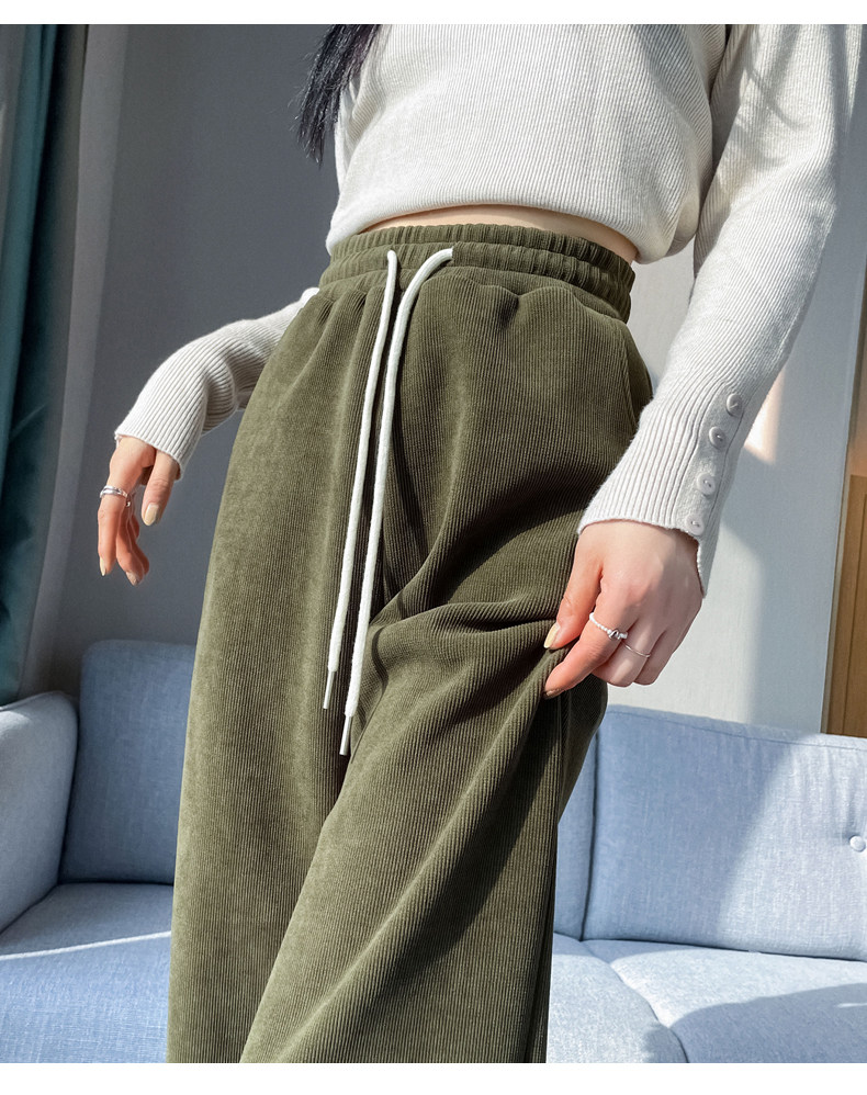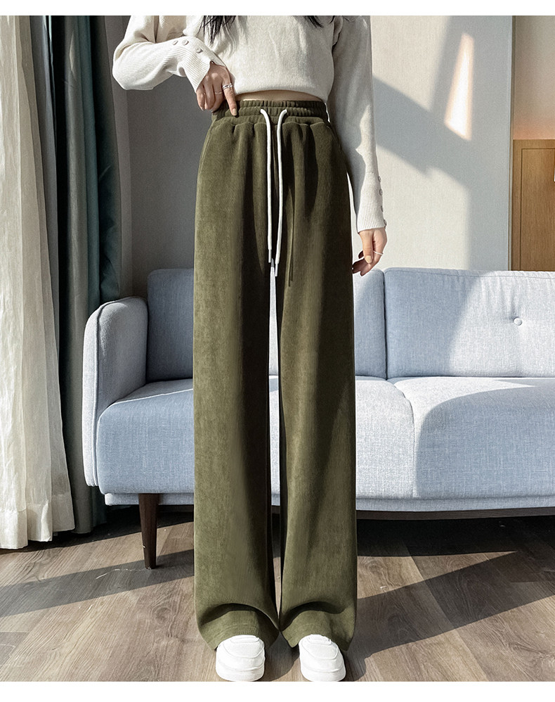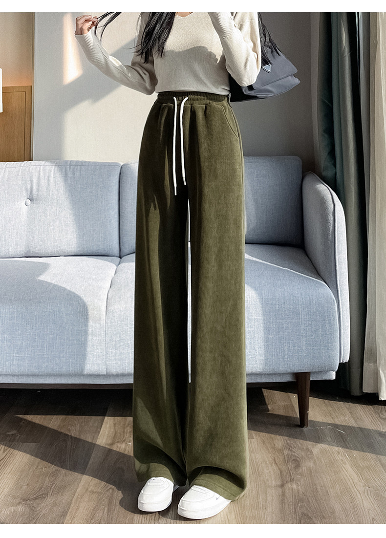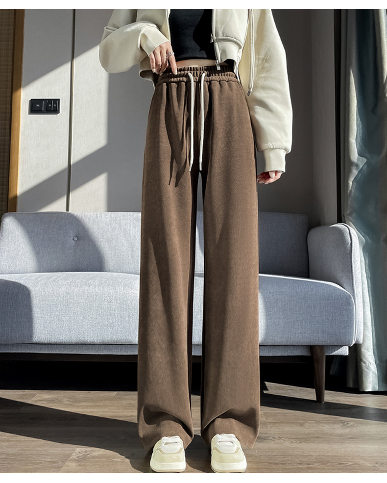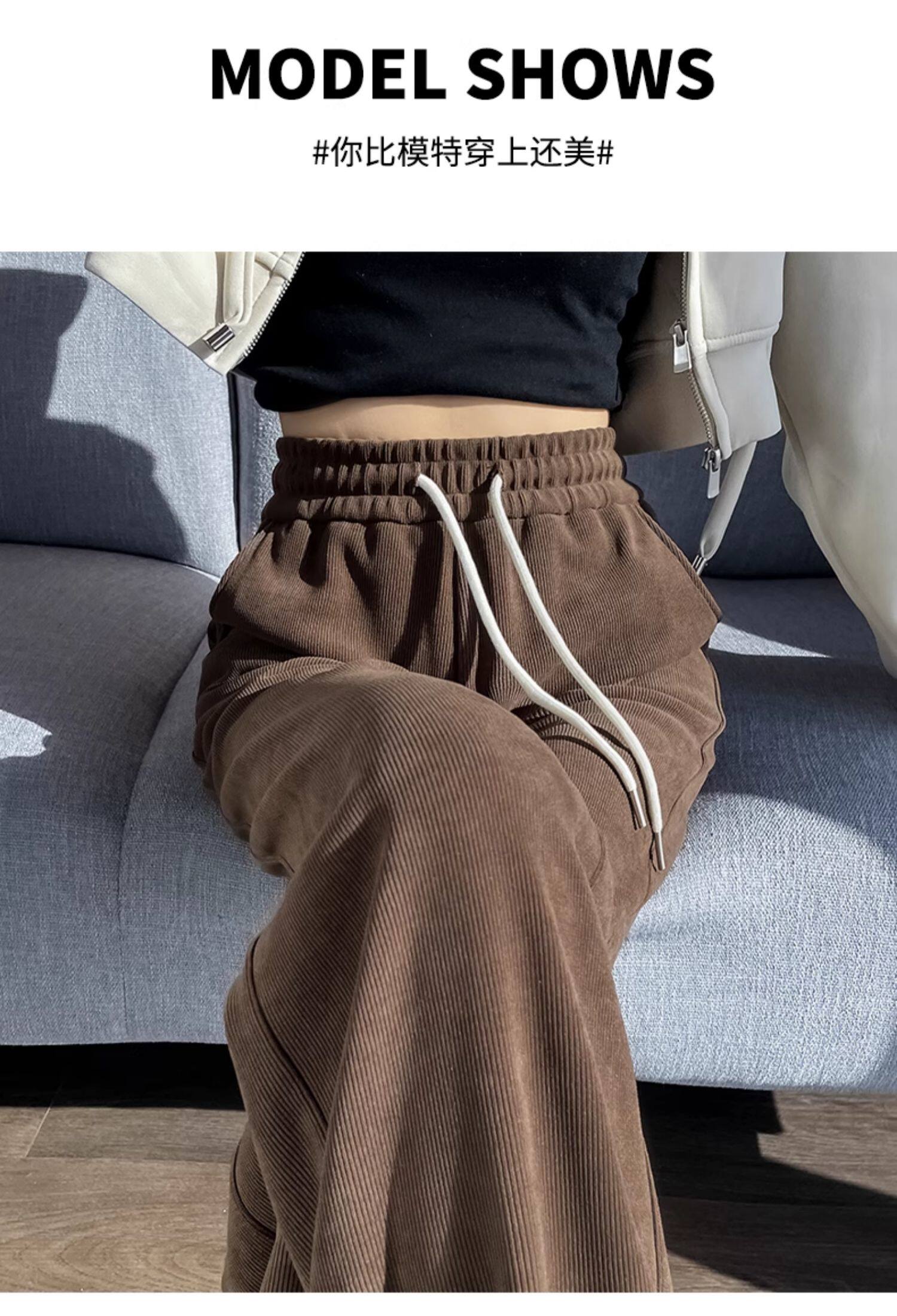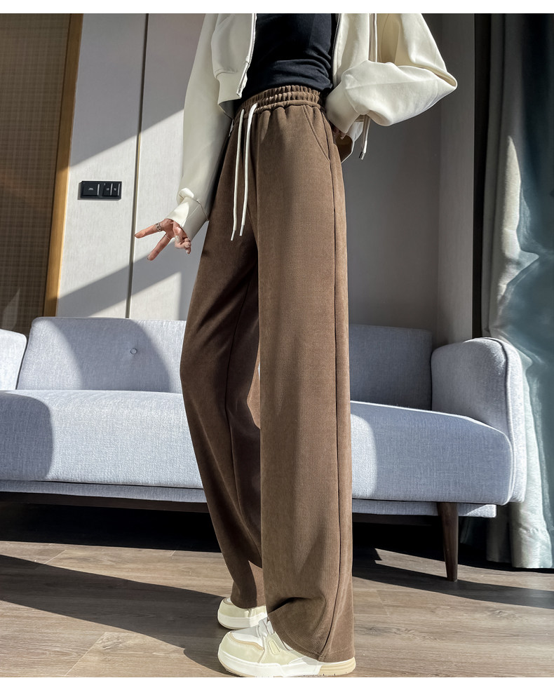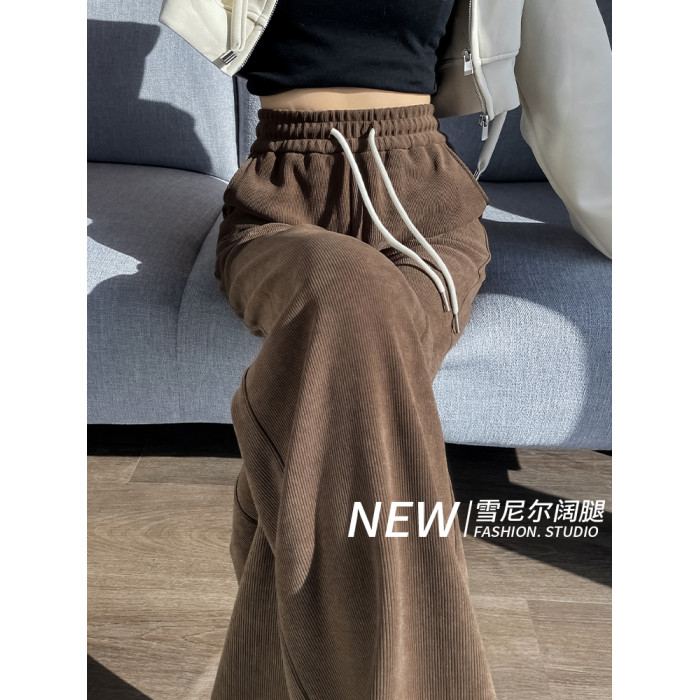 雪尼爾濶腿褲女春秋款高腰寬鬆休閒咖色燈芯絨褲子女2026新款爆款