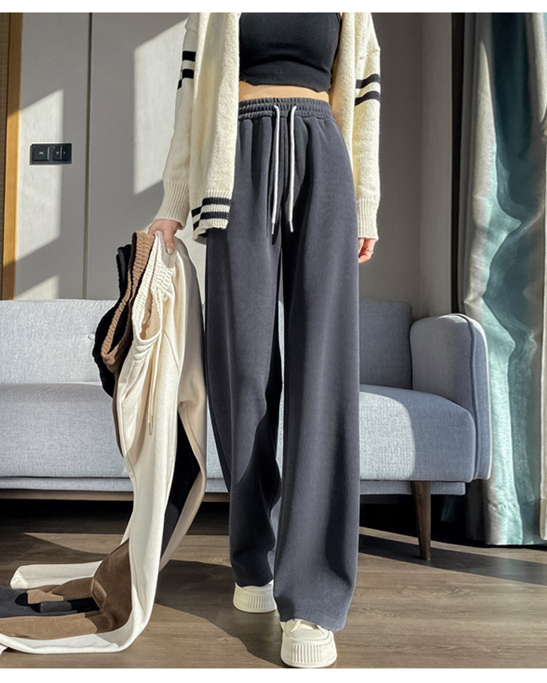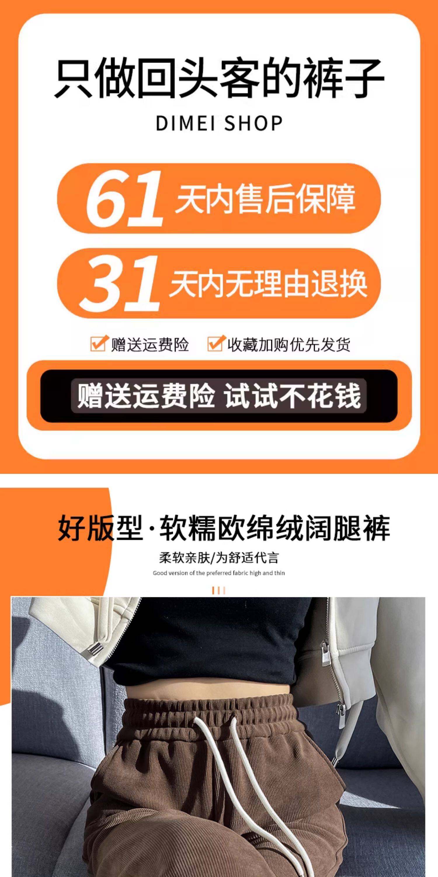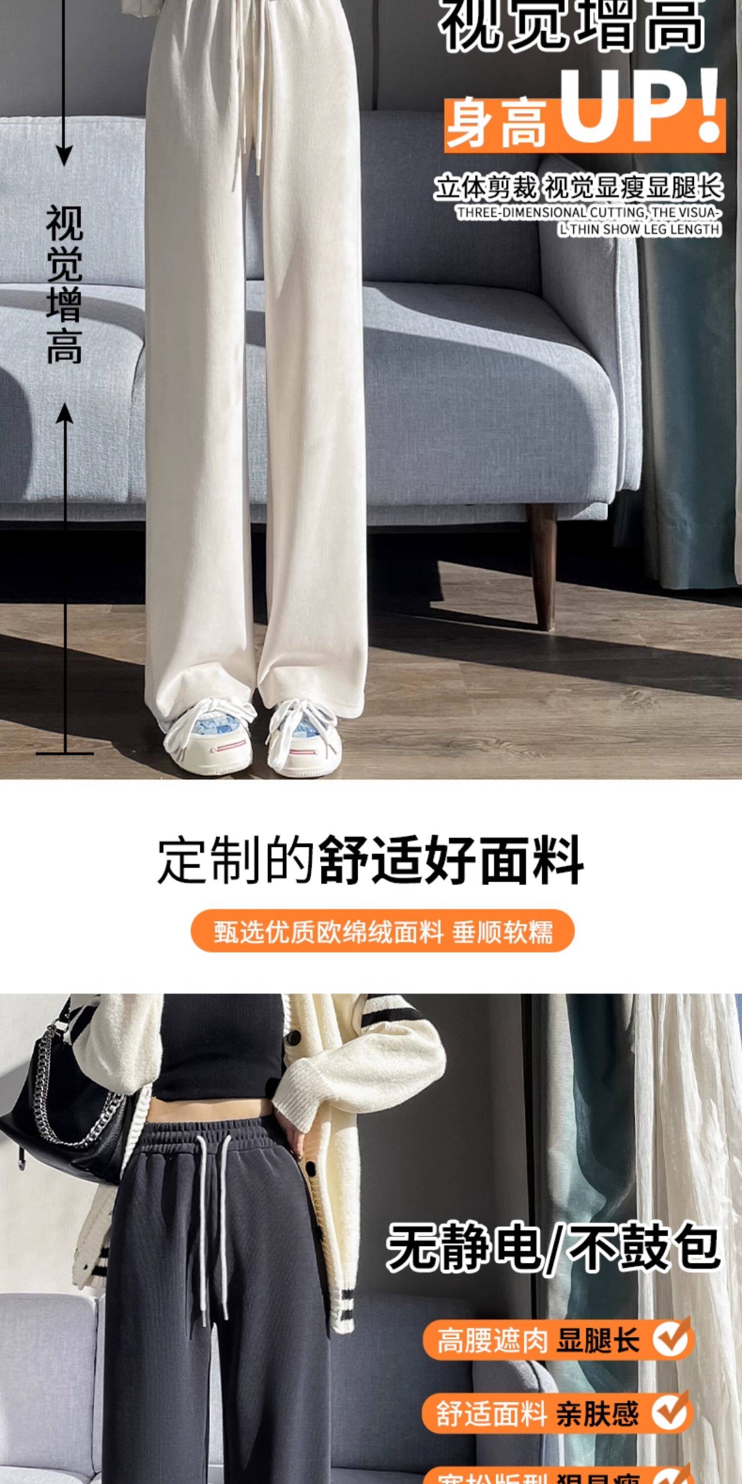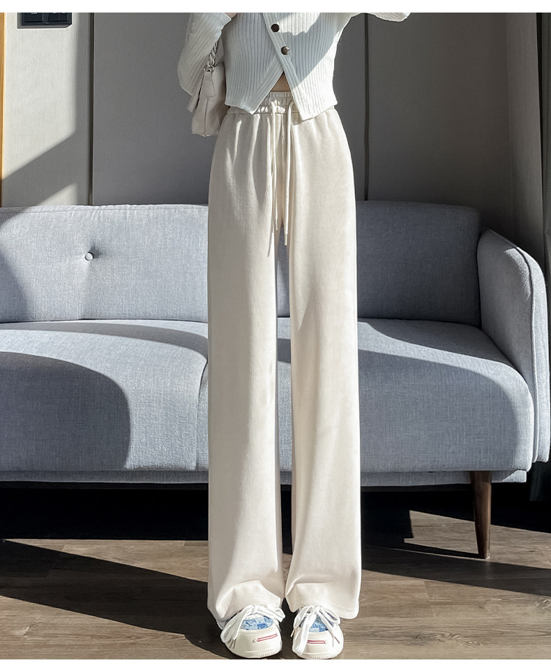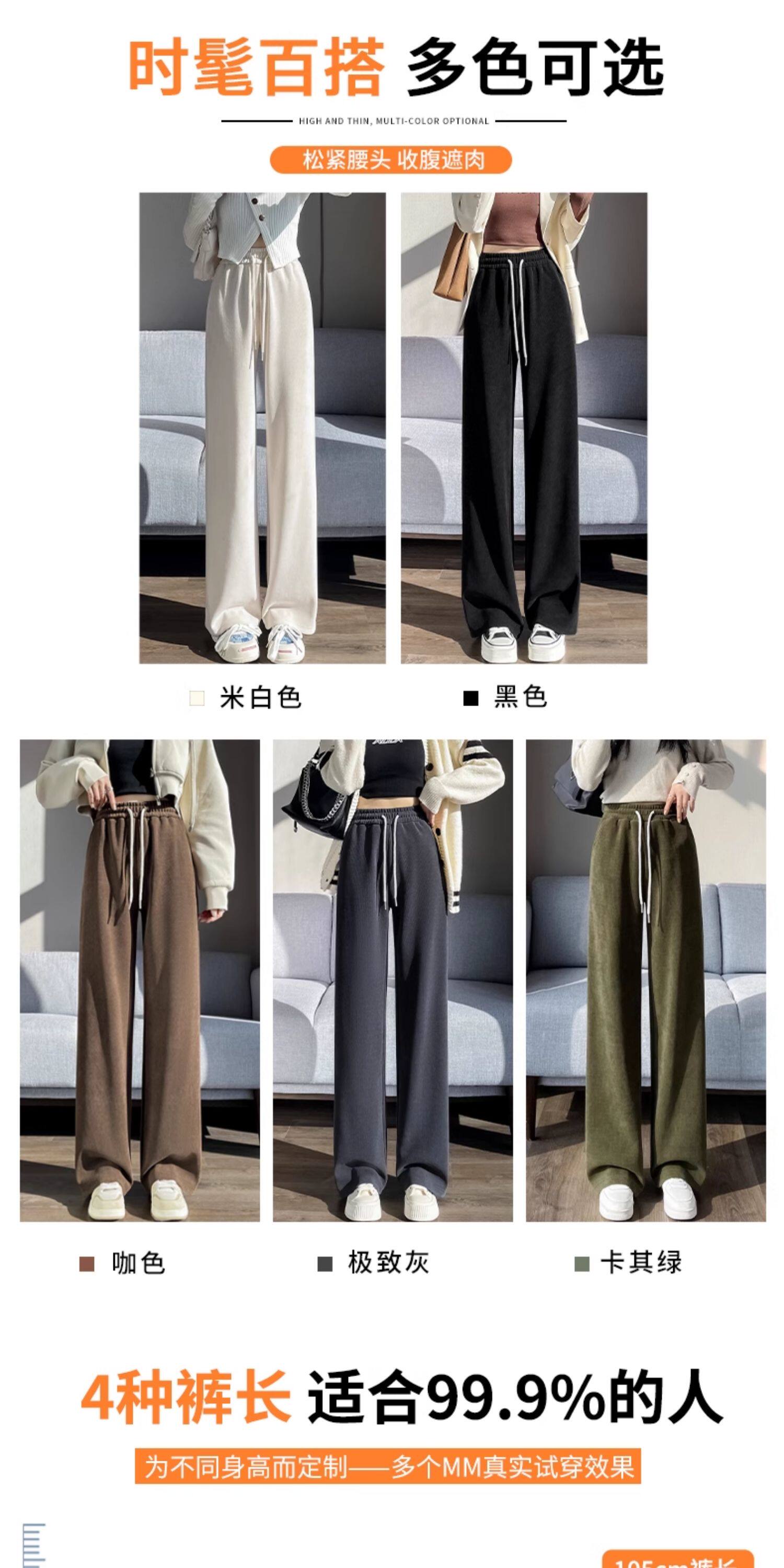雪尼爾濶腿褲女春秋款高腰寬鬆休閒咖色燈芯絨褲子女2026新款爆款
