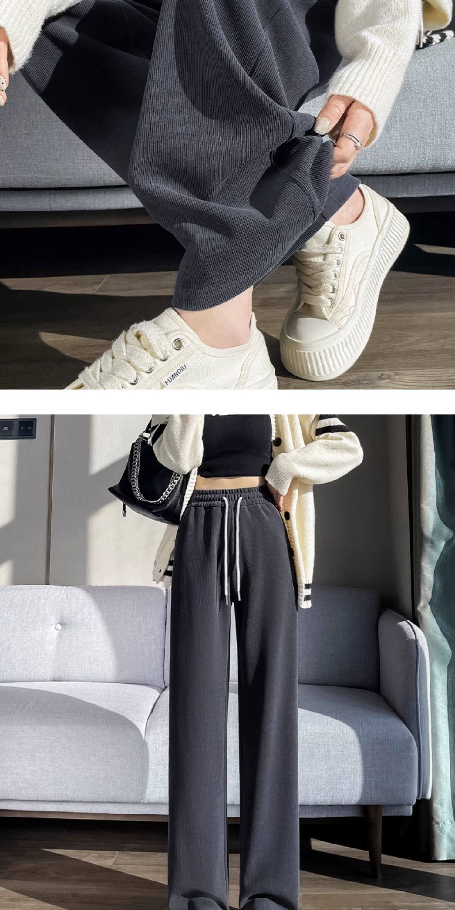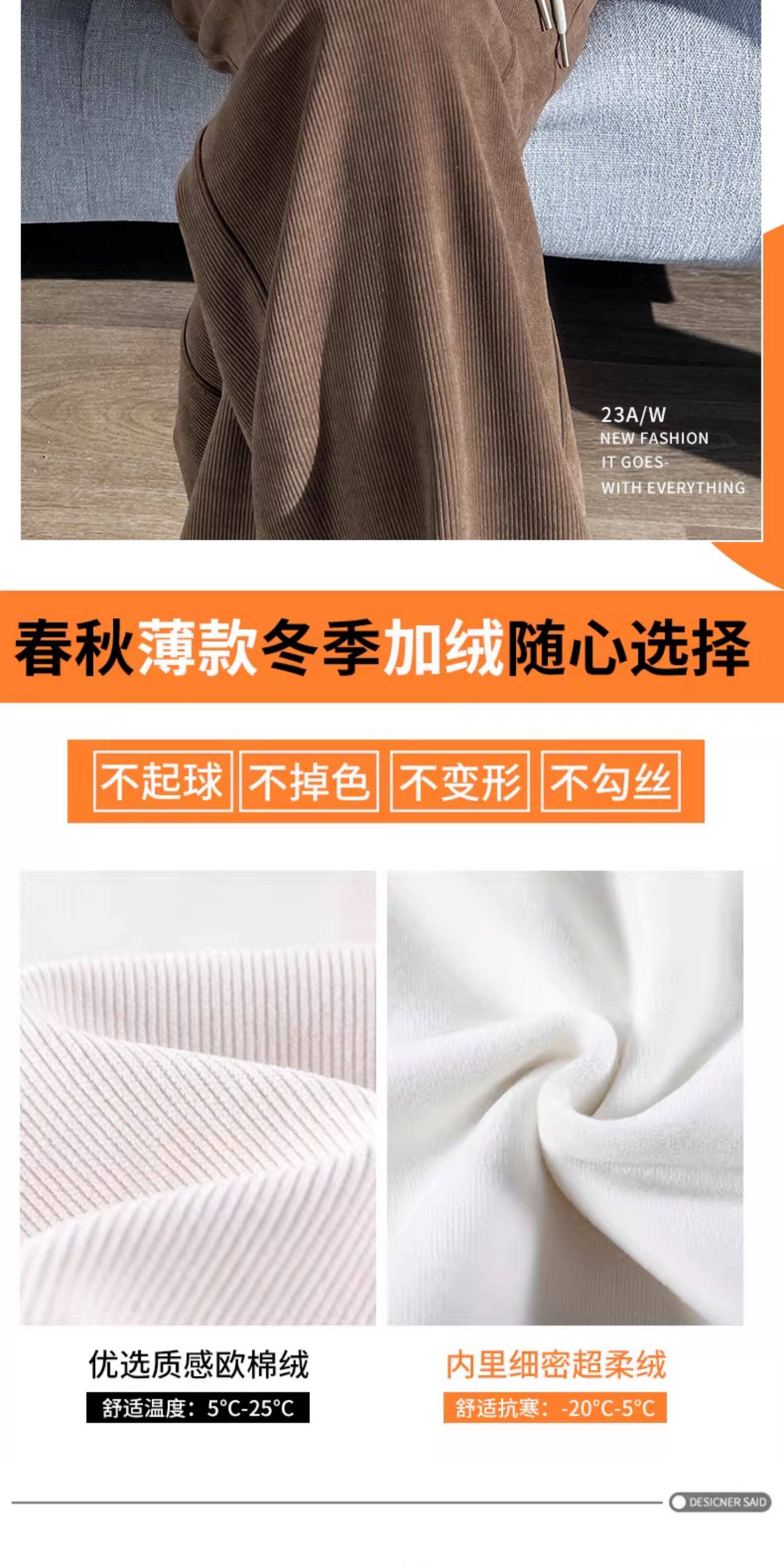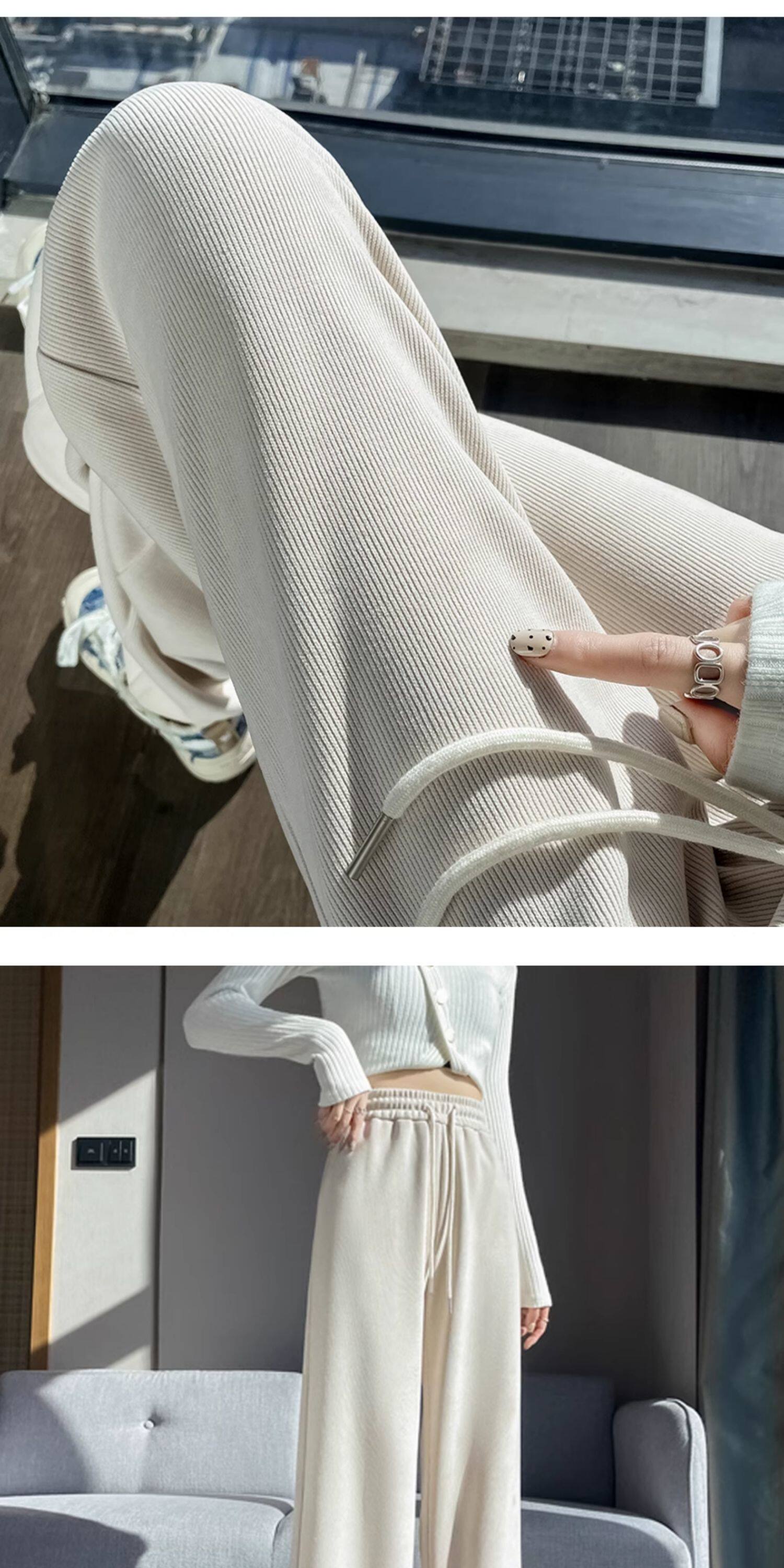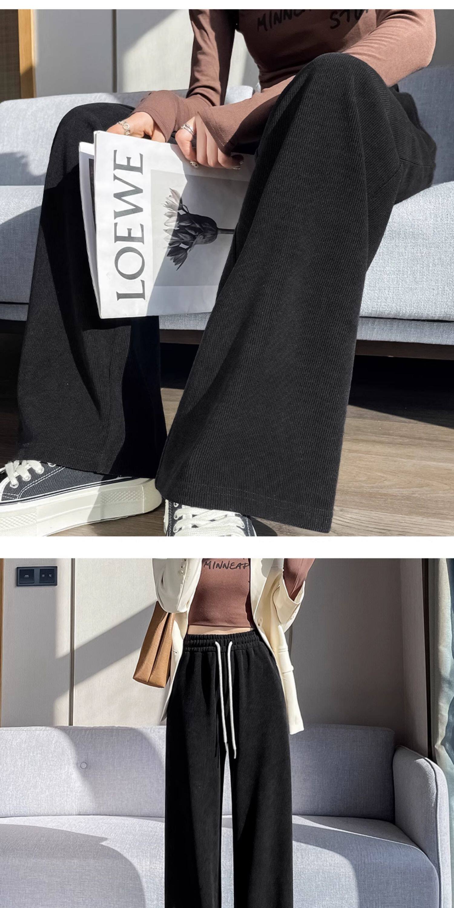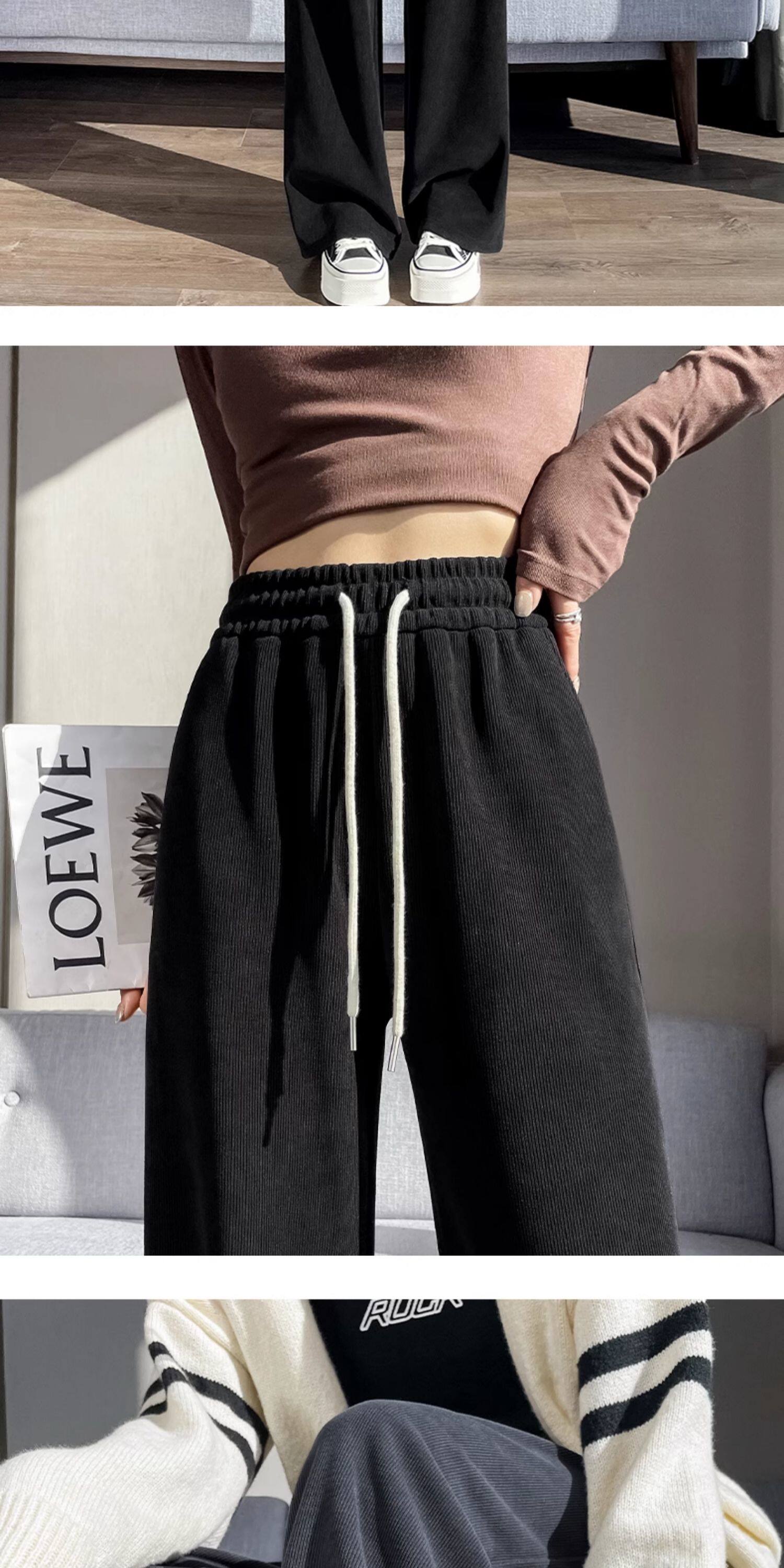 雪尼爾濶腿褲女春秋款高腰寬鬆休閒咖色燈芯絨褲子女2026新款爆款
