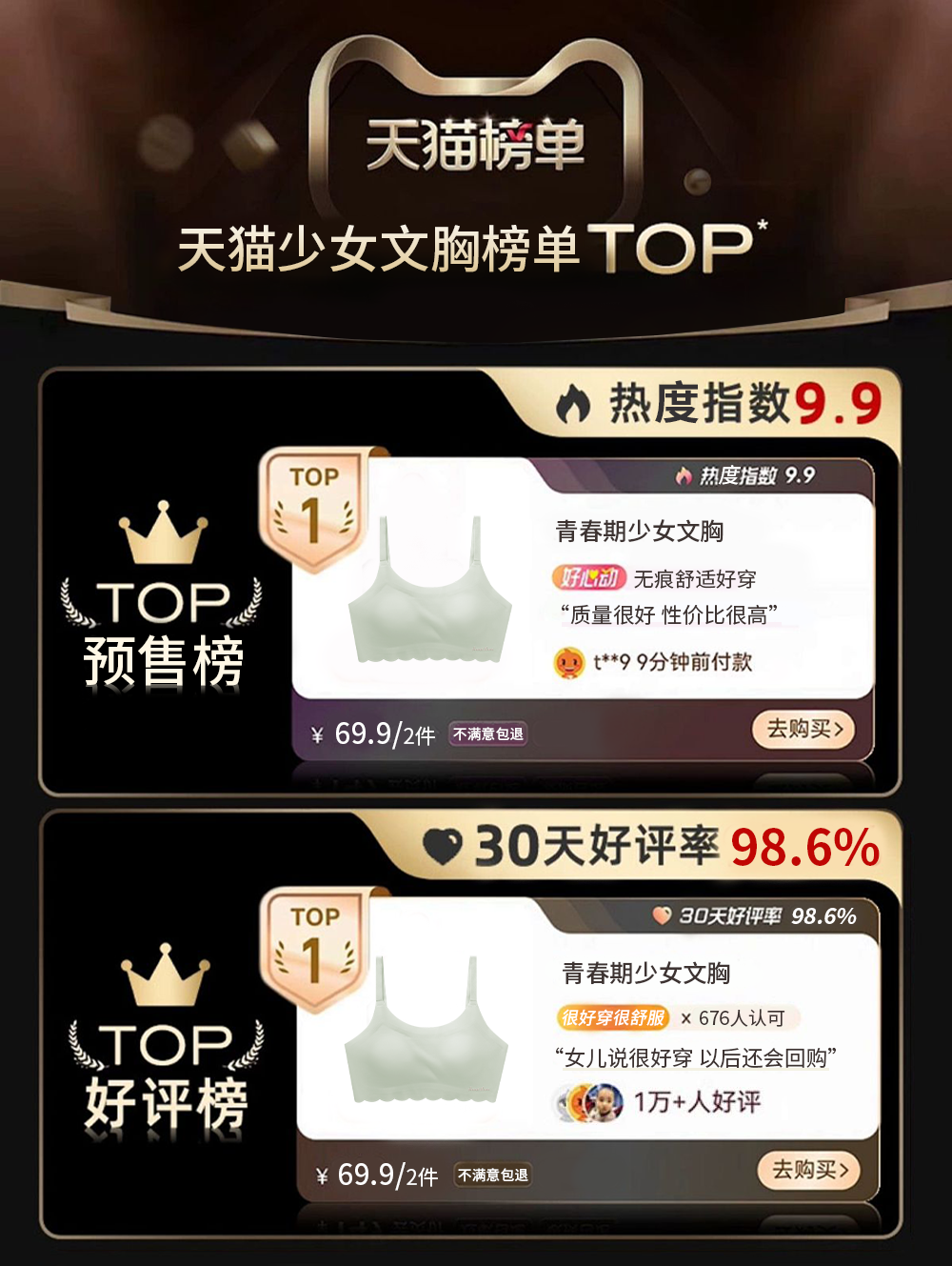 埃茉AIMO女童內衣少女發育期初中生高中生學生背心式文胸女青春期