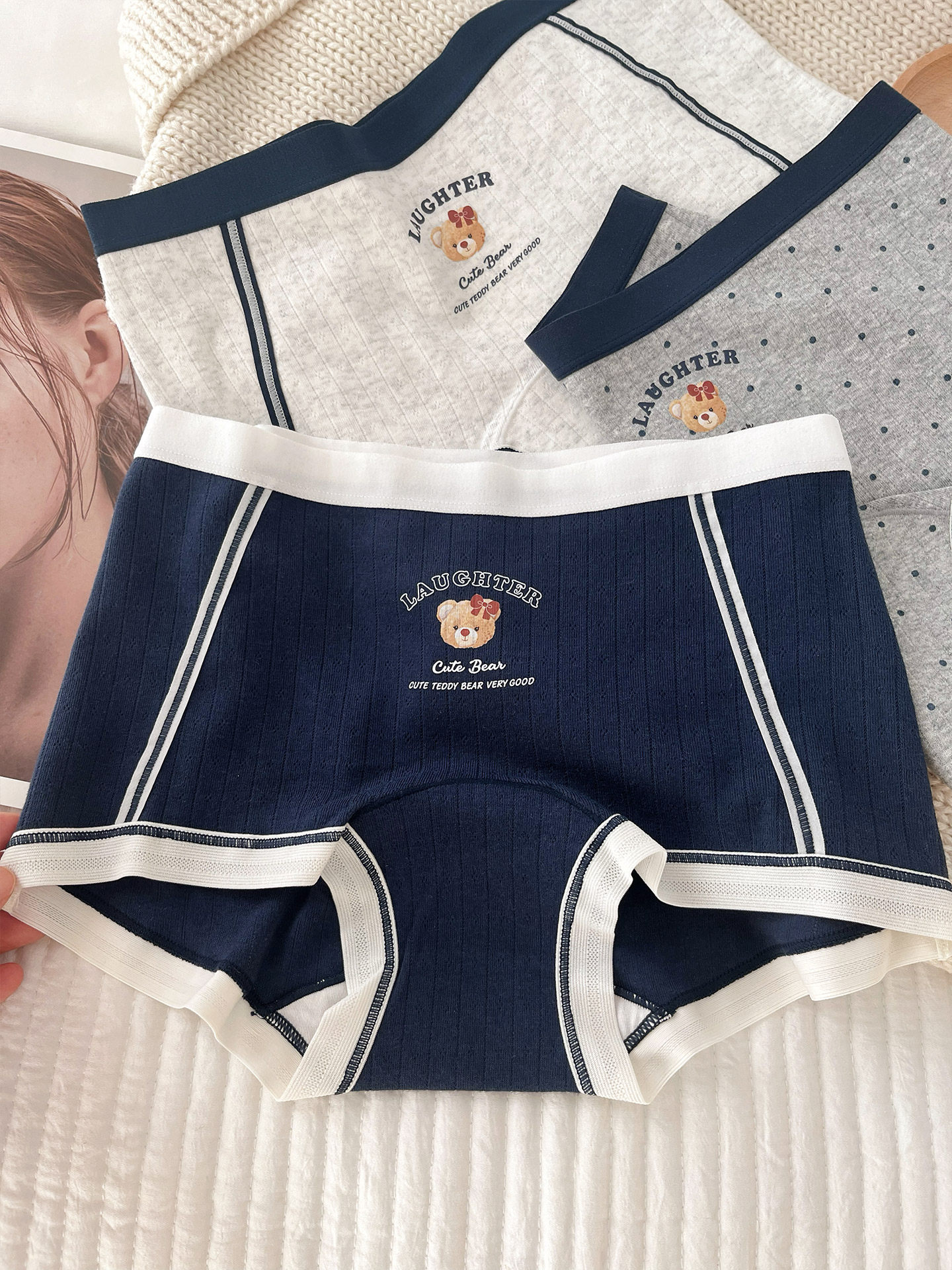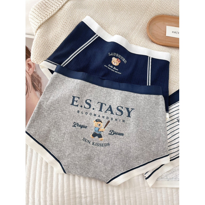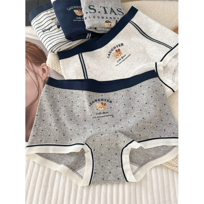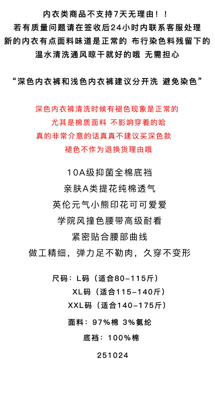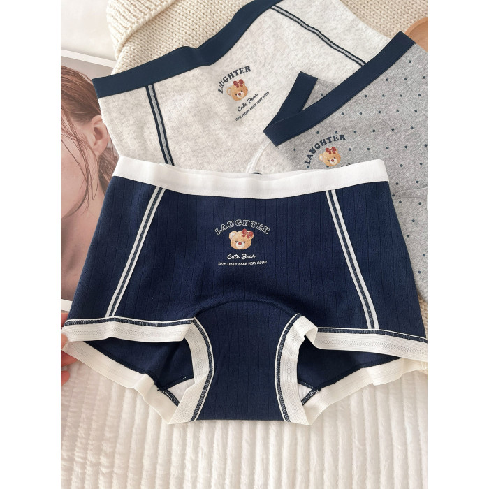 “英倫小熊”平角內褲女款純棉2025新款女生10A全棉襠女士小平角