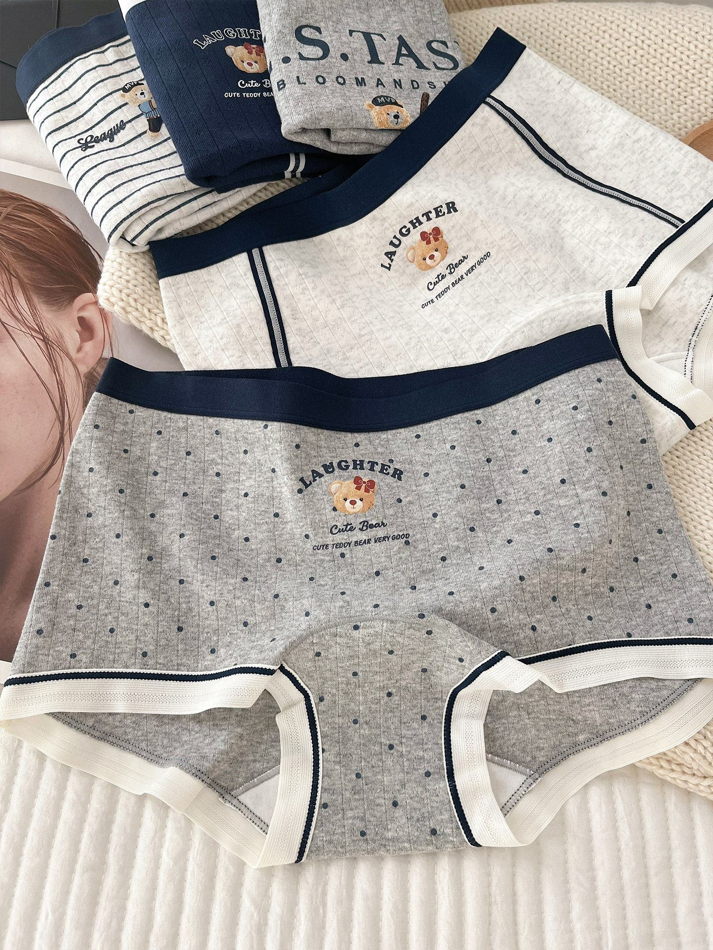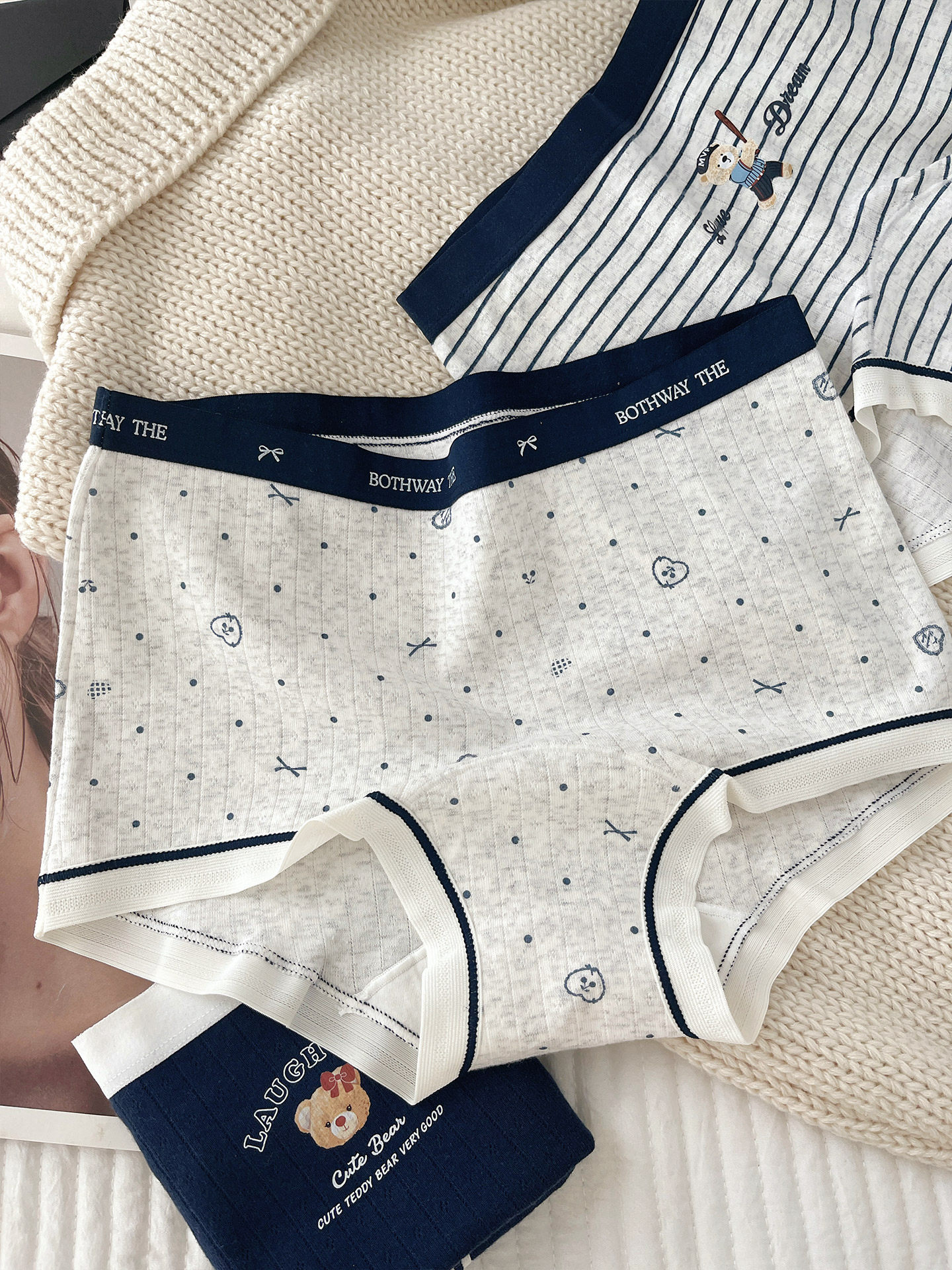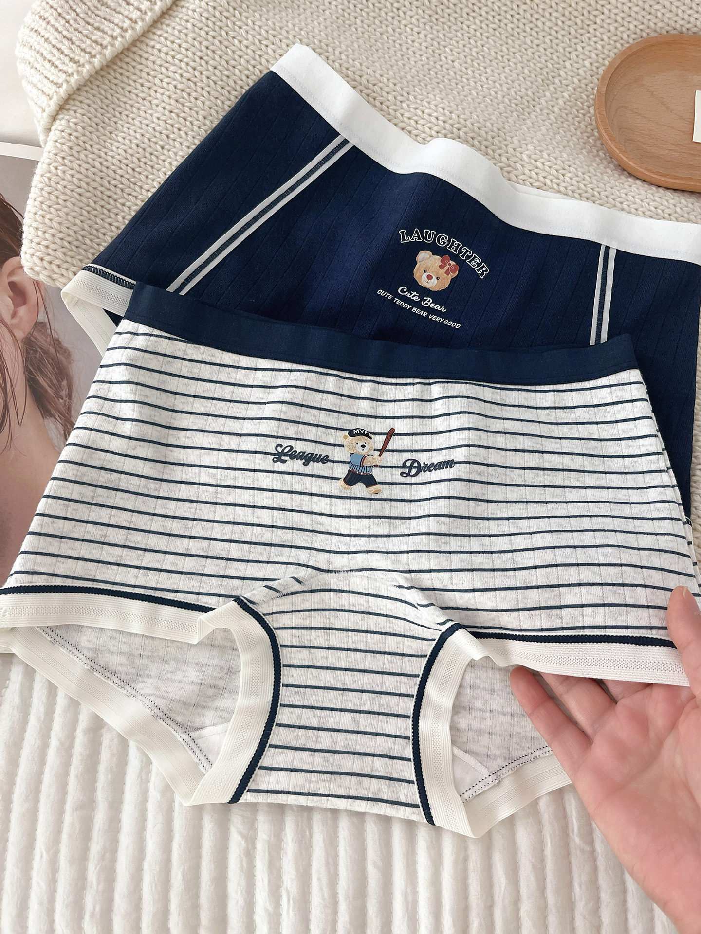 “英倫小熊”平角內褲女款純棉2025新款女生10A全棉襠女士小平角