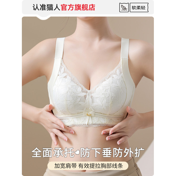 貓人內衣女小胸聚攏顯大上托防下垂收副乳調整型無鋼圈蕾絲文胸罩