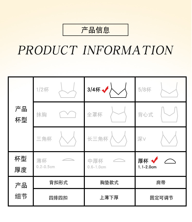 | 罩杯款式 | 3/4罩杯 |