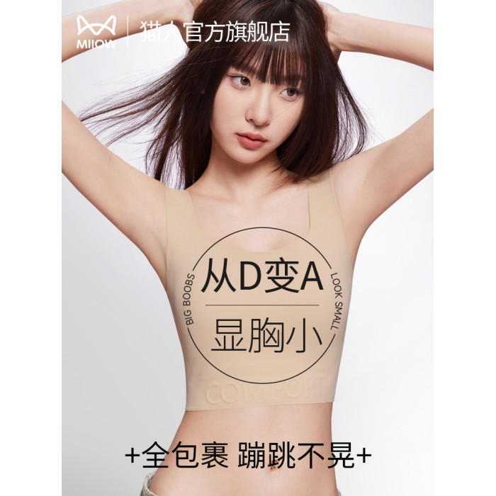 貓人紙片內衣女大胸顯小胸收副乳防下垂顯瘦束胸隱形背心式文胸罩