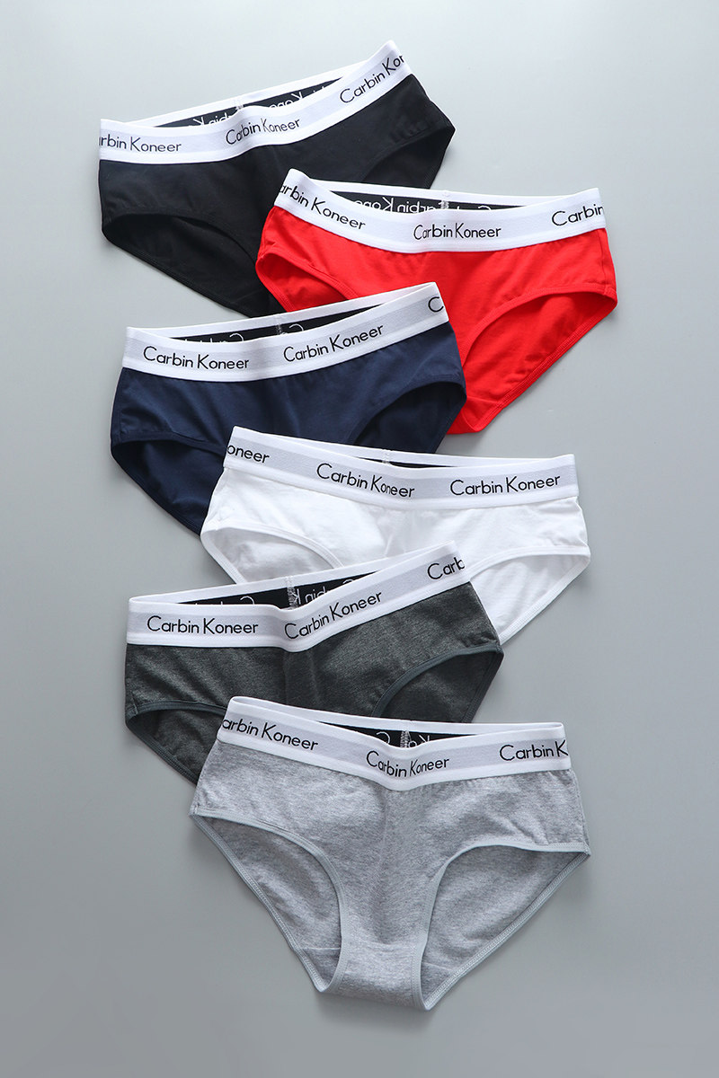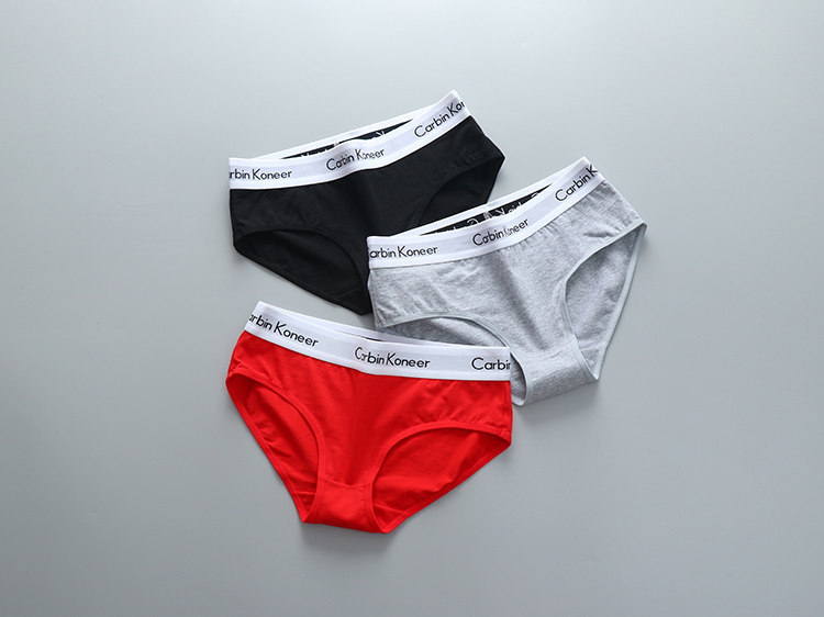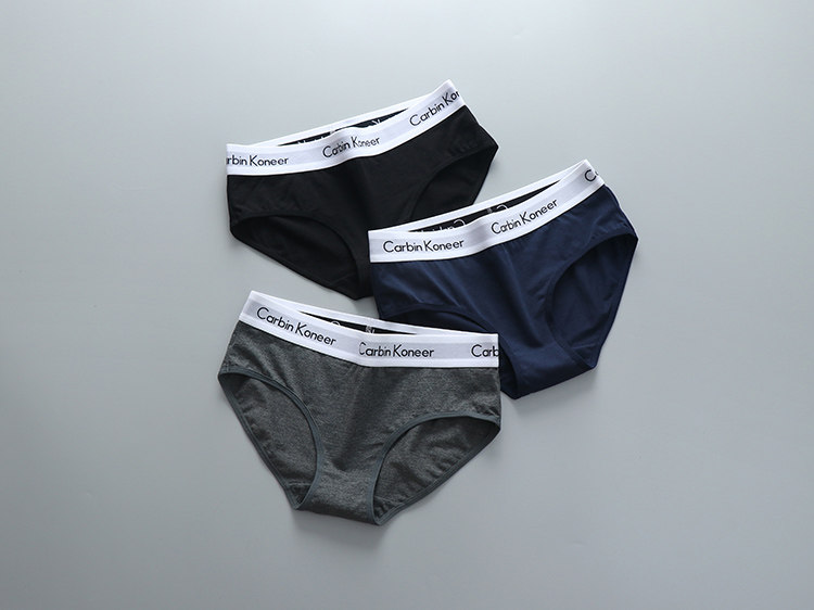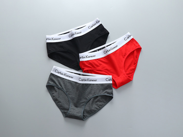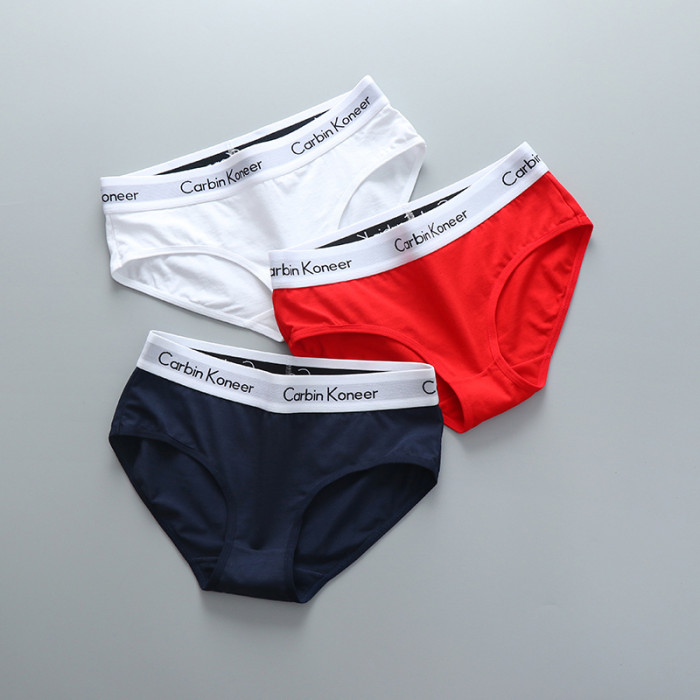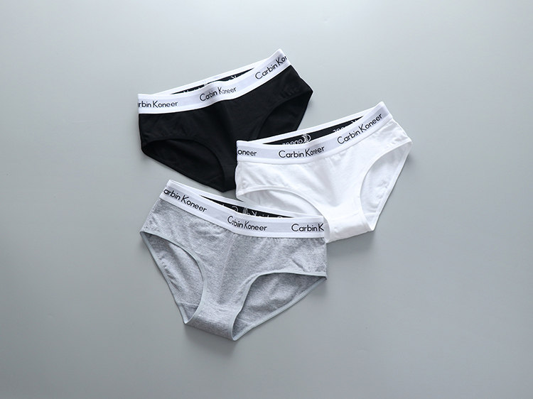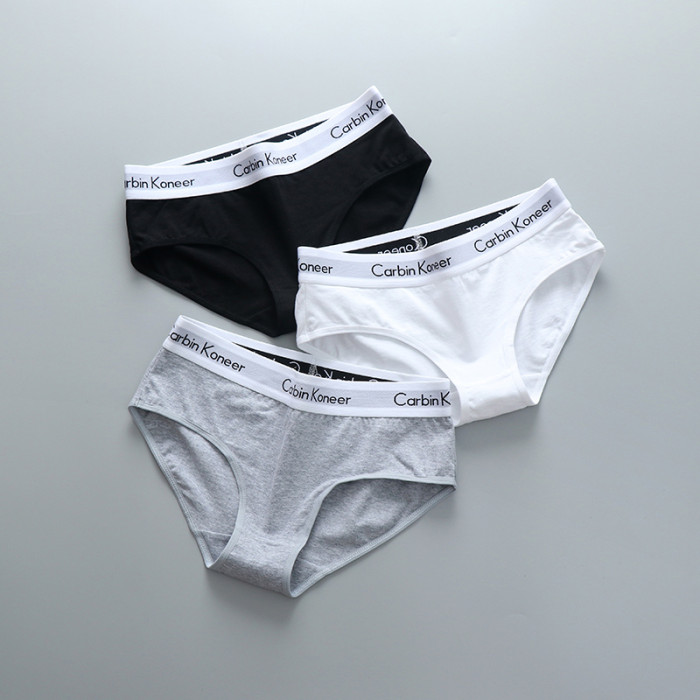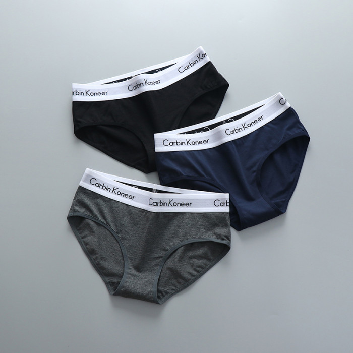 3條裝女款純全棉三角內褲中性純色中腰寬邊中性簡約運動褲頭潮