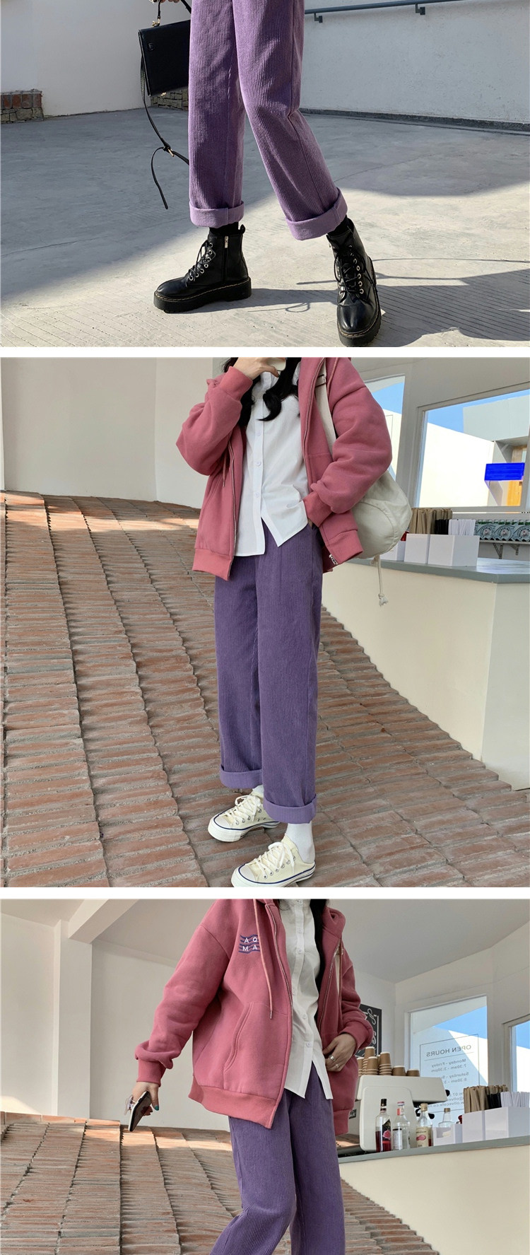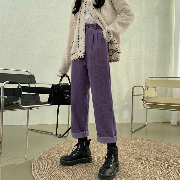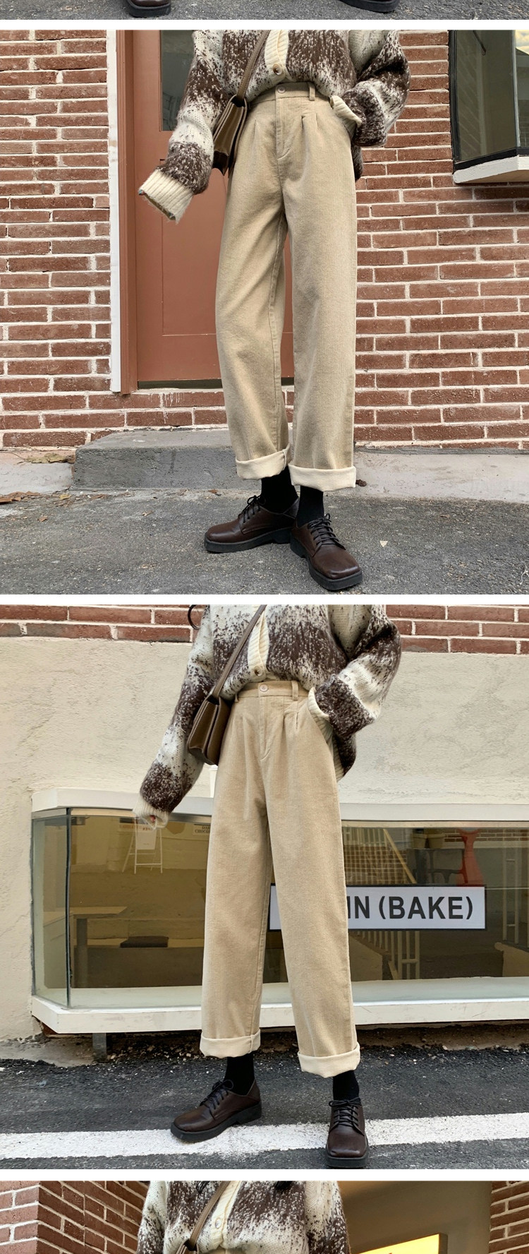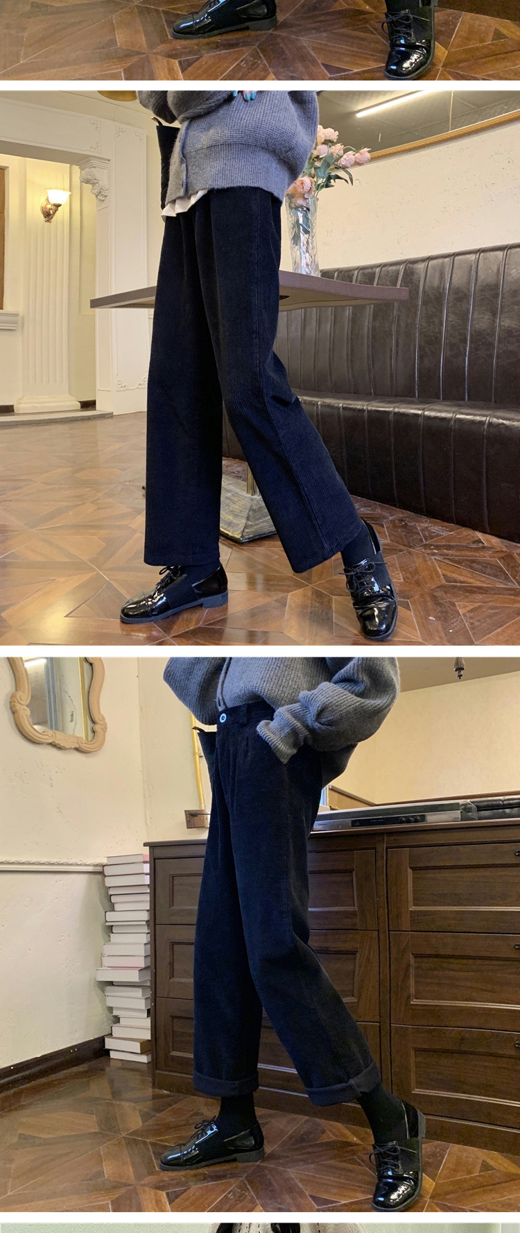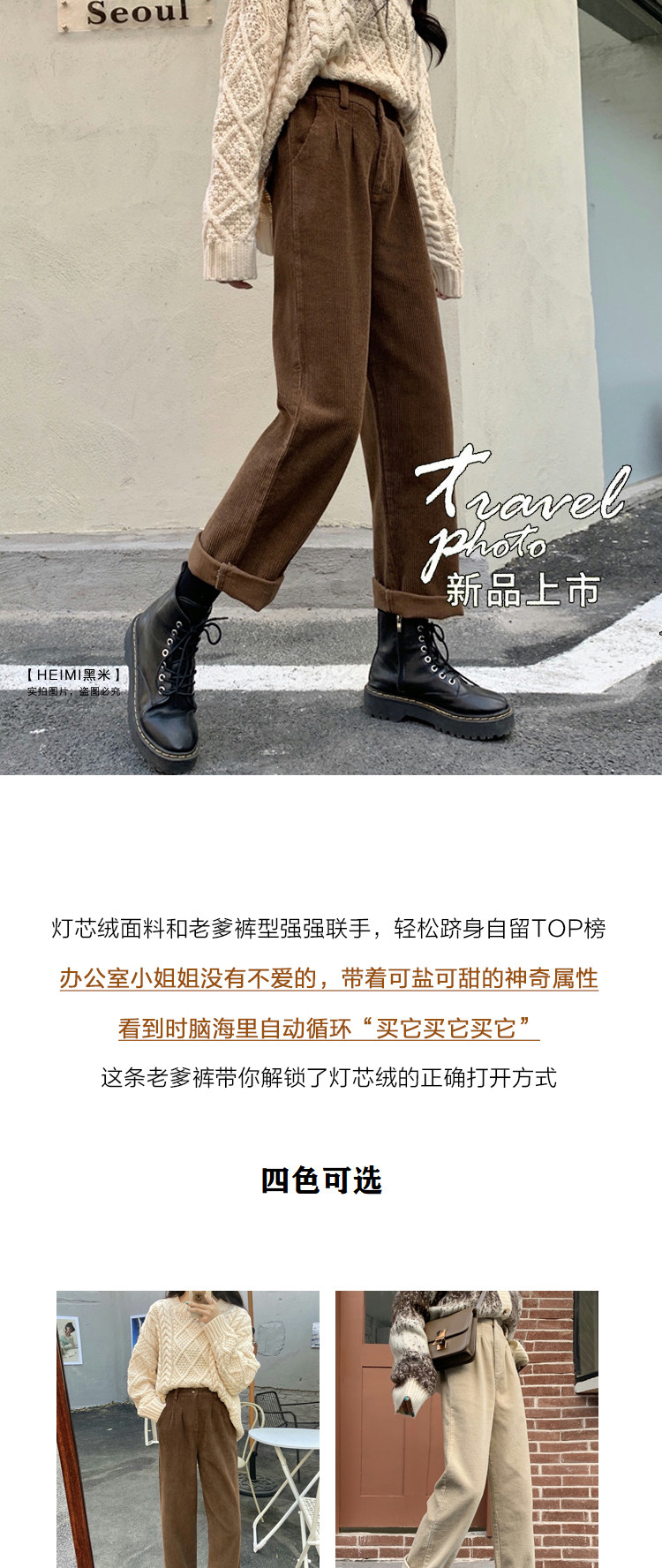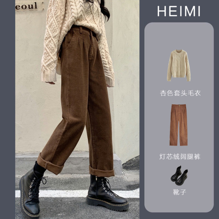 燈芯絨濶腿褲女2021秋冬新款寬鬆小衆百搭高腰直筒褲顯瘦休閒長褲