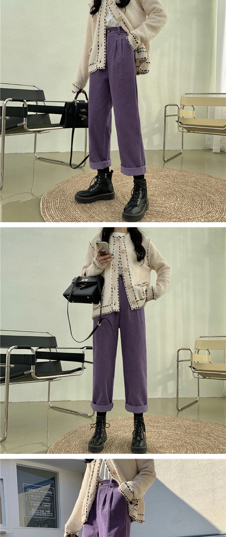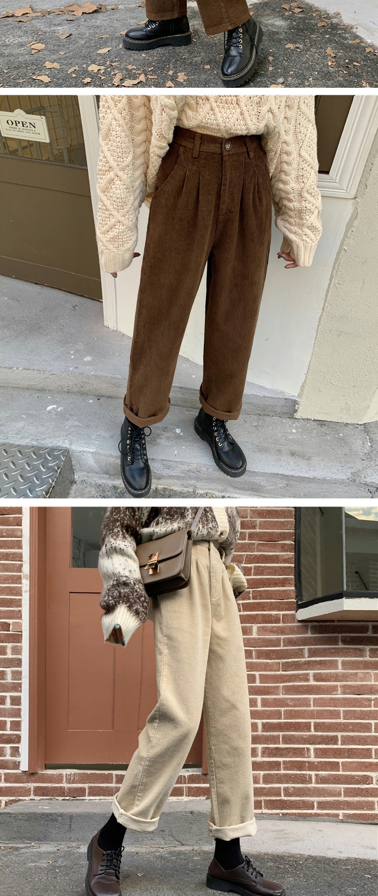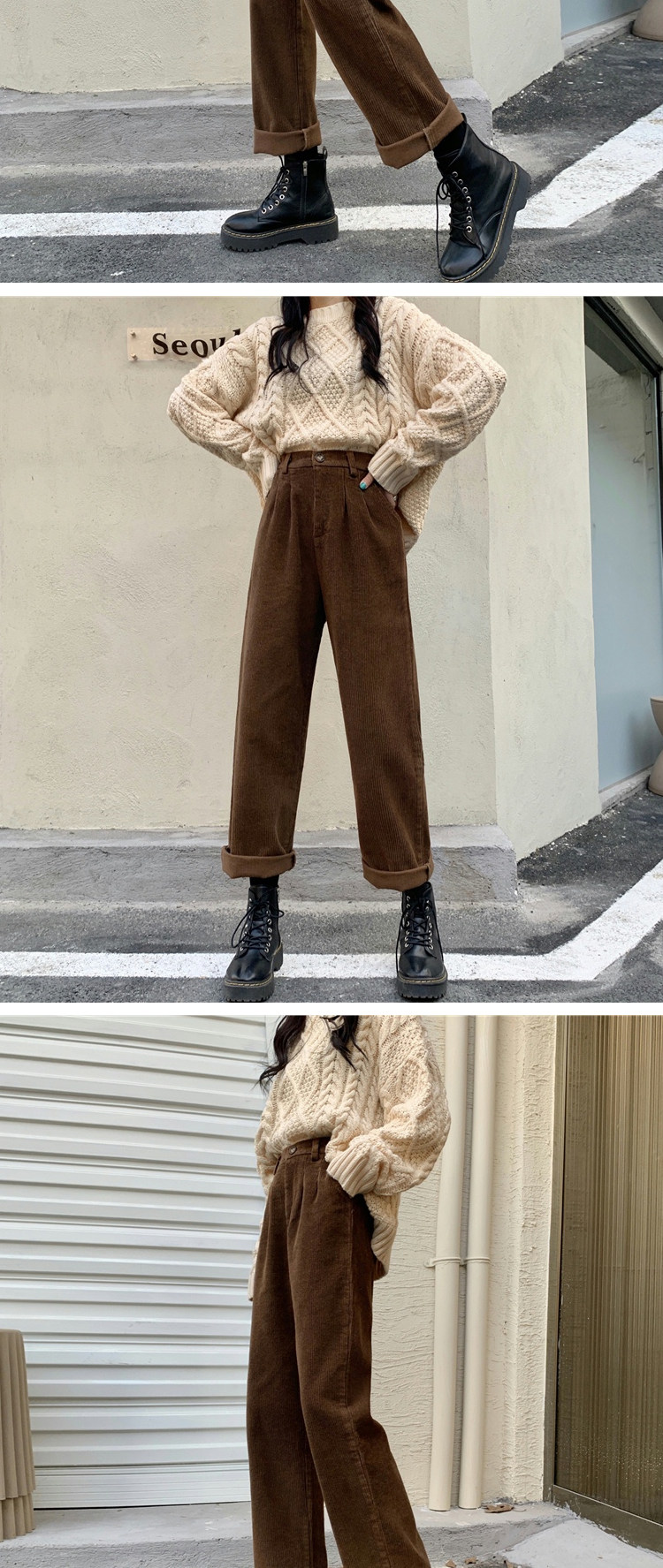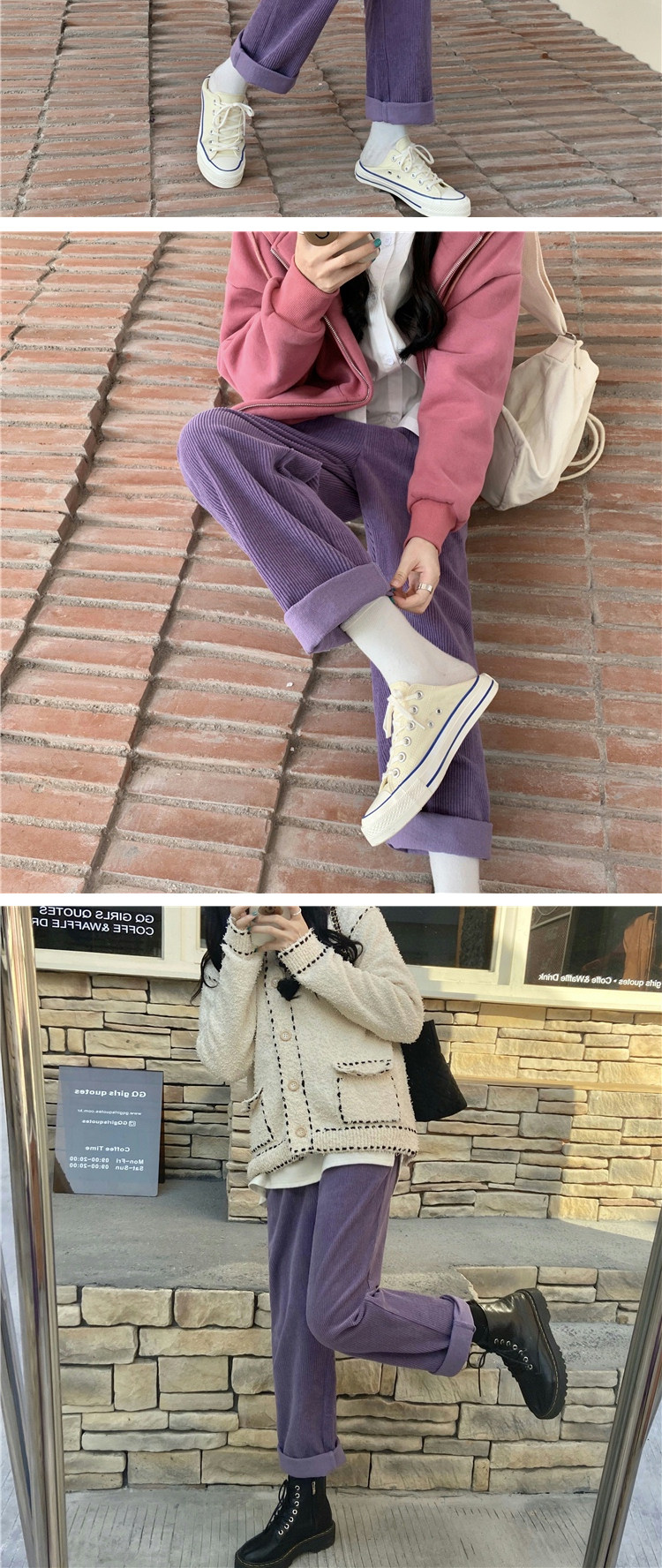 燈芯絨濶腿褲女2021秋冬新款寬鬆小衆百搭高腰直筒褲顯瘦休閒長褲