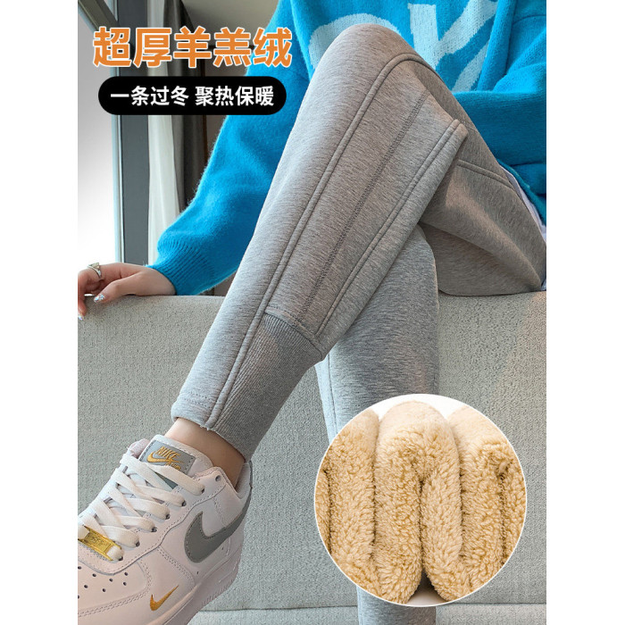 加絨加厚運動褲女冬季保暖衛褲小個子秋冬羊羔絨褲子女外穿棉褲